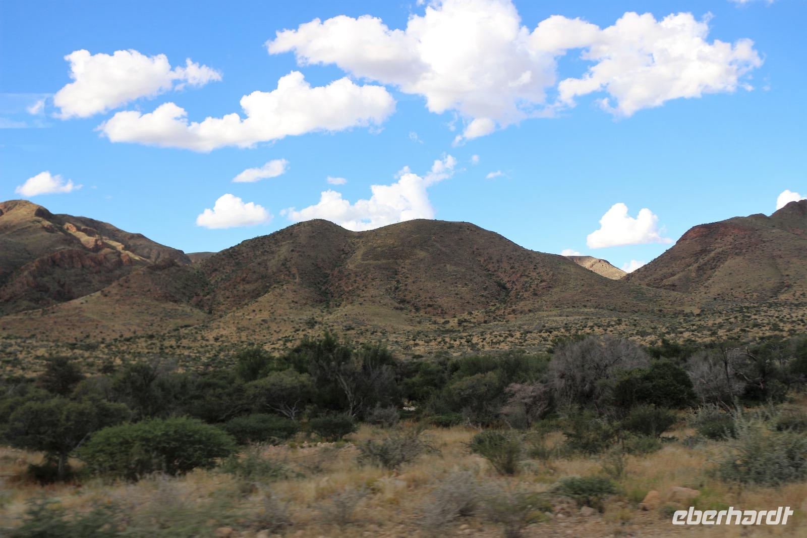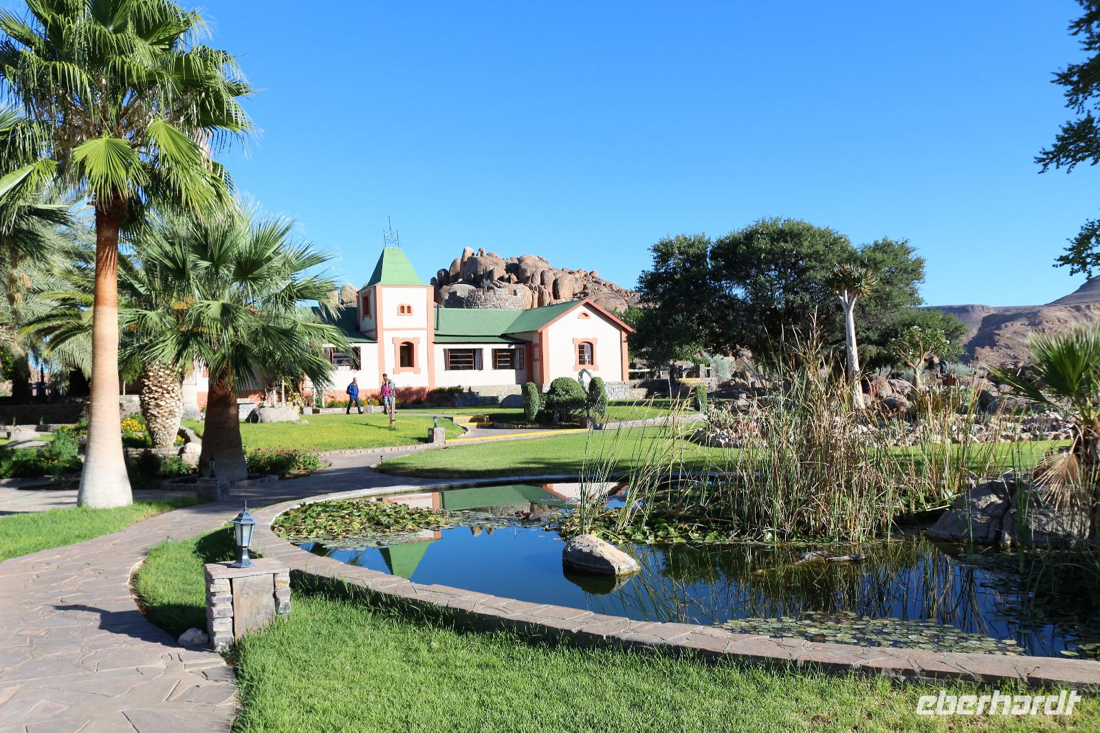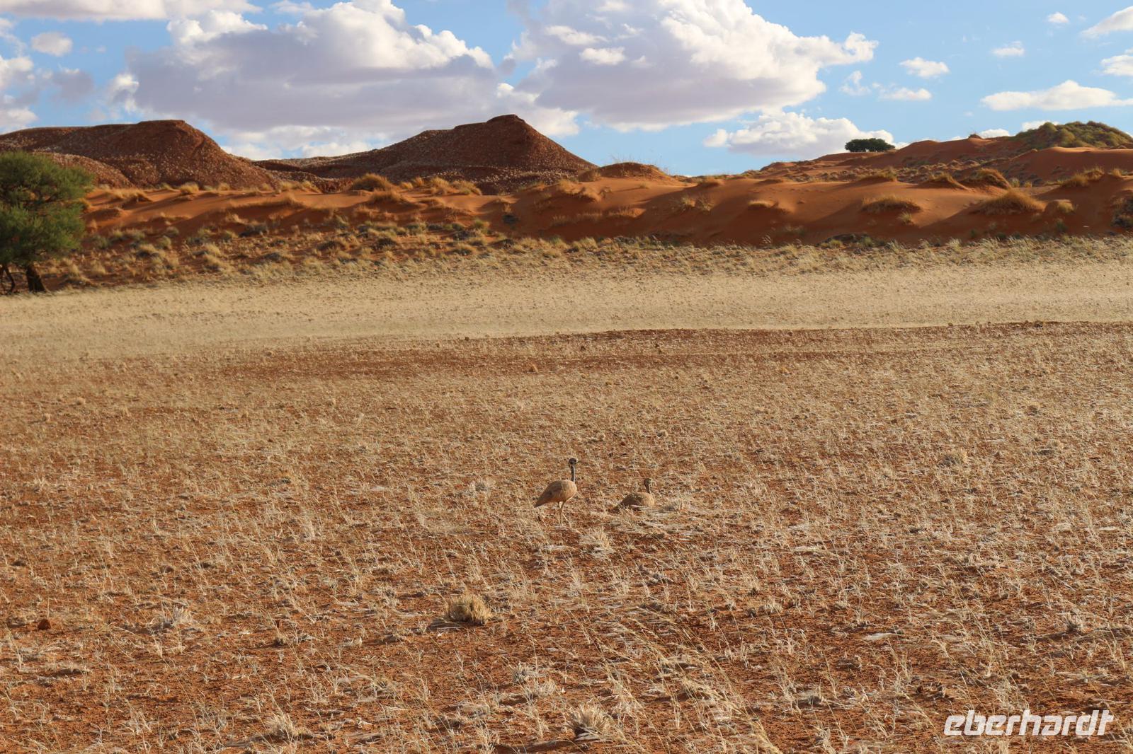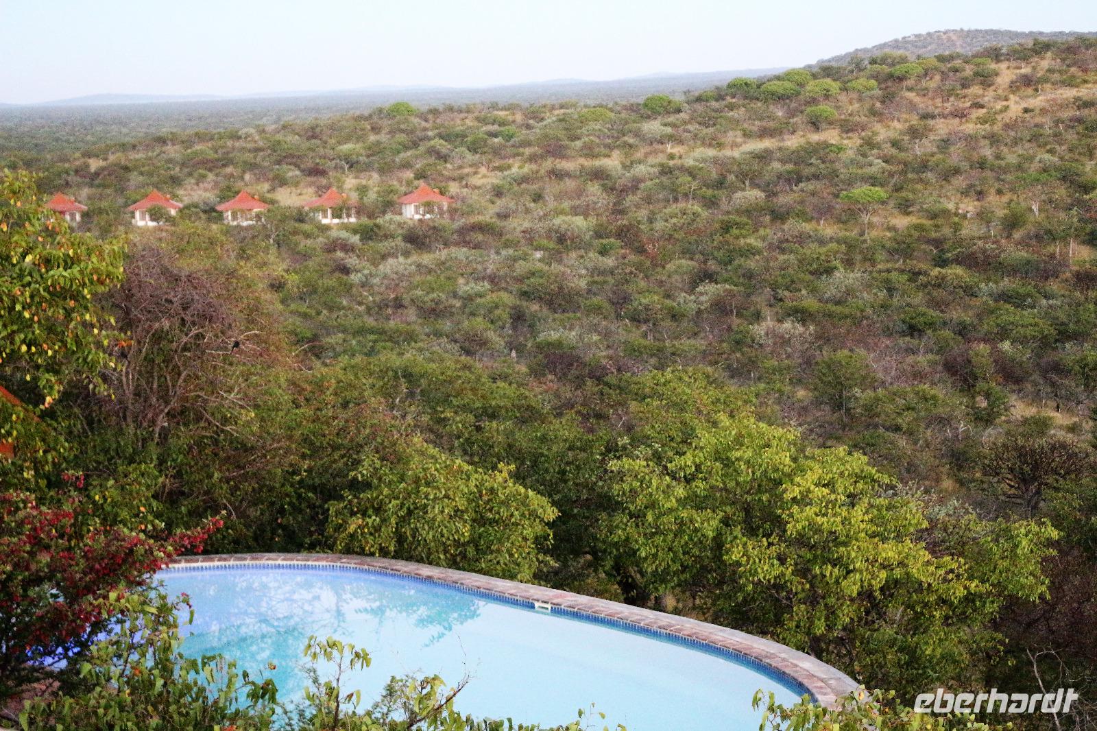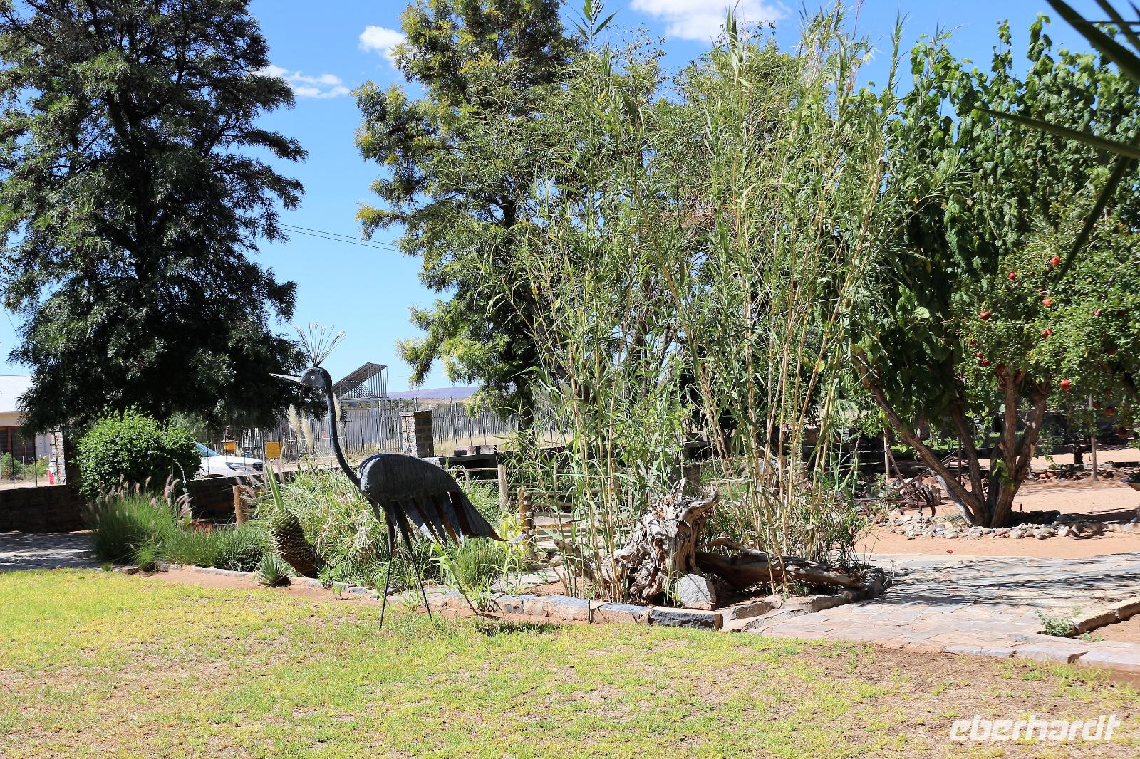 Nach einem reichhaltigen Frühstück bei bestem Ausblick über die Stadt Windhoek ging es auch schon wieder ans Kofferpacken und wir verließen unser schönes Hotel Thule. Zunächst schauten wir uns den Bahnhof der Stadt Windhoek an, welcher an unsere 60er/70er Jahre erinnerte. Hier erhielten wir auch einen ersten Einblick in die wirtschaftliche Situation des Landes, wobei uns der hohe Lebensstandard der Windhoeker überraschte. Bevor wir die Stadt verließen, besuchten wir noch einen Supermarkt, um ein paar Kleinigkeiten für die folgenden Tage zu besorgen. Anschließend ließen wir die namibische Hauptstadt hinter uns und fuhren in Richtung Süden und zunächst durch das Auersgebirge. Dies zeigte sich uns in aufgrund der reichlichen Regenfälle der vergangenen Wochen und Monate in einem satten Grün. Langsam veränderte sich die Landschaft: es wurde trockener und immer mehr konnte man den roten Sandboden unter den Büschen erkennen. So waren wir nun in der Kalahari angekommen. Uns zeigten sich nun hauptsächlich Dünen sowie Dornbüsche, aber auch das eine oder andere kleinere Tier. Am Nachmittag kamen wir bei wunderschönstem Sommerwetter in unserer Lodge an und bezogen unsere Zimmer. Anschließend war ausreichend Zeit, die wunderschöne Anlage zu erkunden oder diese bei einem Bad im Pool zu genießen.