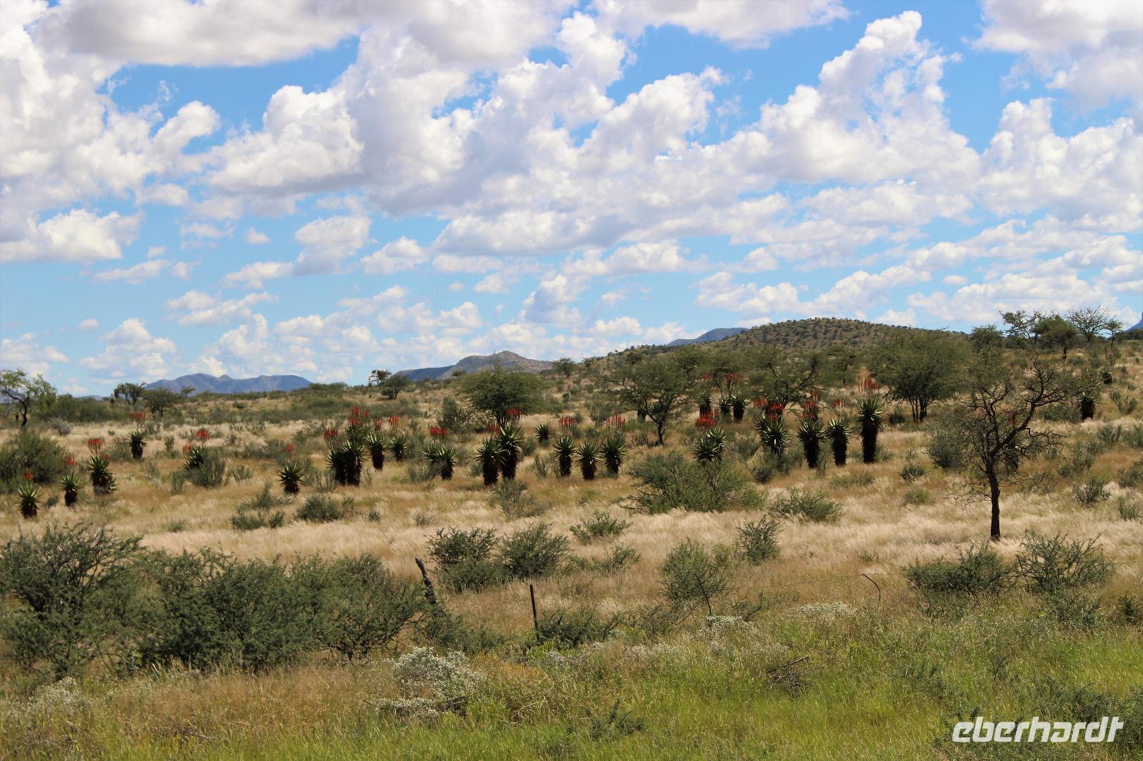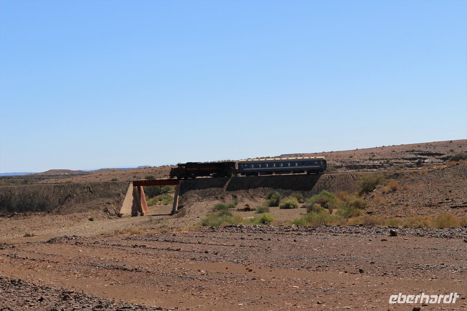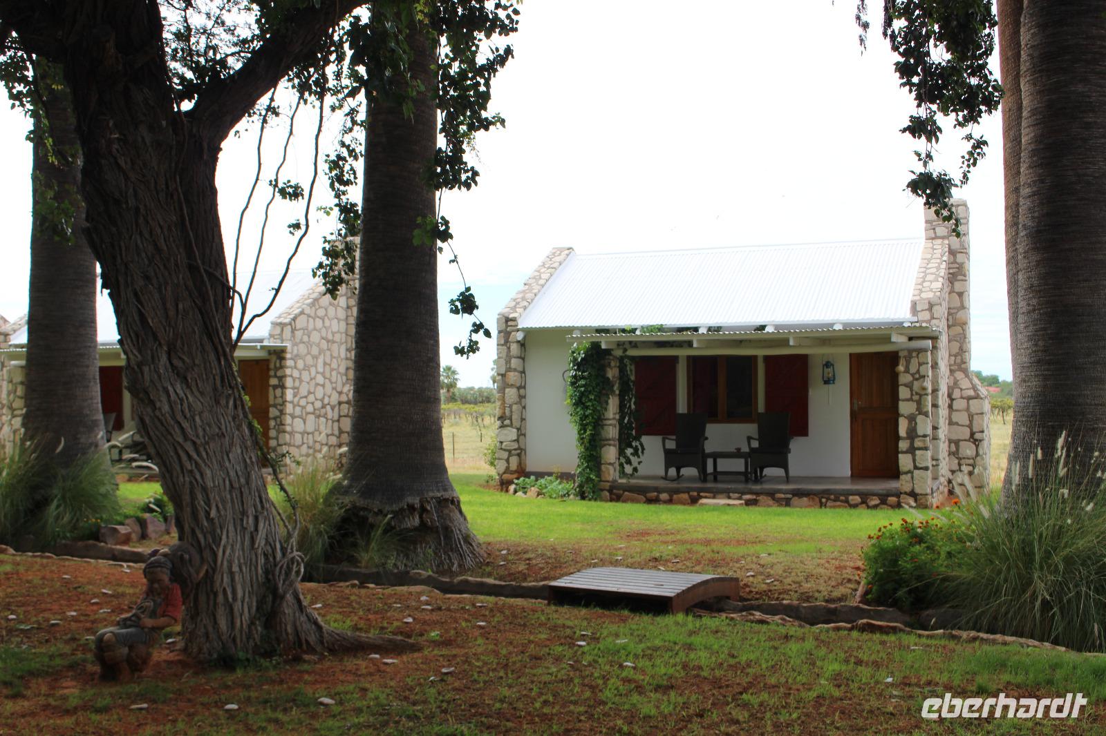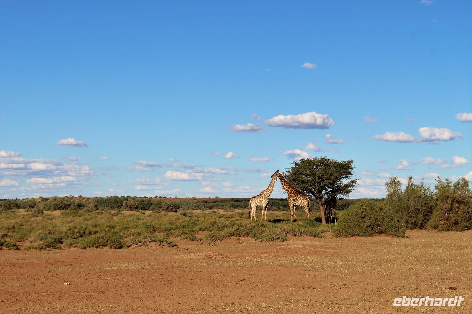Nach einem reichhaltigen Frühstück bei bestem Ausblick über die Stadt Windhoek ging es auch schon wieder ans Kofferpacken und wir verließen unser schönes Hotel Thule. Zunächst schauten wir uns den Bahnhof der Stadt Windhoek an, welcher an unsere 60er/70er Jahre erinnerte. Hier erhielten wir auch einen ersten Einblick in die wirtschaftliche Situation des Landes, wobei uns der hohe Lebensstandard der Windhoeker überraschte. Bevor wir die Stadt verließen, besuchten wir noch einen Supermarkt, um ein paar Kleinigkeiten für die folgenden Tage zu besorgen. Anschließend ließen wir die namibische Hauptstadt hinter uns und fuhren in Richtung Süden und zunächst durch das Auersgebirge. Dies zeigte sich uns in aufgrund der reichlichen Regenfälle der vergangenen Wochen und Monate in einem satten Grün. Langsam veränderte sich die Landschaft: es wurde trockener und immer mehr konnte man den roten Sandboden unter den Büschen erkennen. So waren wir nun in der Kalahari angekommen. Uns zeigten sich nun hauptsächlich Dünen sowie Dornbüsche, aber auch das eine oder andere kleinere Tier. Am Nachmittag kamen wir bei wunderschönstem Sommerwetter in unserer Lodge an und bezogen unsere Zimmer. Anschließend war ausreichend Zeit, die wunderschöne Anlage zu erkunden oder diese bei einem Bad im Pool zu genießen.