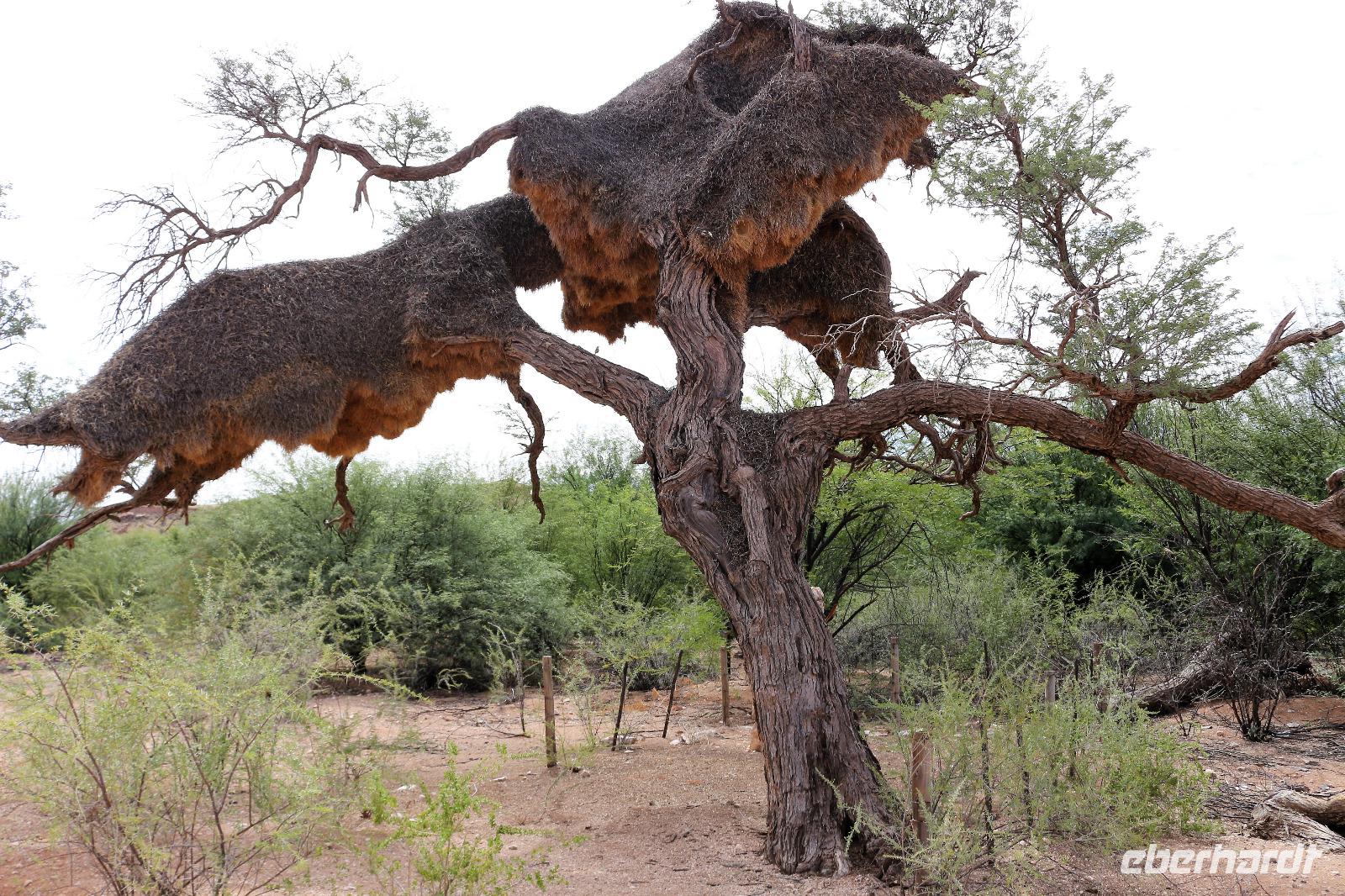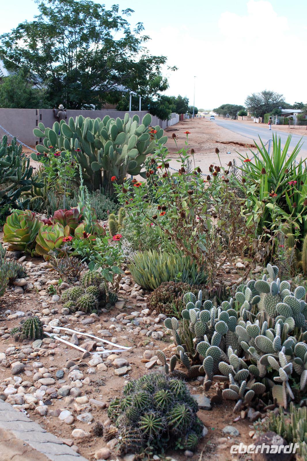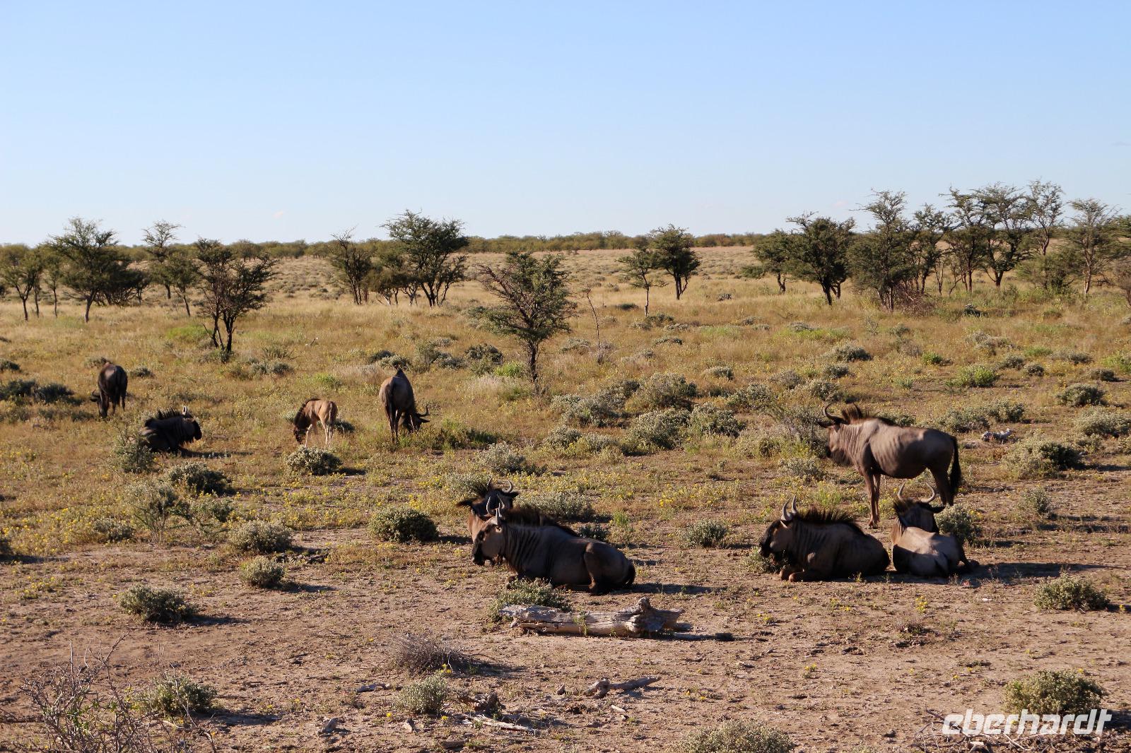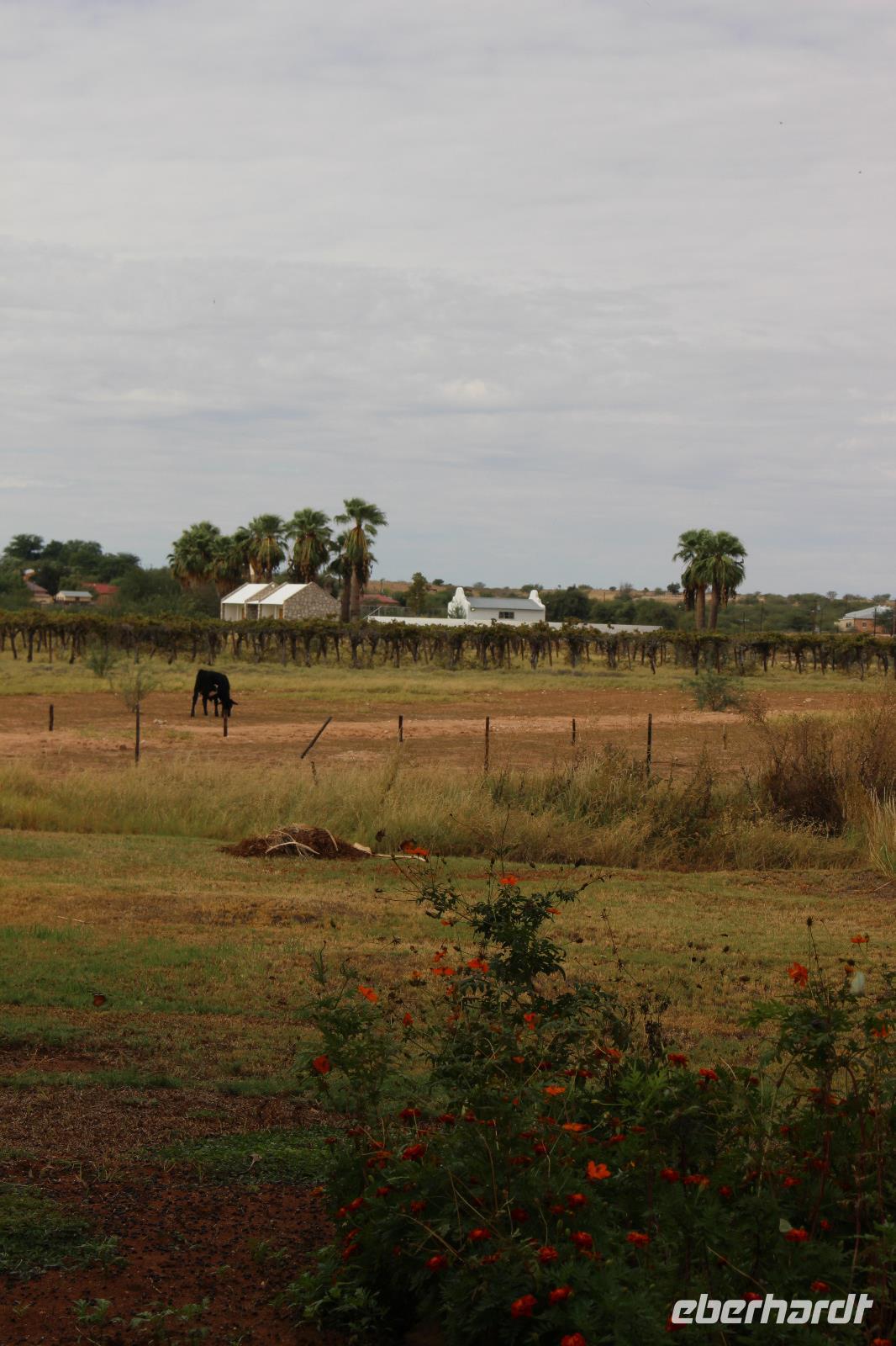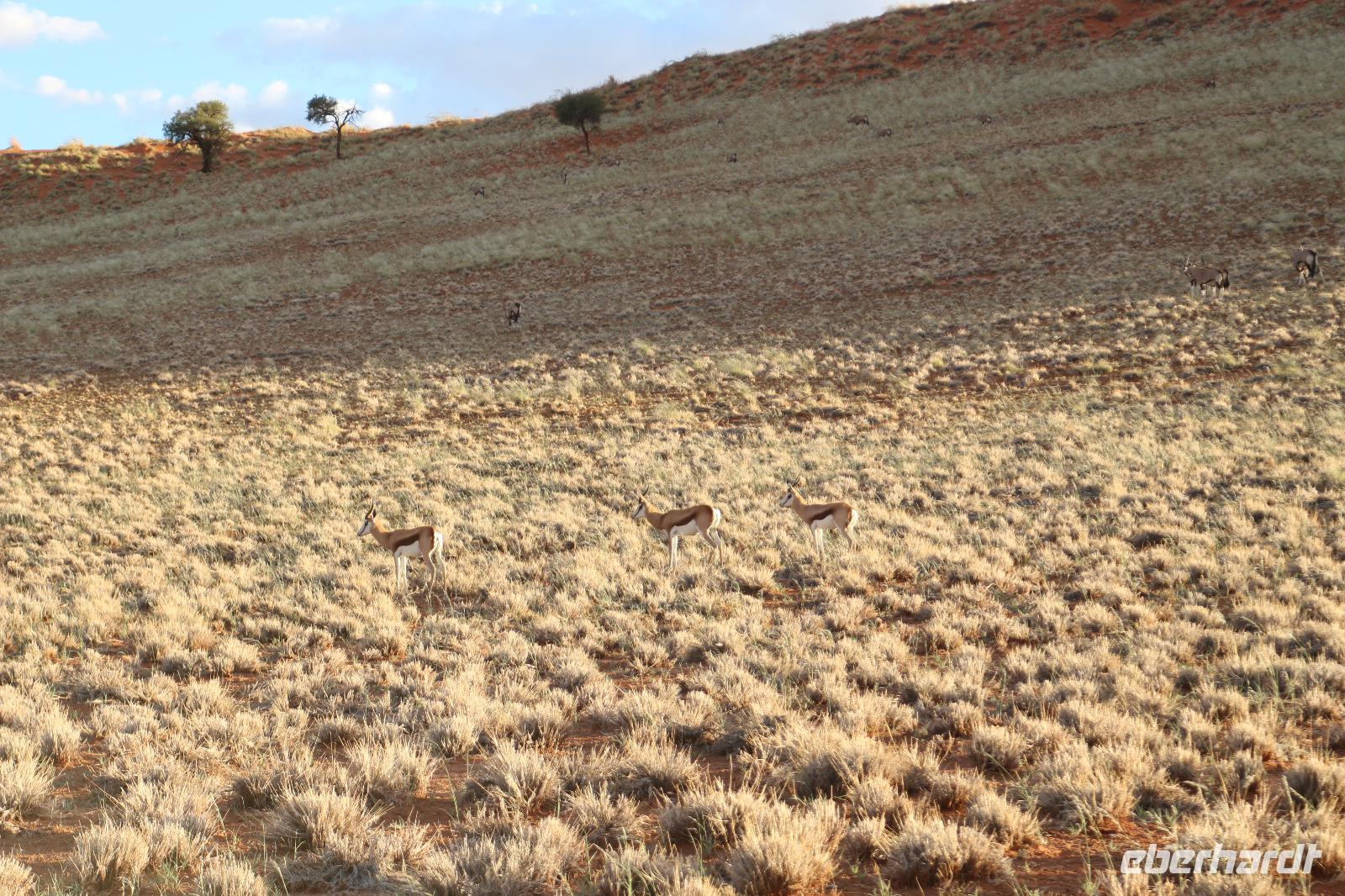 Nach einem reichhaltigen Frühstück bei bestem Ausblick über die Stadt Windhoek ging es auch schon wieder ans Kofferpacken und wir verließen unser schönes Hotel Thule. Zunächst schauten wir uns den Bahnhof der Stadt Windhoek an, welcher an unsere 60er/70er Jahre erinnerte. Hier erhielten wir auch einen ersten Einblick in die wirtschaftliche Situation des Landes, wobei uns der hohe Lebensstandard der Windhoeker überraschte. Bevor wir die Stadt verließen, besuchten wir noch einen Supermarkt, um ein paar Kleinigkeiten für die folgenden Tage zu besorgen. Anschließend ließen wir die namibische Hauptstadt hinter uns und fuhren in Richtung Süden und zunächst durch das Auersgebirge. Dies zeigte sich uns in aufgrund der reichlichen Regenfälle der vergangenen Wochen und Monate in einem satten Grün. Langsam veränderte sich die Landschaft: es wurde trockener und immer mehr konnte man den roten Sandboden unter den Büschen erkennen. So waren wir nun in der Kalahari angekommen. Uns zeigten sich nun hauptsächlich Dünen sowie Dornbüsche, aber auch das eine oder andere kleinere Tier. Am Nachmittag kamen wir bei wunderschönstem Sommerwetter in unserer Lodge an und bezogen unsere Zimmer. Anschließend war ausreichend Zeit, die wunderschöne Anlage zu erkunden oder diese bei einem Bad im Pool zu genießen.