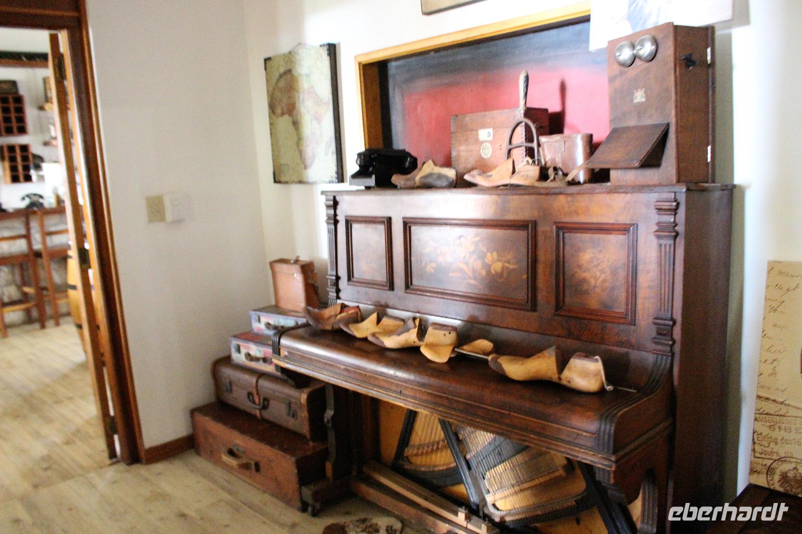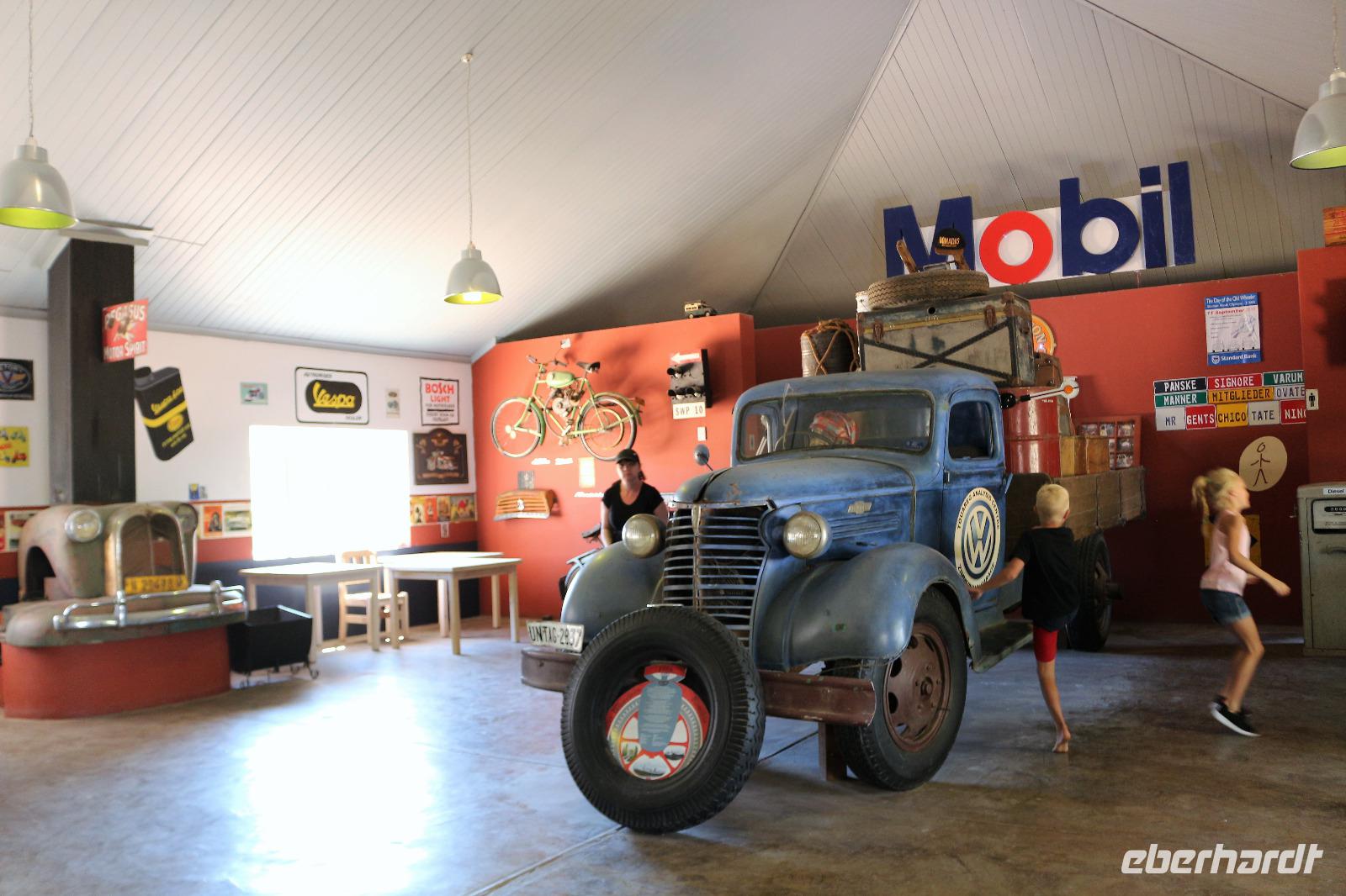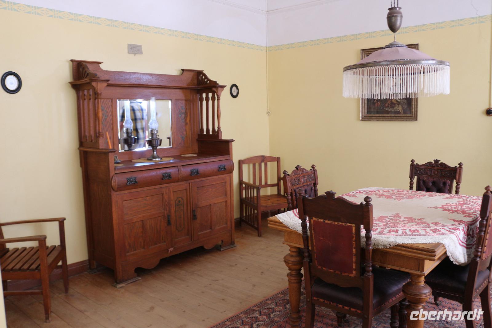 Unsere weitere geplante Besichtigung musste auf den nächsten Tag verschoben werden, da diese bei diesem Unwetter schlichtweg nicht umsetzbar war. So fuhren wir direkt weiter bis Keetmanshoop, wo wir zunächst ein kleines, aber sehr feines Heimatmuseum in der Felsenkirche besichtigten. Weiter fuhren wir zu unserer nächsten Lodge, dem „Schützenhaus". Nachdem die Zimmer bezogen waren, trafen wir uns in der Bar, um mit einem leckeren „Springbock" auf Henners Geburtstag anzustoßen. Dabei staunten wir nicht schlecht, als wir diverse Deutschland-Fahnen aus verschiedenen Zeiten an den Wänden entdeckten. Und das, obwohl doch in Namibia so viel dafür getan wird, diesen Teil der Vergangenheit vollkommen hinter sich zu lassen. Am Abend erwartete uns, wie sollte es in einem Schützenhaus auch anders sein, ein klassisches Wiener Schnitzel. Gut gesättigt von den reichlichen Portionen verabschiedeten wir uns auf unsere Zimmer.