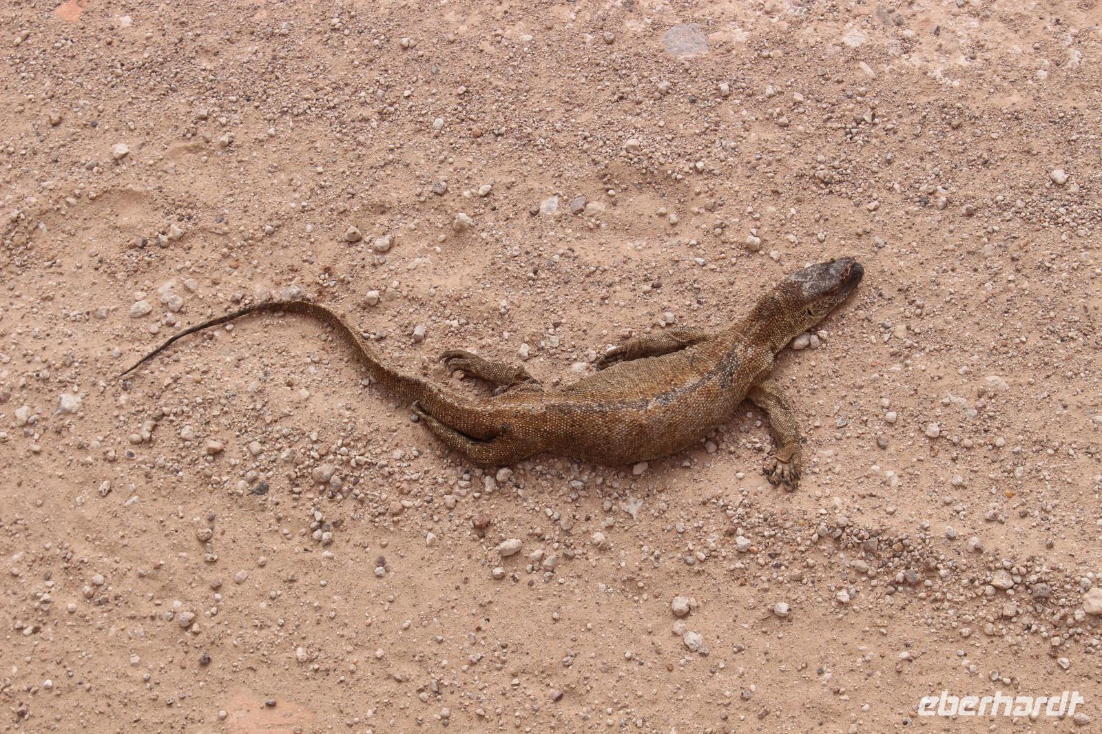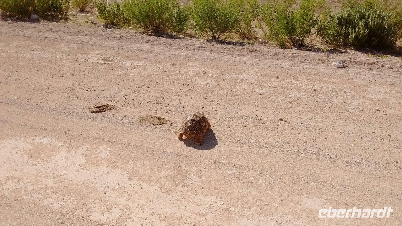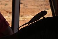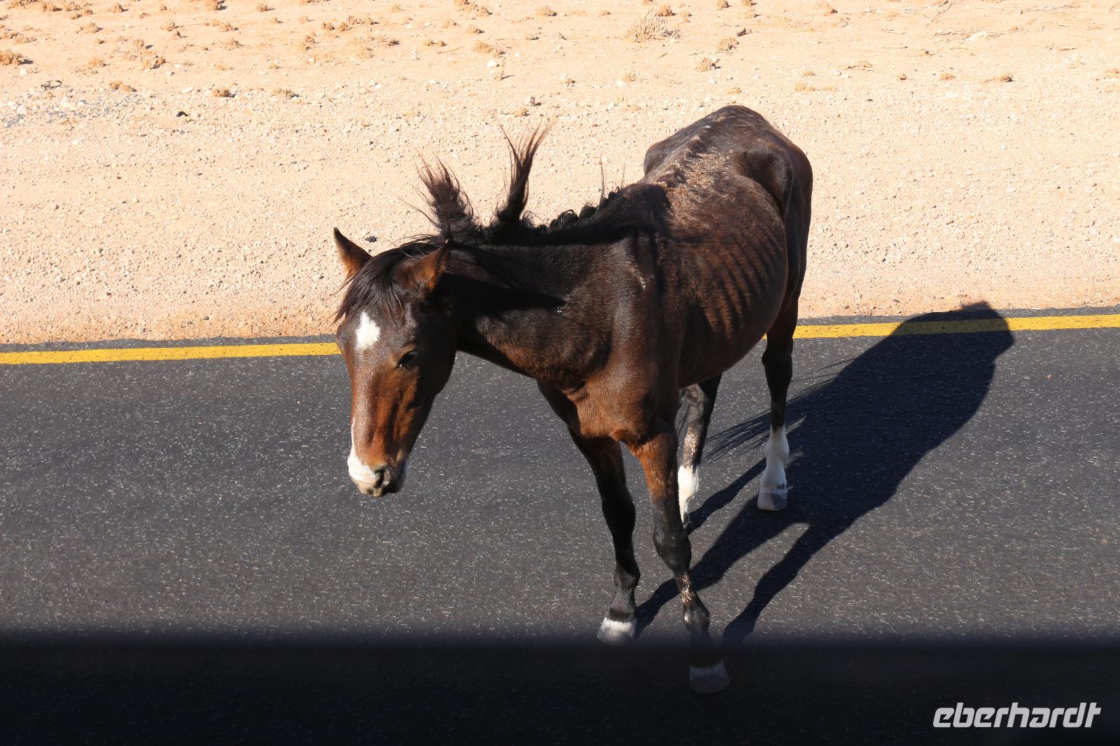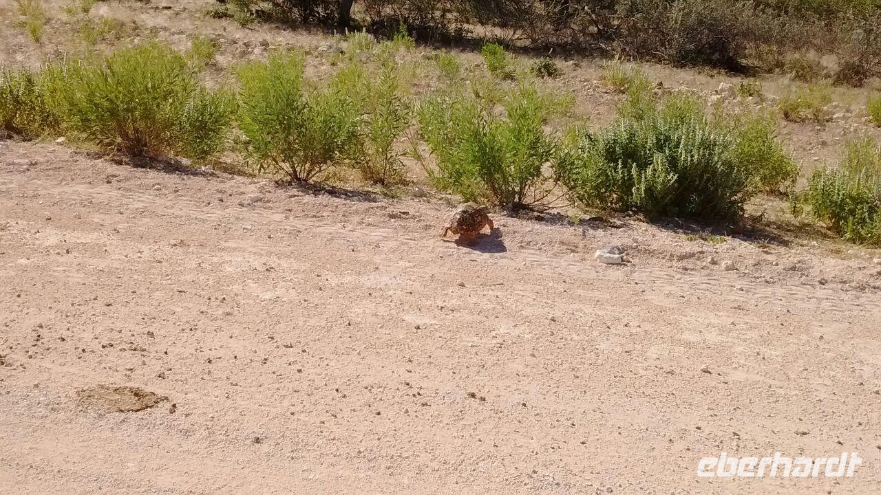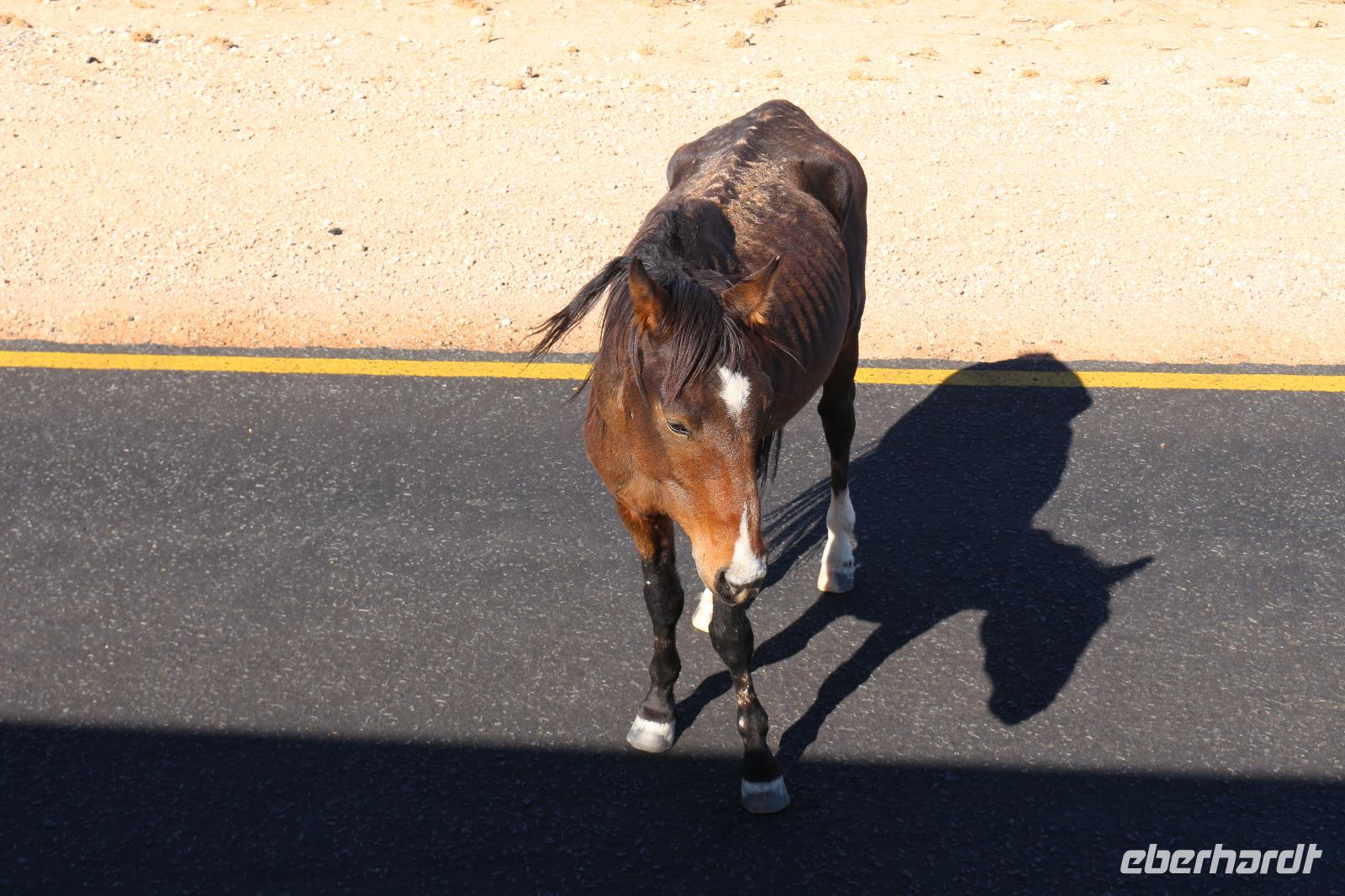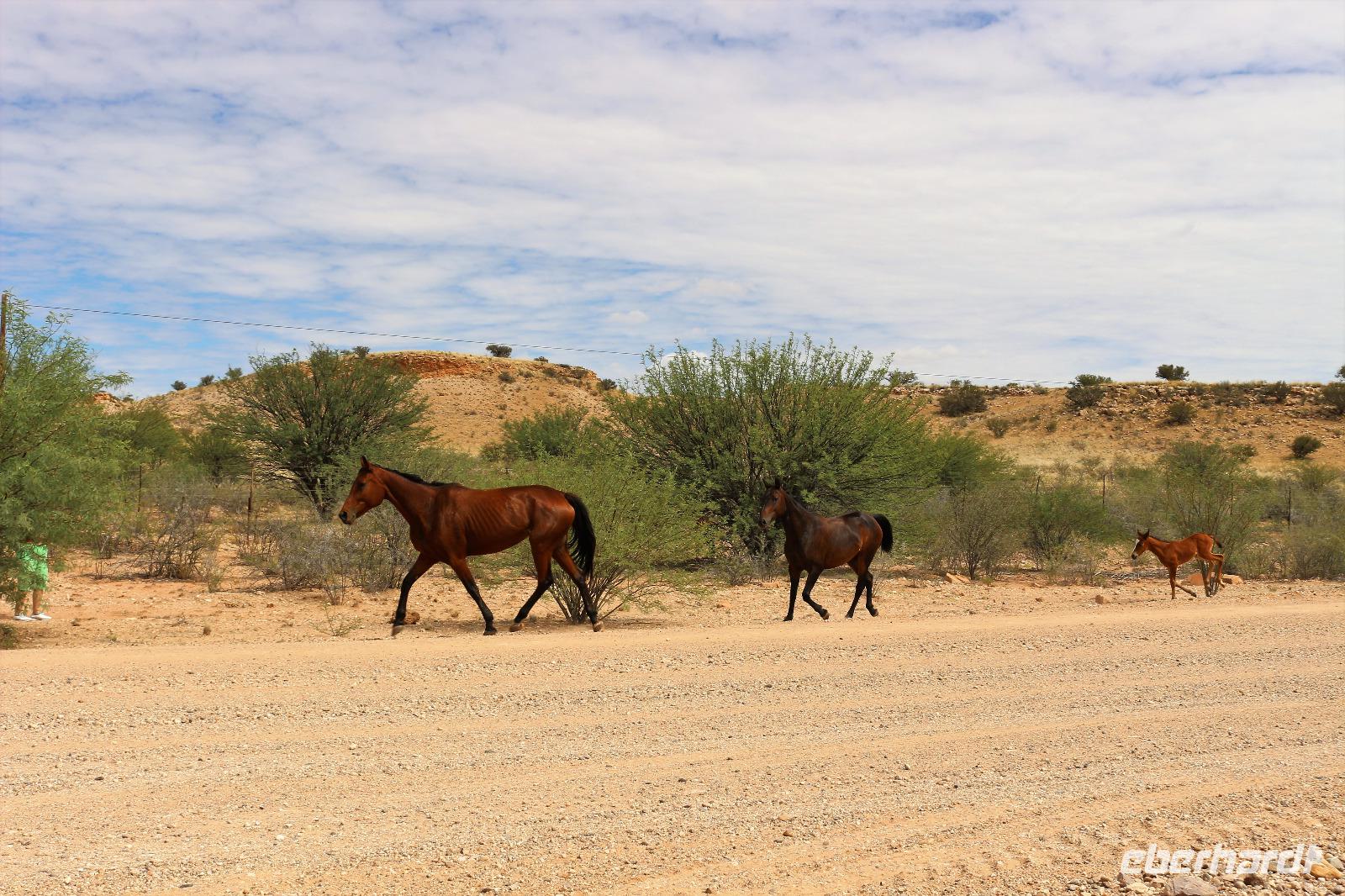 Heute lag ein langer Fahrttag mit vielen Kilometern vor uns. Doch zuvor stärkten wir uns am äußerst reichhaltigen Frühstücksbuffet des Hotels. Zur gewohnten Zeit verließen wir unser Hotel und damit auch die Stadt Lüderitz. Unterwegs sahen wir recht viele der wilden Pferde, welche nur noch sehr selten anzutreffen sind und aller Voraussicht nach in wenigen Jahren ausgestorben sein werden. Außerdem zeigte sich uns auf einer Farm ein Exemplar des nur äußerst selten vorkommenden Goldenen Orxy, welcher besonders wertvoll und deswegen auch entsprechend preisintensiv zu erwerben ist. Gegen Mittag kamen wir in dem doch sehr überschaubaren Ort Helmeringhausen an, welcher aus einer Tankstelle, einem Hotel und zwei weiteren Häusern besteht. Jedoch hat dieser Ort den wohl besten Apfelkuchen Namibias zu bieten, wovon wir uns aber natürlich selbst überzeugen wollten. Im sehr gemütlichen Garten des Hotels ließen wir uns diesen Kuchen schmecken und waren tatsächlich äußerst angetan. Im Anschluss setzten wir unsere Fahrt in Richtung Norden fort. Unterwegs begegnete uns auf der Straße ein Chamäleon, welches unser Reiseleiter uns genau zeigte. Nach anfänglichen Startschwierigkeiten fühlte sich das Tier auch sichtlich wohl bei uns, jedoch mussten wir es schließlich doch dalassen. Weiterhin entdeckte unser Reiseleiter Henner eine schwarze Spuckkobra mitten auf der Straße, jedoch war diese bereits tot.