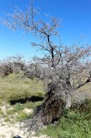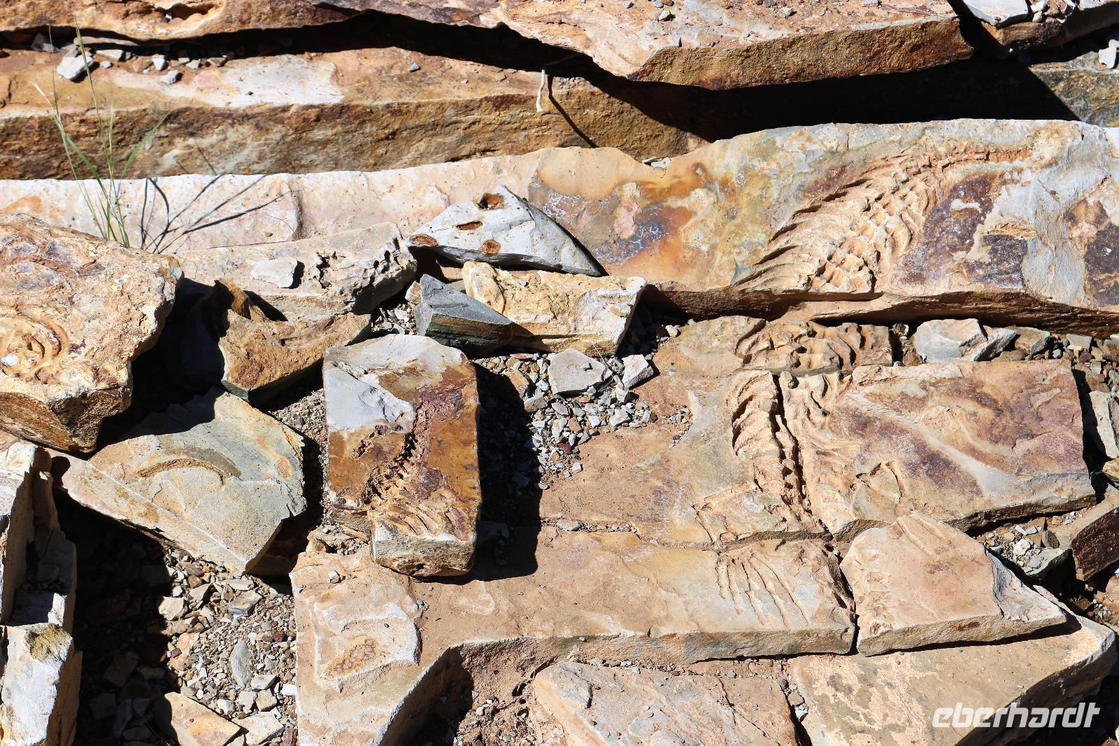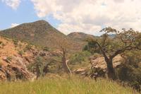 Den verbrannten Berg konnten wir nur aus dem Bus in der Ferne erkennen, da das Gelände aufgrund des Regens nicht mehr geöffnet war. Also fuhren wir weiter über „Stock und Stein" und überquerten so manches Revier, immer froh, dass dieses noch nicht überschwemmt war. Schließlich erreichten wir den versteinerten Wald, wo wir wieder an einer Führung teilnahmen. Der junge Mann namens Justus erklärte uns Wissenswertes zur Entstehung dieses versteinerten Holzes und über dessen jahrmillionenalte Geschichte. Wir fotografierten einige Exemplare und entdeckten unter anderem auch die älteste Pflanze der Welt.
