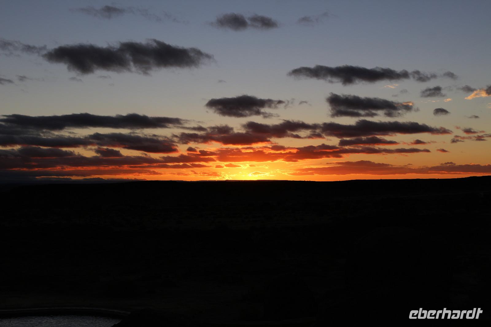 Anschließend fuhren wir zurück nach Keetmanshoop, wo Briefmarken gekauft sowie Einkäufe im örtlichen Supermarkt getätigt werden konnten. Als alles erledigt war, verließen wir die Stadt und fuhren vorbei an großen ehemaligen Straußfarmen bis zum Naute Damm. Hier suchten wir uns ein schattiges Plätzchen für unser Picknick. Gemeinsam bereiteten wir einen leckeren griechischen Salat zu und ließen uns diesen anschließend schmecken. Nachdem einige Zeit später alles wieder im Bus verstaut war, fuhren wir weiter in Richtung unserer heutigen Lodge. Unterwegs machten wir einen Fotostop an einem alten Ofen zum Brennen von Ziegelsteinen. Am späten Nachmittag kamen wir schließlich in der Canyon Lodge an, wo wir mit einem Willkommensgetränk begrüßt wurden. Anschließend konnten individuell Spaziergänge auf dem weitläufigen Lodge-Gelände unternommen werden. Ein besonderes Highlight war dabei der Sonnenuntergang inmitten dieser einzigartigen Landschaft. Am Abend trafen wir uns zu einem schmackhaften Abendessen wieder und ließen den Abend gemütlich ausklingen.