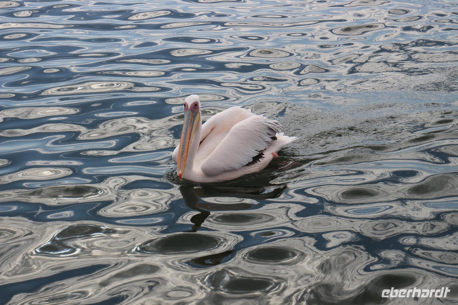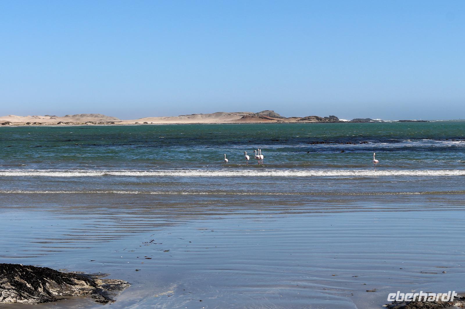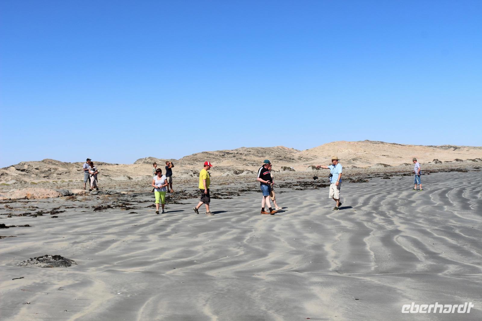 Weiter ging es durch eine karge Wüstenlandschaft bis an die Küste. Hier wurde es schlagartig kühler, da ein sehr frischer Wind wehte. Zunächst führte uns unsere Reise nach Walvis Bay, wo wir unsere Mittagspause in einem sehr gemütlichen Restaurant am Hafen verbrachten. Anschließend fotografierten wir die Flamingos, welche von unserer Anwesenheit jedoch nicht allzu begeistert schienen. Wenig später erreichten wir auch schon die Hafenstadt Swakopmund, welche unser heutiges Tagesziel sein sollte. Nach einer kurzen orientierenden Stadtrundfahrt checkten wir im Hansa Hotel ein und bezogen nach einem Begrüßungssekt unsere Zimmer. Anschließend war Zeit für eine kleine individuelle Erkundungstour in der Stadt oder für die Erledigung von Bankgeschäften. Am Abend trafen wir uns im Hotelrestaurant, wo wir ein exzellentes Abendessen in angenehmer Atmosphäre genossen. Besonderer Höhepunkt war die unterhaltsame Zubereitung der Hausspezialität, des „Kolonial-Kaffees", ein Getränk bestehend aus Kaffee, Eierlikör, Kaffeelikör und Weinbrand mit Sahne, welches einen besonders guten Schlaf ermöglichen sollte.