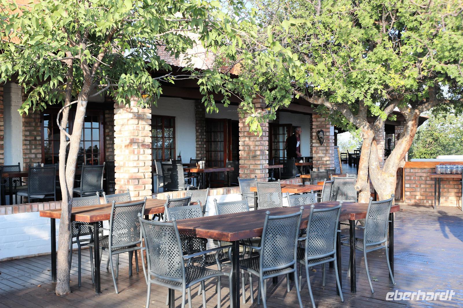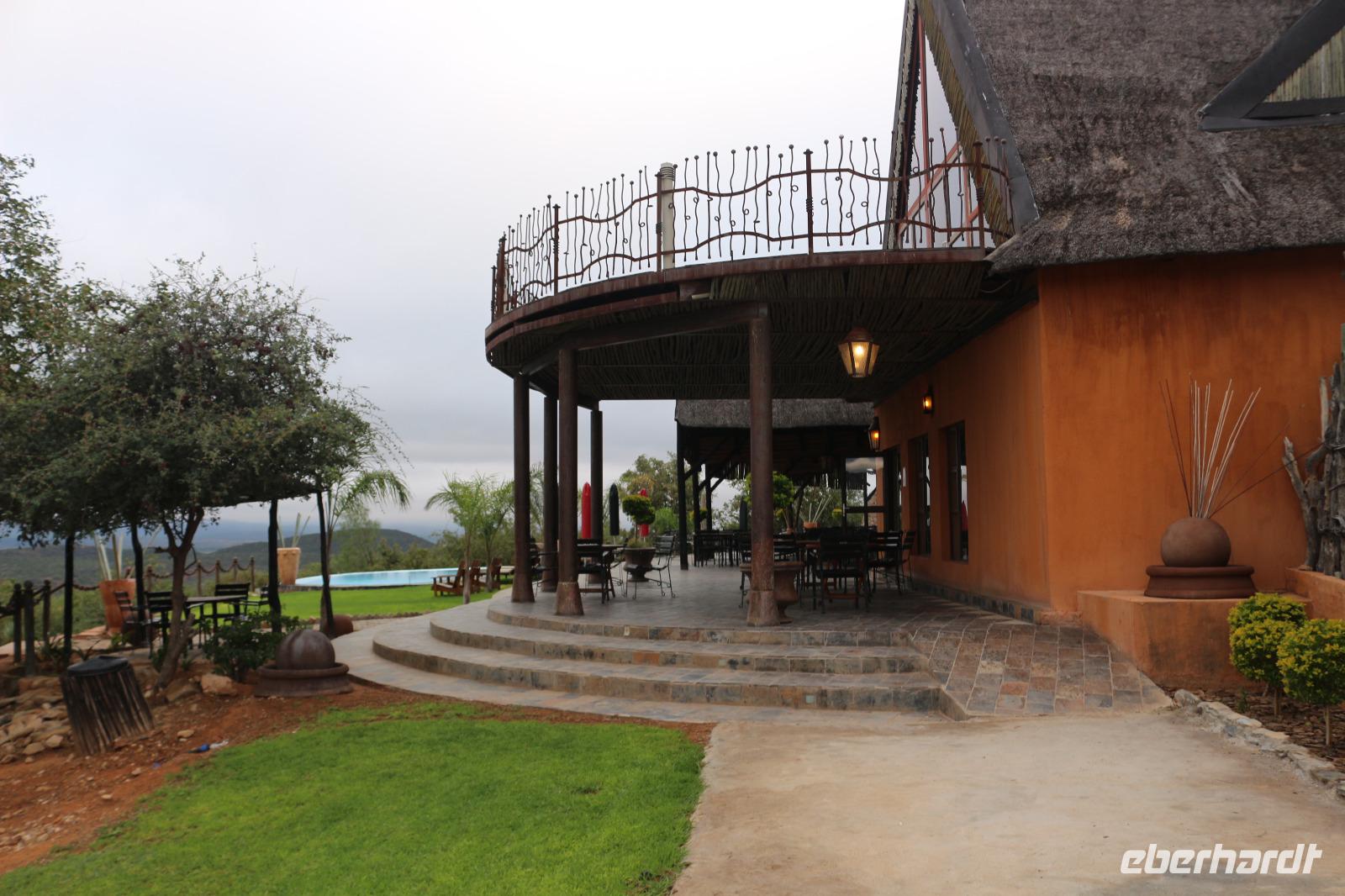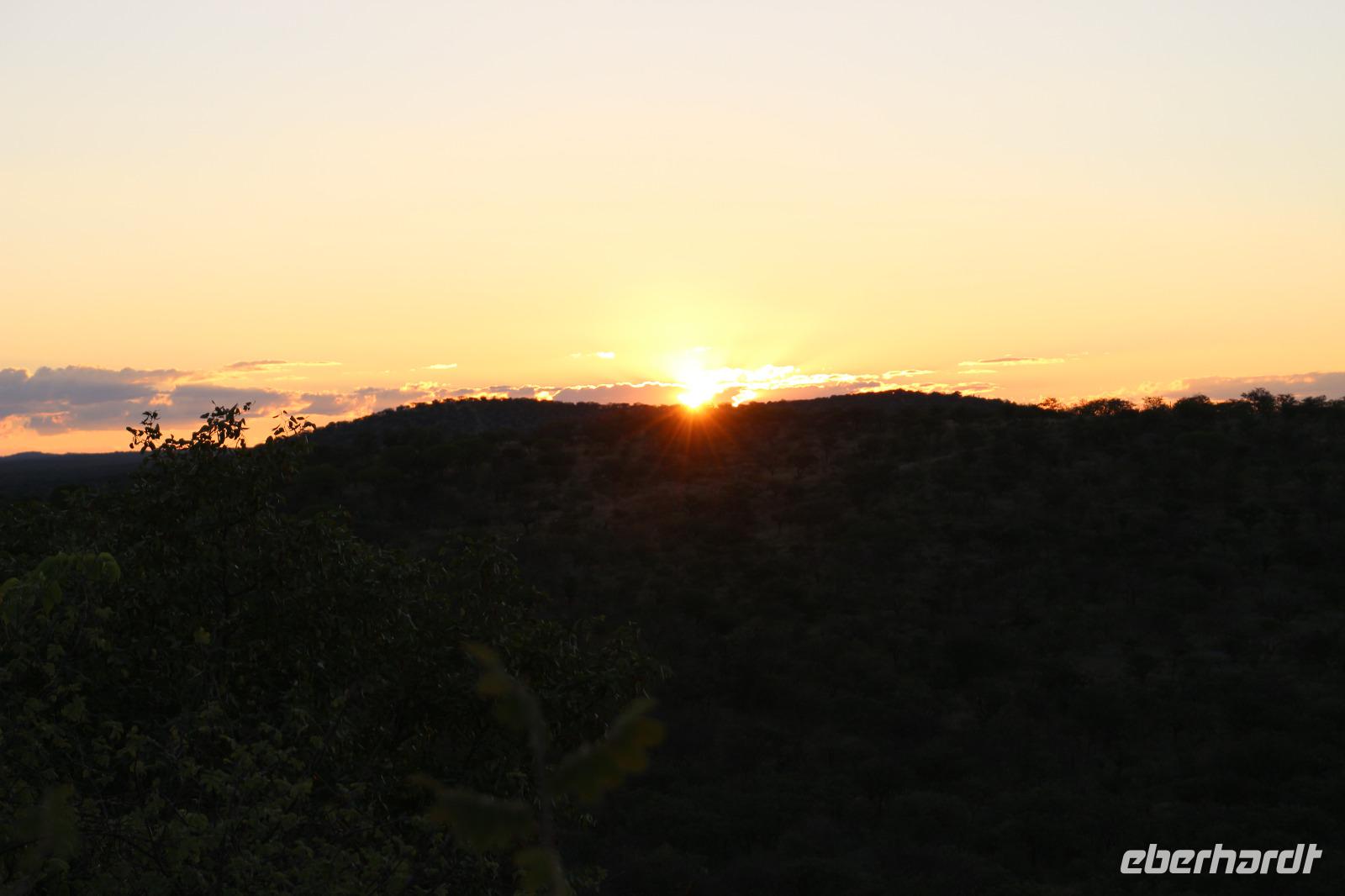 Doch dieser war noch nicht beendet: es erwartete uns wenig später eine weitere „Sundownerfahrt". Auch wenn wir hier nicht so viele Tiere wie bei unserer ersten Fahrt dieser Art sahen, konnten wir hier ganz einmalige Landschaften bewundern und fotografieren. Schließlich gab es für uns wieder einen leckeren „Sundowner" in Form eines Gin Tonics, bei welchem wir den tollen Blick auf unsere Lodge und die Umgebung genossen. Zurück am Lodgegelände blieb uns noch ein wenig Zeit, bis wir uns wenig später wieder zum Abendessen trafen, wo wir den doch recht anstrengenden Tag mit vielen aktiven Highlights ausklingen ließen.
