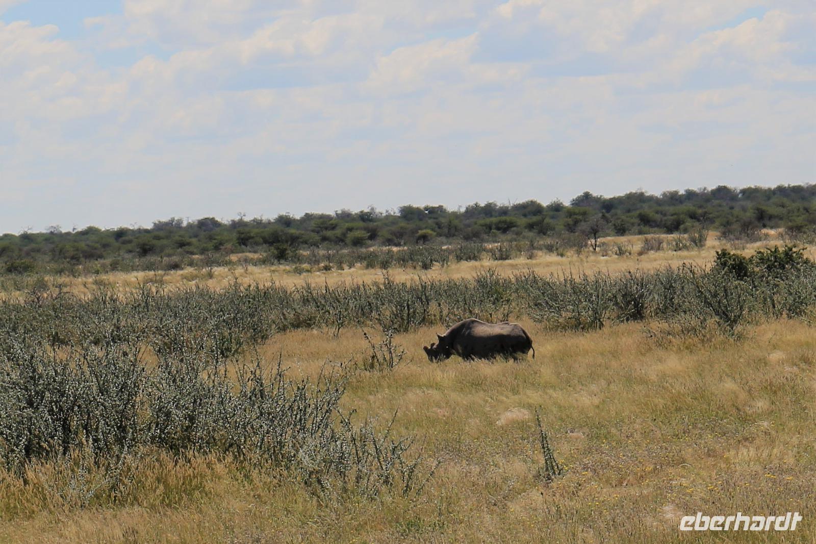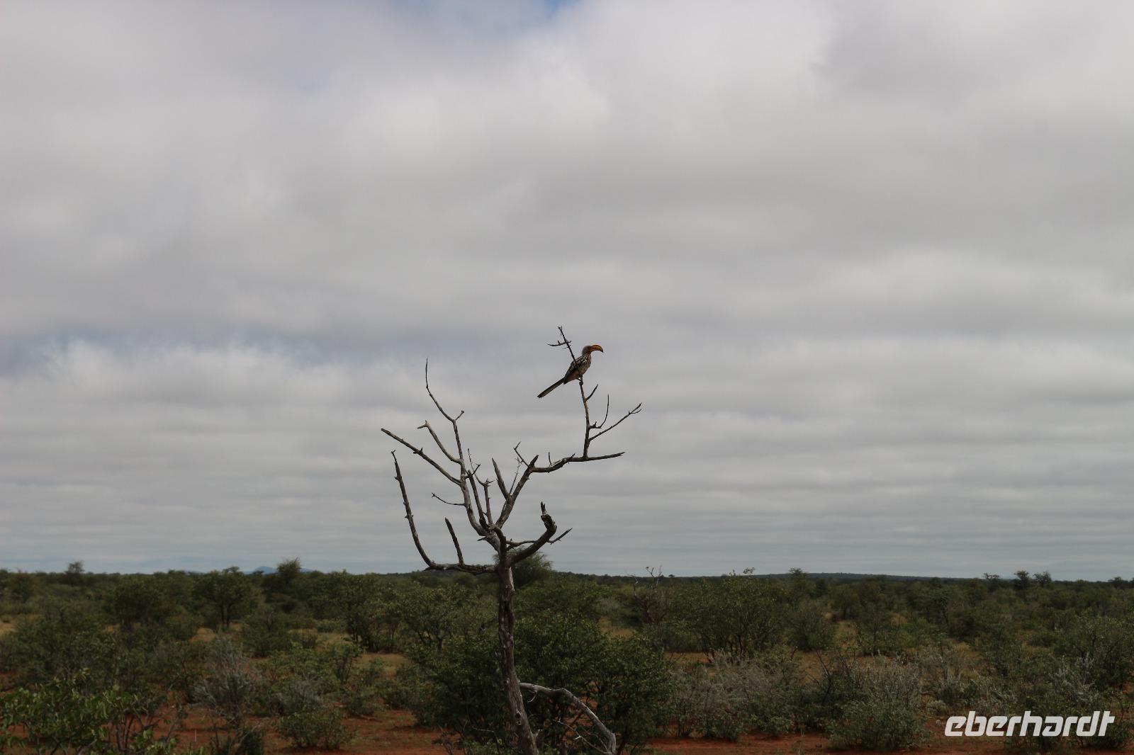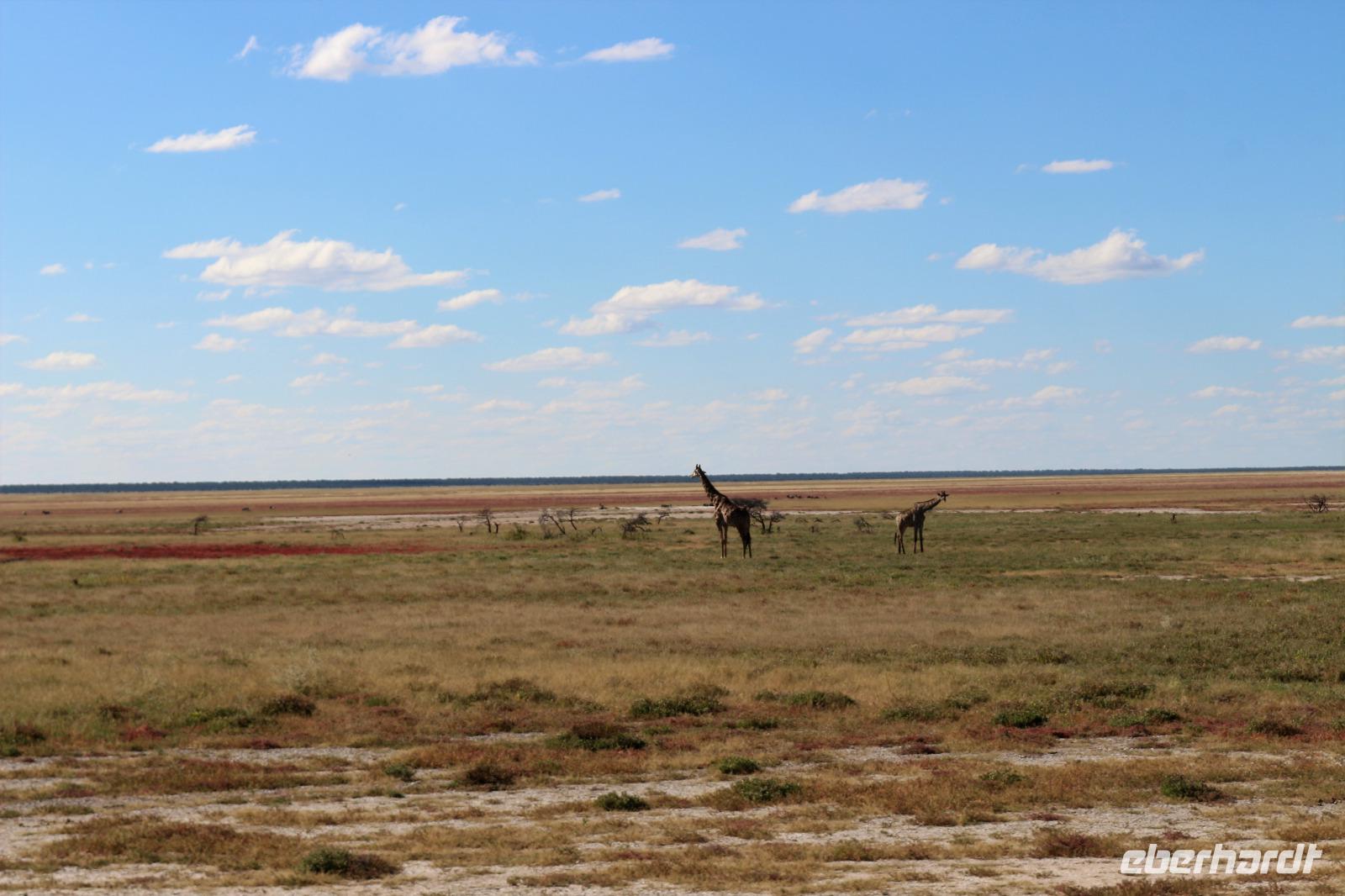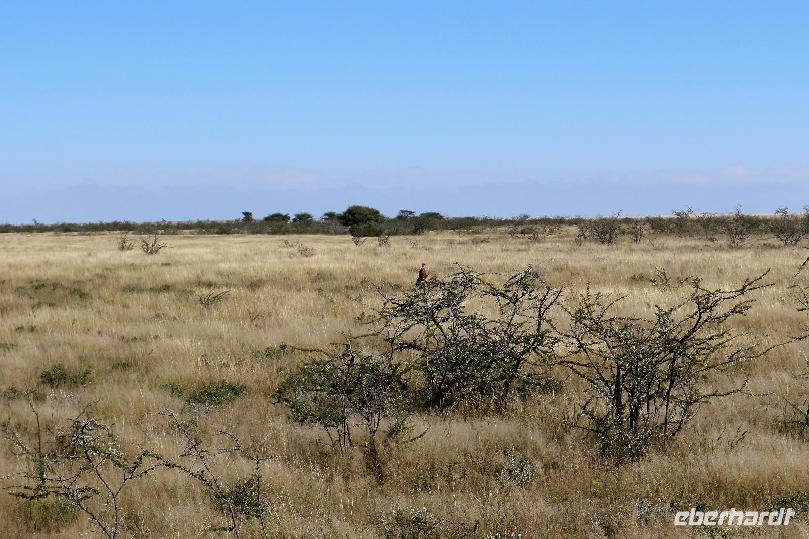 Heute gab es für uns schon 6.00 Uhr Frühstück, sodass wir uns direkt 7.00 Uhr auf den Weg in den Etosha Nationalpark machen konnten. Voller Erwartungen passierten wir das Anderson Gate. Schon wenig später fanden wir die ersten noch ganz frischen Spuren von Elefanten und Nashörnern, kurz darauf auch von Leoparden. Doch trotz intensiver Bemühungen konnten wir die dazugehörigen Tiere nicht erspähen. Stattdessen zeigten sich uns Warzenschweine, Kudus, Schakale und verschiedene Vögel, wie beispielsweise Riesentrappe, Gackeltrappe und Paradieskranich. Nach einer ersten kurzen Pause im Okaukuejo Resort fuhren wir in den östlicheren Teil des Parkes, in der Hoffnung dort die eine oder andere große Katze vorzufinden. Jedoch war dies wenig erfolgreich, sodass uns nur Springböcke, Oryx und Impalas vor die Linse liefen. So beschlossen wir nach unserer Mittagspause im Okaukuejo Resort wieder in den westlicheren Teil des Nationalparkes zu fahren, wo wir gestern recht erfolgreich gewesen waren. Doch heute war das Glück nicht auf unserer Seite, sodass wir nur Zebras und Giraffen entdecken konnten. Ohne die erhofften großen Erfolge fuhren wir zurück zu unserer Lodge. Unsere gute Laune ließen wir uns jedoch keinesfalls verderben und so genossen wir ein kühles Bier bei bester Aussicht auf der Terrasse oder unternahmen den einen oder anderen Spaziergang durch die weitläufige Anlage. Nach einem sehr guten Abendessen ließen wir den Tag noch gemeinsam an der Bar ausklingen.