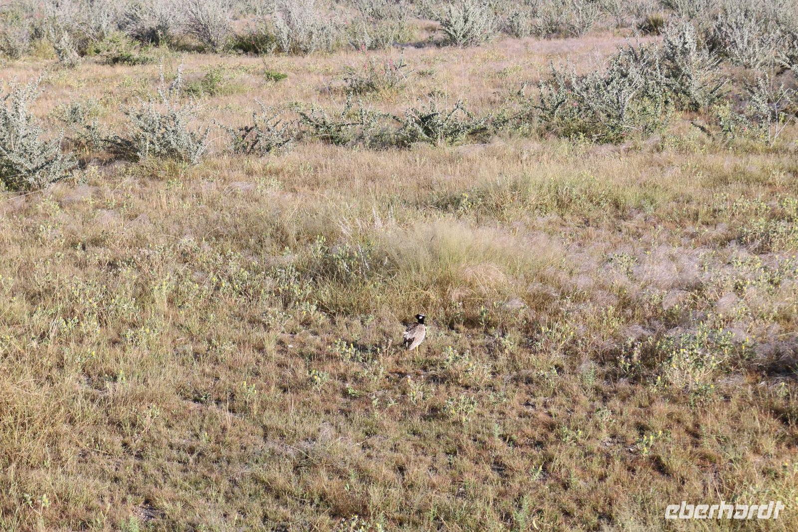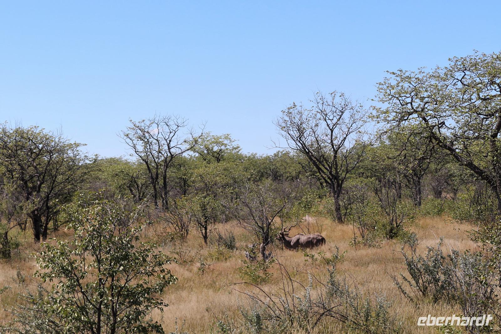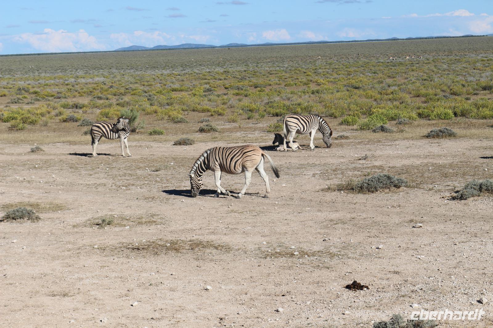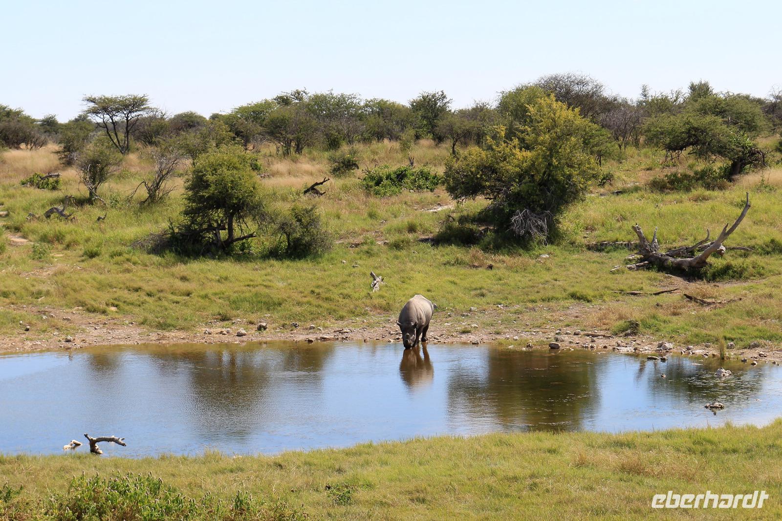 Heute gab es für uns schon 6.00 Uhr Frühstück, sodass wir uns direkt 7.00 Uhr auf den Weg in den Etosha Nationalpark machen konnten. Voller Erwartungen passierten wir das Anderson Gate. Schon wenig später fanden wir die ersten noch ganz frischen Spuren von Elefanten und Nashörnern, kurz darauf auch von Leoparden. Doch trotz intensiver Bemühungen konnten wir die dazugehörigen Tiere nicht erspähen. Stattdessen zeigten sich uns Warzenschweine, Kudus, Schakale und verschiedene Vögel, wie beispielsweise Riesentrappe, Gackeltrappe und Paradieskranich. Nach einer ersten kurzen Pause im Okaukuejo Resort fuhren wir in den östlicheren Teil des Parkes, in der Hoffnung dort die eine oder andere große Katze vorzufinden. Jedoch war dies wenig erfolgreich, sodass uns nur Springböcke, Oryx und Impalas vor die Linse liefen. So beschlossen wir nach unserer Mittagspause im Okaukuejo Resort wieder in den westlicheren Teil des Nationalparkes zu fahren, wo wir gestern recht erfolgreich gewesen waren. Doch heute war das Glück nicht auf unserer Seite, sodass wir nur Zebras und Giraffen entdecken konnten. Ohne die erhofften großen Erfolge fuhren wir zurück zu unserer Lodge. Unsere gute Laune ließen wir uns jedoch keinesfalls verderben und so genossen wir ein kühles Bier bei bester Aussicht auf der Terrasse oder unternahmen den einen oder anderen Spaziergang durch die weitläufige Anlage. Nach einem sehr guten Abendessen ließen wir den Tag noch gemeinsam an der Bar ausklingen.