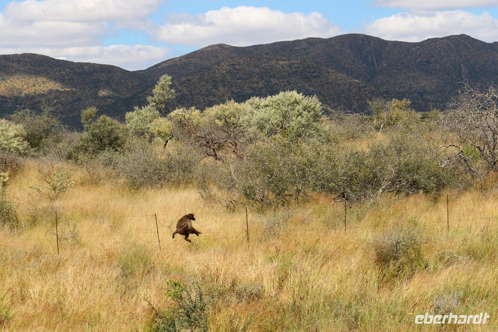 An unserem letzten Reisetag war es uns nun noch einmal vergönnt, etwas länger zu schlafen und anschließend ausgiebig zu frühstücken. Dabei genossen wir die letzten wärmenden afrikanischen Sonnenstrahlen auf der Terrasse der Lodge. Nachdem alle Koffer gepackt waren, setzten wir uns hier schließlich noch einmal zusammen, um uns hier in Ruhe von unserem Fahrer und Reiseleiter Henner verabschieden zu können. Hier hatten wir für ihn eine kleine Überraschung in Form verschiedenster Süßigkeiten und Knabbereien vorbereitet, da dies seine übliche Fahrtenverpflegung auf der Reise dargestellt hatte. Am späten Vormittag war jedoch schließlich die Zeit gekommen, die Lodge zu verlassen und in Richtung Flughafen zu fahren. Auf dem Weg dahin entdeckten wir wieder ein paar Paviane und fuhren außerdem an Henners Farm vorbei. Schließlich kamen wir am Flughafen an, wo es nun Zeit war, sich endgültig von Henner zu verabschieden. So schnell waren die letzten Wochen vergangen! Gemeinsam checkten wir für unsere bevorstehenden Flüge ein und nutzten schließlich noch die Gelegenheit, die letzten namibischen Dollar zurückzutauschen oder in einem der kleinen Shops umzusetzen. Wenig später startete unser Flug in Richtung Johannesburg und wir ließen Namibia nach drei wunderschönen Wochen hinter uns. Am Johannesburger Flughafen verliefen Pass- und Sicherheitskontrolle sehr unkompliziert, sodass wir schon bald unser Gate für den Weiterflug erreicht hatten. Nach einem ruhigen Flug erreichten wir am Morgen auch schon wieder deutschen Boden. Hier trennten sich nun auch die Wege unserer Reisegruppe. Während einige nach Dresden oder Berlin weiterflogen, waren die anderen in Frankfurt bereits am Ziel der Reise angekommen. So verabschiedeten wir uns hier voneinander und setzten die letzte Etappe unserer Heimreise in kleineren Grüppchen fort. Wohlbehalten kamen wir nach ereignisreichen Wochen schließlich wieder zu Hause an, mit vielen einmaligen Erlebnissen im Gepäck.