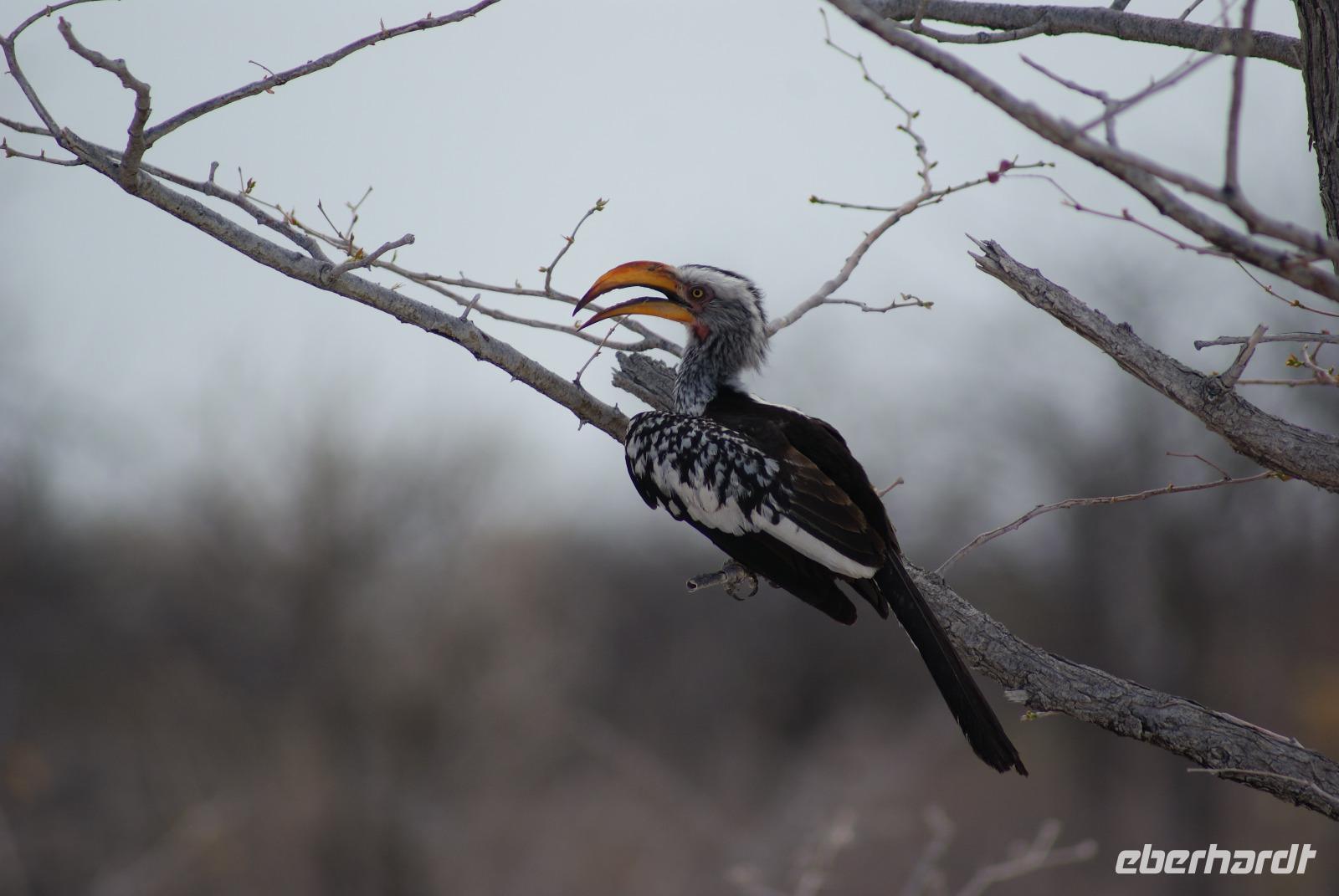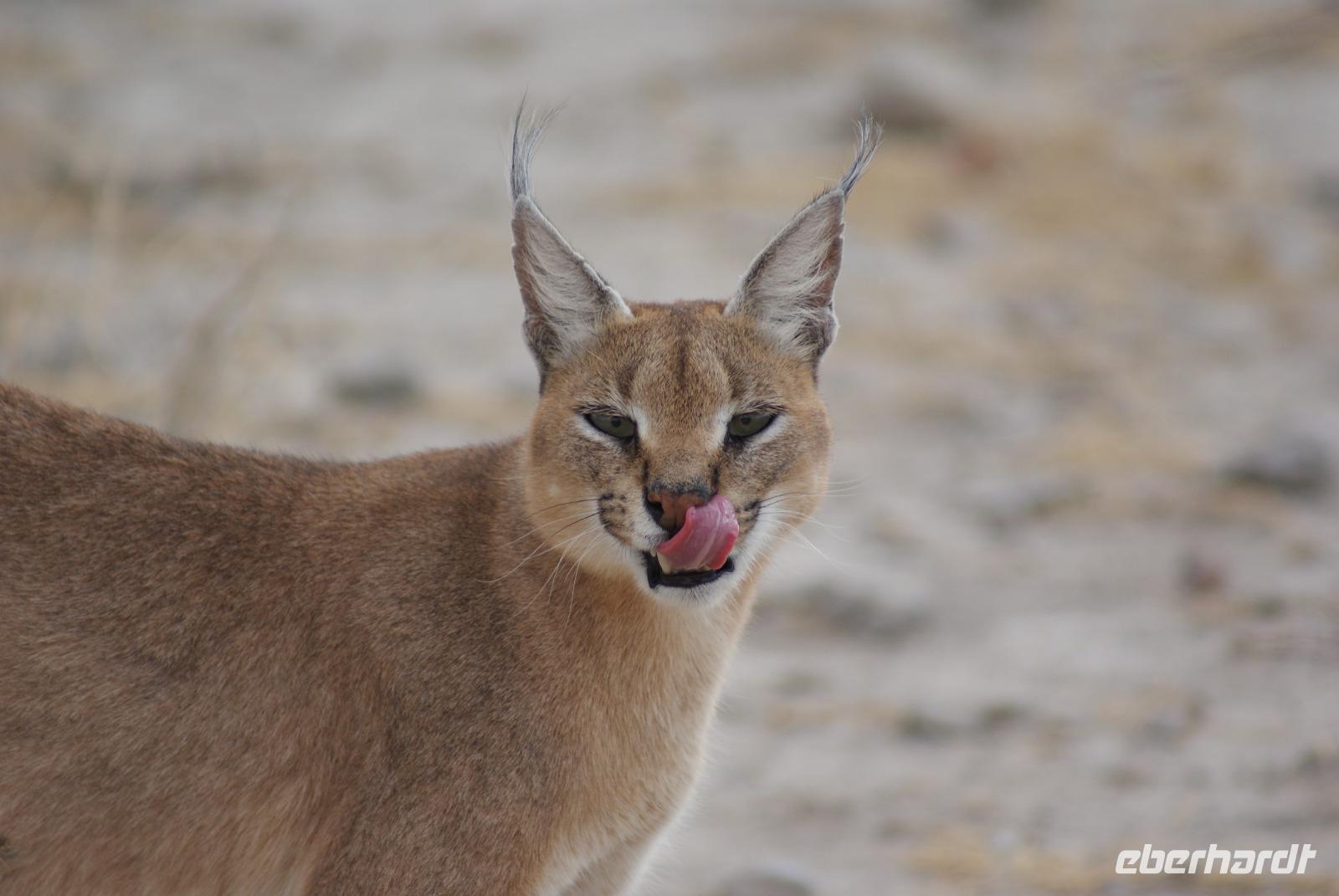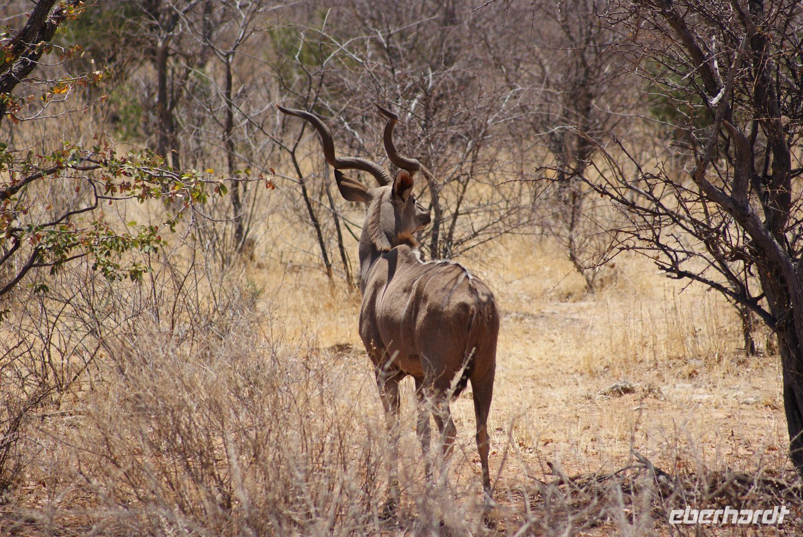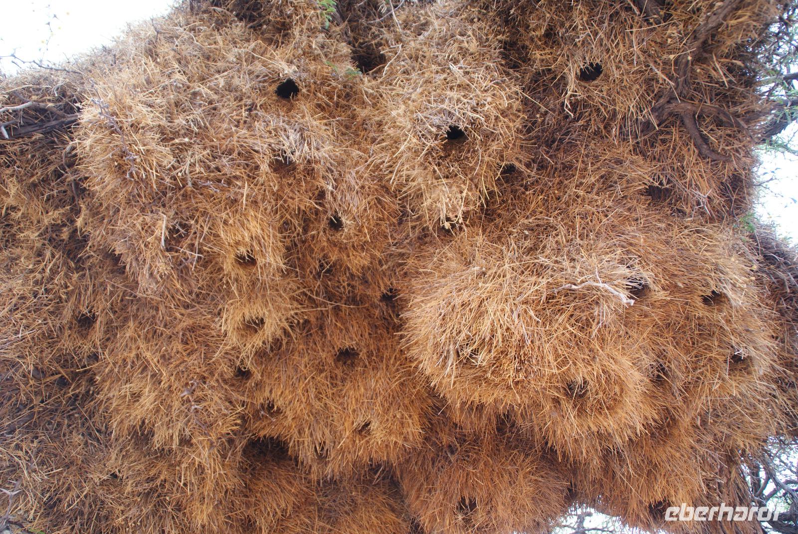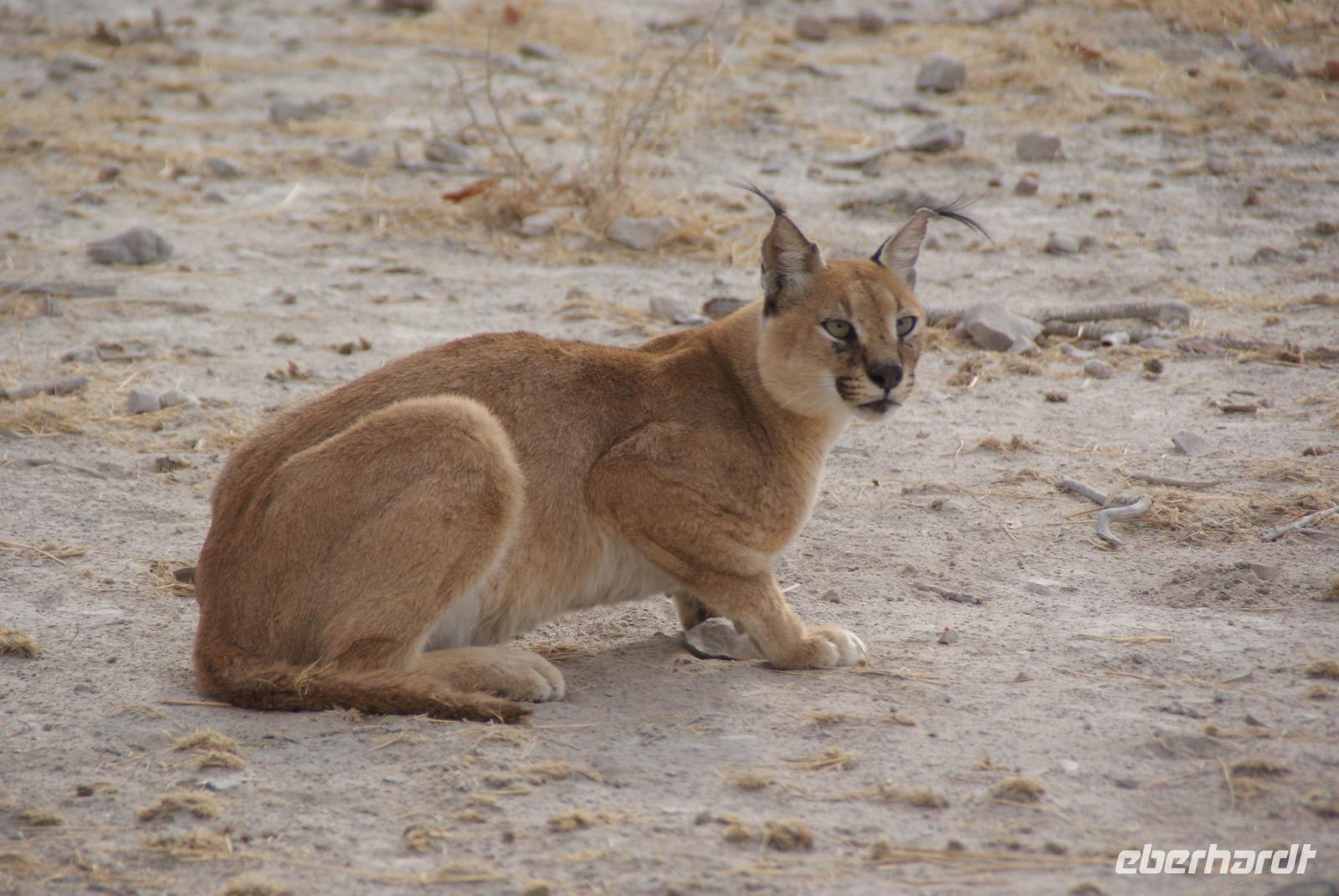 Mit viel Wind in den Ohren haben wir herrlich geschlafen und sehen uns ausgeruht und guter Dinge zum ersten Frühstück in Namibia wieder. Ein leckeres Buffet mit grandioser Aussicht auf das unter uns liegende Windhoek empfängt uns. Nachdem alle Koffer wieder verladen sind, verlassen wir die Stadt und machen uns auf Richtung Kalahari mit dem heutigen Tagesziel der Kalahari Anib Lodge. Vorbei am sogenannten „Heldenacker" mit imposantem Obelisk, welcher an den Freiheitskampf 1966 erinnern soll, fahren wir weiter und lassen die Weiten Namibias auf uns wirken. Zahlreiche Bärenpaviane säumen unsere Strecke und graben nach schmackhaften Wurzeln. Reiseleiterin Dagmar gibt uns eine schöne Einführung über viel Nützliches und Wissenswertes, was wir für unseren Aufenthalt in Namibia benötigen werden. Am frühen Nachmittag erreichen wir unsere Lodge und haben die nächsten Stunden Zeit, die jeder nach Lust und Laune mit relaxen, schwimmen im Pool oder einer Wanderung auf dem Gelände verbringen kann. Gegen 16.30 Uhr treffen sich alle zur gebuchten Sundowner Fahrt mit offenen Jeeps wieder. Unsere beiden Guides Jürgen und Levis begleiten uns auf dieser Tour und so fahren zwei Jeeps exklusiv für die Eberhardt Gäste los, um die Kalahari mit Flora, Fauna und vor allem schon den ersten Tieren kennenzulernen. Unser lustiger Guide Jürgen zeigt uns neben Termitenhügeln, Kameldornakazien auch lustige Dinge, wie den Kot des Gefängnisesels (Zebra) und auch auf eine Gruppe homo touristicos (andere Gäste) treffen wir....Spaß bei Seite...wir sehen Löcher im Boden, die sich sogenannte Erdferkel gegraben haben, halten an einer imposanten Webervogelkolonie mit unzähligen Nestern. Dort entdecken wir (also Jürgen) einen Flecken-Uhu und beobachten das Treiben der unzähligen Vögel der Kolonie. Wunderschöne Kudus stehen im Dickicht selbst die stolzen Oryx Antilopen, das Nationaltier Südafrikas bekommen wir zu sehen. Unseren Weg kreuzt ein Warzenschwein, welches auch scherzhaft Buschradio (Antenne, also der Schwanz bei Flucht nach oben) genannt wird. Ein leckeres Getränk in Form von Gin Tonic, Wein, Bier oder Softgetränk versüßt uns den herrlichen Sonnenuntergang in der Kalahari und so gut gestärkt verläuft die Rückfahrt nochmal so fröhlich. Nach so vielen schönen Eindrücken treibt uns der Hunger ans reichhaltige Buffet und in geselliger Runde lassen wir uns ein köstliches Abendessen besonders gut schmecken.