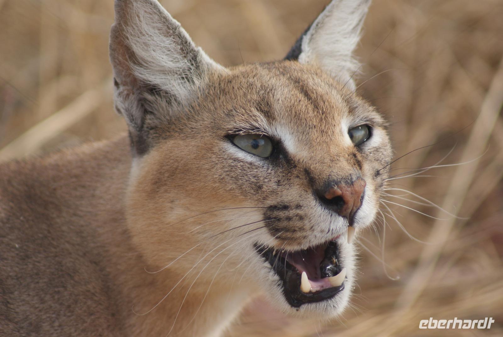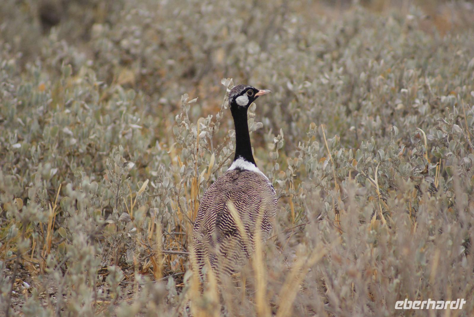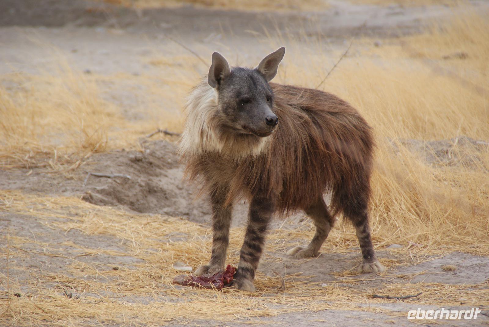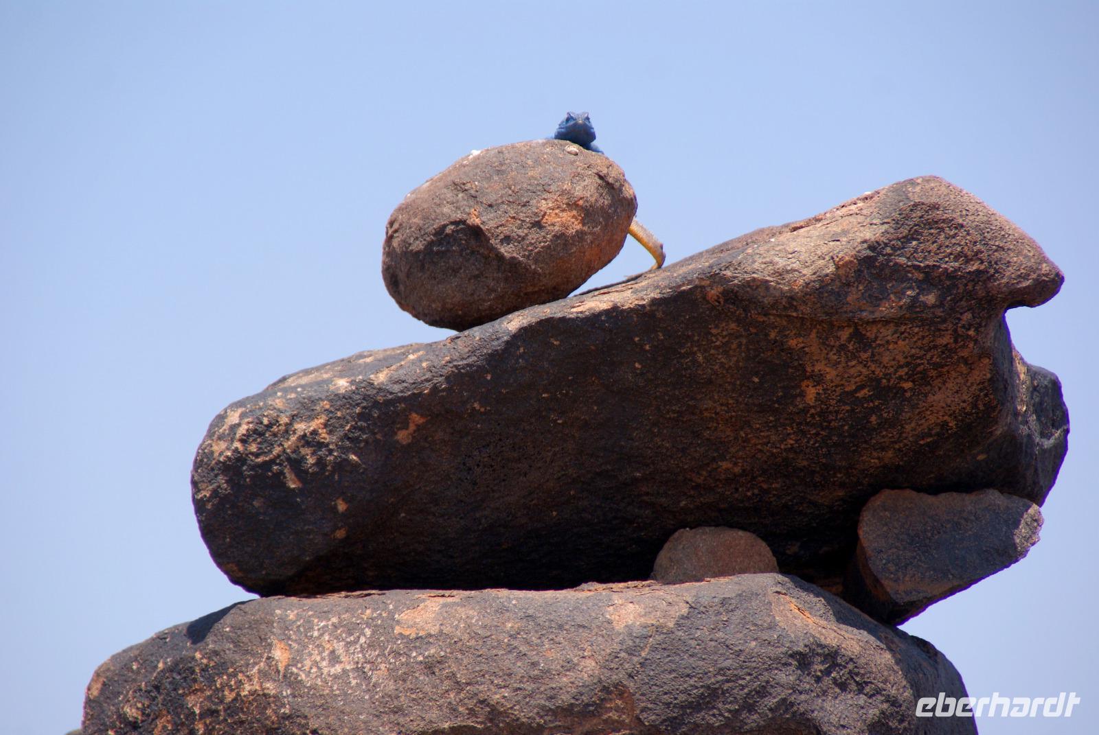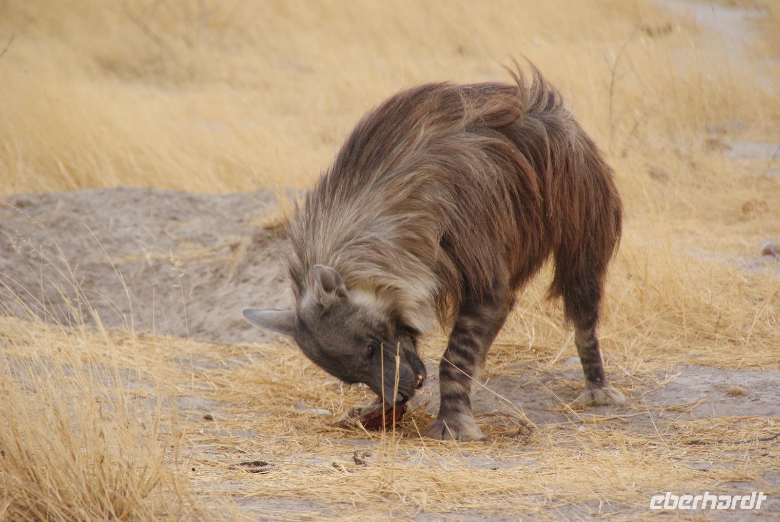 Mit viel Wind in den Ohren haben wir herrlich geschlafen und sehen uns ausgeruht und guter Dinge zum ersten Frühstück in Namibia wieder. Ein leckeres Buffet mit grandioser Aussicht auf das unter uns liegende Windhoek empfängt uns. Nachdem alle Koffer wieder verladen sind, verlassen wir die Stadt und machen uns auf Richtung Kalahari mit dem heutigen Tagesziel der Kalahari Anib Lodge. Vorbei am sogenannten „Heldenacker" mit imposantem Obelisk, welcher an den Freiheitskampf 1966 erinnern soll, fahren wir weiter und lassen die Weiten Namibias auf uns wirken. Zahlreiche Bärenpaviane säumen unsere Strecke und graben nach schmackhaften Wurzeln. Reiseleiterin Dagmar gibt uns eine schöne Einführung über viel Nützliches und Wissenswertes, was wir für unseren Aufenthalt in Namibia benötigen werden. Am frühen Nachmittag erreichen wir unsere Lodge und haben die nächsten Stunden Zeit, die jeder nach Lust und Laune mit relaxen, schwimmen im Pool oder einer Wanderung auf dem Gelände verbringen kann. Gegen 16.30 Uhr treffen sich alle zur gebuchten Sundowner Fahrt mit offenen Jeeps wieder. Unsere beiden Guides Jürgen und Levis begleiten uns auf dieser Tour und so fahren zwei Jeeps exklusiv für die Eberhardt Gäste los, um die Kalahari mit Flora, Fauna und vor allem schon den ersten Tieren kennenzulernen. Unser lustiger Guide Jürgen zeigt uns neben Termitenhügeln, Kameldornakazien auch lustige Dinge, wie den Kot des Gefängnisesels (Zebra) und auch auf eine Gruppe homo touristicos (andere Gäste) treffen wir....Spaß bei Seite...wir sehen Löcher im Boden, die sich sogenannte Erdferkel gegraben haben, halten an einer imposanten Webervogelkolonie mit unzähligen Nestern. Dort entdecken wir (also Jürgen) einen Flecken-Uhu und beobachten das Treiben der unzähligen Vögel der Kolonie. Wunderschöne Kudus stehen im Dickicht selbst die stolzen Oryx Antilopen, das Nationaltier Südafrikas bekommen wir zu sehen. Unseren Weg kreuzt ein Warzenschwein, welches auch scherzhaft Buschradio (Antenne, also der Schwanz bei Flucht nach oben) genannt wird. Ein leckeres Getränk in Form von Gin Tonic, Wein, Bier oder Softgetränk versüßt uns den herrlichen Sonnenuntergang in der Kalahari und so gut gestärkt verläuft die Rückfahrt nochmal so fröhlich. Nach so vielen schönen Eindrücken treibt uns der Hunger ans reichhaltige Buffet und in geselliger Runde lassen wir uns ein köstliches Abendessen besonders gut schmecken.