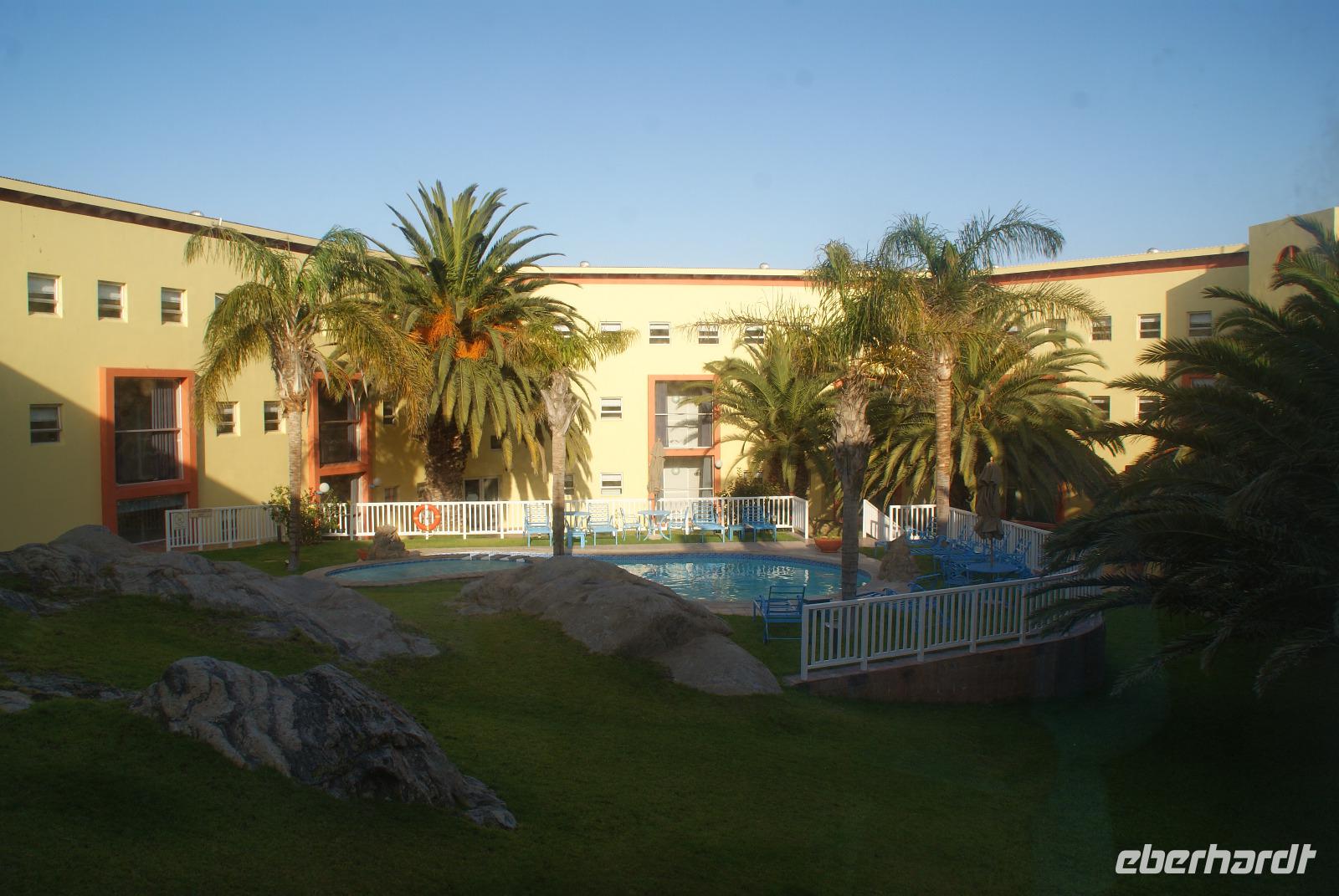 Tropic of capricorn und kurz darauf passieren wir den Gaub Pass, dessen höchste Stelle 750m misst. Zu unserer Rechten sehen wir den Gamsberg, einen sogenannten Tafelberg, von dem ein Teil dem Max Planck Institut für Astronomie gehört. Wir können uns gut vorstellen, dass man auf dem Plateau einen grandiosen Blick auf den nächtlichen Sternenhimmel genießen kann. Wir halten am 20 Millionen Jahre alten Kuiseb Canyon in dem sich der Geologe Prof. Dr. Henno Martin, Geologe und Autor des Buches „Wenn es Krieg gibt, gehen wir in die Wüste" und sein Kollege während des 2. Weltkrieges versteckt hielten. Wir staunen über die steinigen Verhältnisse dort und fragen uns, wie man so fern der Zivilisation überleben kann. An unserem Aussichtspunkt entdecken wir verschiedene Balsam Büsche, deren junge Triebe der einheimischen Bevölkerung zermahlen als Moskitoschutz dienen. Gegen Mittag erreichen wir die zweitgrößte Hafen-und Industriestadt Namibias Walvis Bay mit 70.000 Einwohnern und werfen einen Blick auf den hier ansässigen und wichtigsten Hafen Namibias. Auf unserer Weiterfahrt zum Tagesziel Swakopmund, der deutschesten Stadt Namibias und gleichzeitig Heimatort unserer Reiseleiterin. Wir sehen Long Beach, den hier neu entstandenen Ferienort. Angekommen in Swakopmund begeben wir uns zunächst auf Stadtrundfahrt und passieren das Prinzessin Rupprecht Heim, welches 1902 gebaut und wo einst ein kleines Mädchen die Welt erblickte, welches heute unsere Reiseleiterin Dagmar ist. Unsere Fahrt führt uns vorbei am Jetty, wir sehen den Damara Turm, die Woermann Reederei, erhaschen einen Blick auf das Café Anton, berühmt für seine Schwarzwälderkirschtorte. Weiter geht es entlang des noch intakten Leuchtturms, gefolgt vom Stadtmuseum, dem Amtsgericht aus dem Jahre 1906, der Polizeistation, der Post, dem wunderschönen kolonialen Bahnhof, der seit 1994 als Luxushotel fungiert. Vor Ankunft in unserem Hansa Hotel sehen wir noch die 1913 erbaute Schule, in der auch Dagmar unterrichtet wurde, staunen über die schöne evangelische Barockkirche und das herrschaftliche Hohenzollern Haus. Eine beeindruckende Stadt und wir freuen uns darauf, hier zwei freie Nachmittage zu verbringen und alles in Ruhe zu erkunden. Unser stattliches Hansa Hotel empfängt uns mit viel Charme und Stil aus vergangene Zeit und unsere Zimmer zum Innenhof mit Gartenanlage lassen uns schon fast vergessen, in welchem Land wir uns eigentlich befinden. Den Tag rundet ein schönes Abendessen im Hotel ab und herrlich gebettet träumen wir anschließend von den vielen schönen Eindrücken des heutigen Tages.