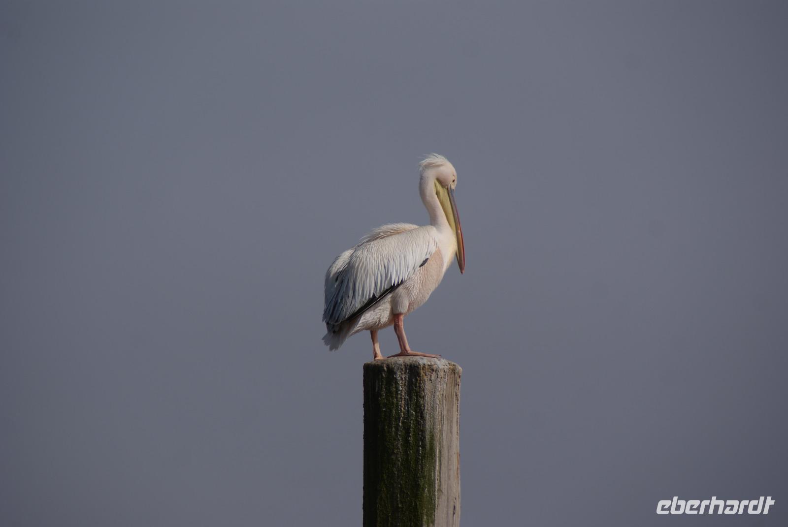 Königlich gebettet und majestätisch gefrühstückt ziehen wir los in Richtung Walvis Bay um an einer 3-stündigen Katamaran Tour teilzunehmen. Wir werden freundlich von unserem Skipper Ruan und Team empfangen und fahren auf spiegelglatter See mit tollem Sonnenschein nach draußen. Schon sehr bald kommt Ohrenrobbe Nicolas an Bord, ein ausgewachsener Robbenbulle, der sich dem ihm kredenzten Fisch schmecken lässt. Bald darauf gesellen sich Lady Gaga, eine wunderschöne Pelikandame und Fritz, der Kormoran dazu. Alle begleiten uns immer mal wieder ein Stückchen und wir freuen uns über den nahen Kontakt, den wir völlig ungezwungen zu den Tieren haben dürfen. Die Fahrt geht entlang der Halbinsel mit Robbenkolonie und wir erfahren, dass sich 60.000 Robben in der Kolonie und an der Küstenregion aufhalten. Weitere 600.000 Kormorane kommen dazu und man mag sich kaum ausmalen, wie viel Tonnen Fisch hier täglich verspeist werden. Ruan erklärt uns, dass eine Robbe im Alter von 4-24 Jahren geschlechtsreif ist und nur 7 unfruchtbare Tage hat, nämlich die Zeit, bis sie ihrem Neugeborenen das Schwimmen beigebracht hat. Danach kann sie direkt wieder trächtig sein...Die Crew verwöhnt uns mit weiteren Köstlichkeiten wie Sekt, tagesfrische Austern der umliegenden Austernbänke, Snacks und schöne Häppchen dürfen ebenso nicht fehlen, dazu ein namibischer Kaffee (Sherry) und die Stimmung und das Wetter sind prächtig. Gegen Mittag endet unsere schöne Tour und wir ziehen zurück nach Swakopmund, wo ein Teil unserer Gruppe zum 2-stündigen Rundflug erwartet wird. Die anderen erkunden eigenständig die Stadt und lassen das immer noch gegenwärtige deutsche Flair auf sich wirken. Am Abend spazieren wir zum Fischlokal „The Tug" und lassen es uns bei Fischspezialitäten, die stürmische See vor Augen und einem kühlen Bier gut gehen.