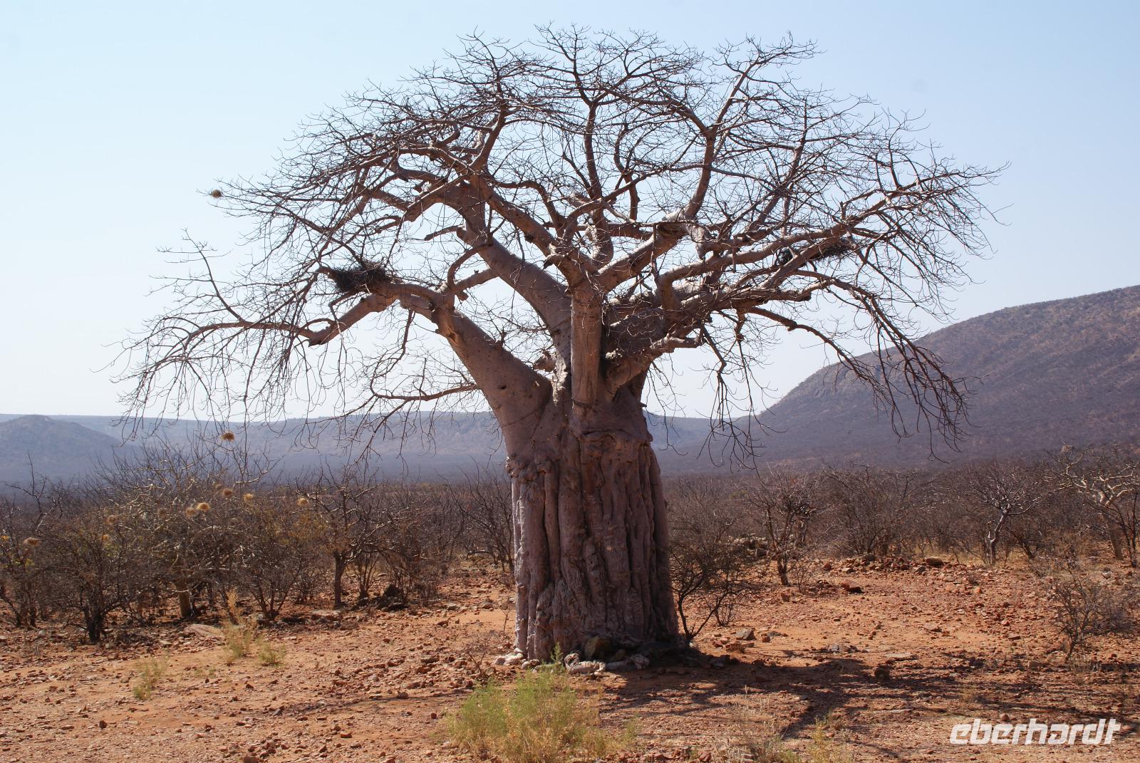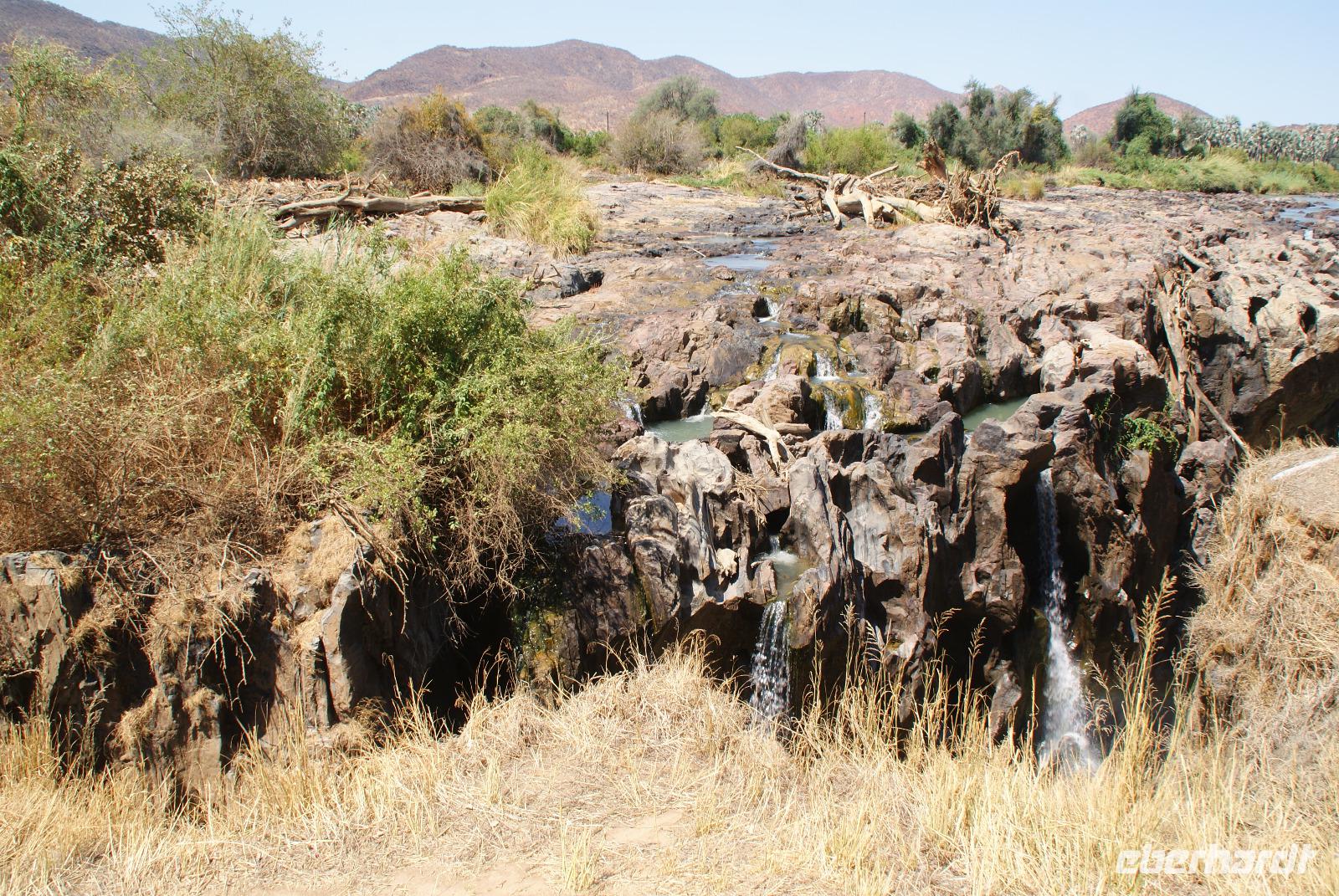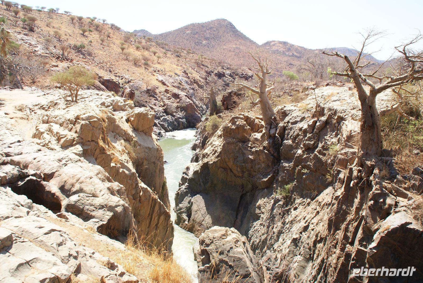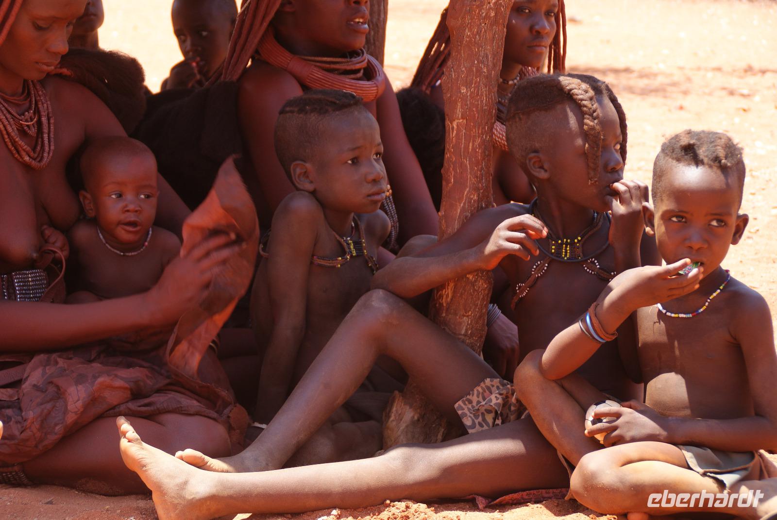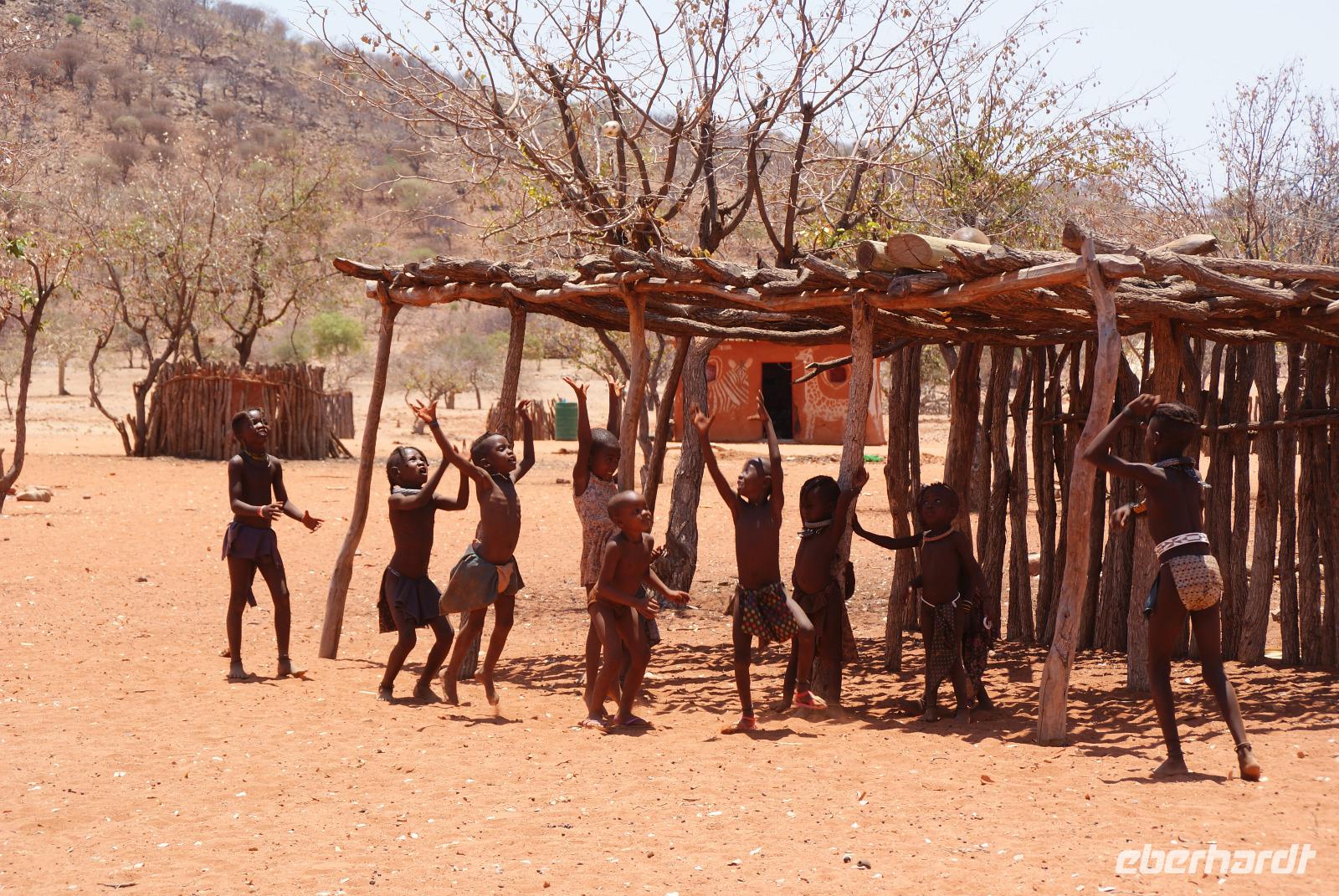 Beim Frühstück mit Aussicht stärken wir uns für den bevorstehenden Tag, der uns heute bis zur Grenze nach Angola an den Fluss Kunene und somit den Epupa Wasserfällen bringen wird. Am späten Vormittag besuchen wir zunächst ein sogenanntes „Lebendiges Museum", ein Himbadorf. Wir sind hier für heute angemeldet und bei unserer Ankunft empfangen uns die vier Frauen des Clanchefs und geduldig beantworten Sie all unsere Fragen. Erstaunt hören wir, dass ein Himbamann so viele Frauen heiraten, wie er mit Rindern bezahlen kann. Somit treffen wir hier auch auf eine große Kinderschar und die freundlichen Menschen und deren Urtümlichkeit ziehen uns rasch in ihren Bann. Der Kral des Dorfes bildet die Mitte und auch das heilige Feuer, welches nie ausgehen darf, wird uns gezeigt. Wir dürfen die verschiedenen Hütten ansehen und in einer dieser erklärt uns eine Himbafrau, wie sich ein eine Braut zur Hochzeit herrichtet. Bevor wir diese besonderen Menschen und letzten Halbnomaden wieder verlassen, statten wir noch einen Besuch auf deren Markt ab und überreichen unsere Gastgeschenke. Als nächstes halten wir an einem Camp Site, wo wir bei herrlichem Blick auf den Kunene Fluss unser Lunchpaket verzehren, dazu kühle Getränke und Kaffee vor Ort dazu kaufen. Hier könnten wir es locker ein paar Tage aushalten. Bedingt durch den Fluss sind wir nun umgeben von üppiger Natur und von leuchtend grüner Farbe, wie wir sie Tage schon nicht mehr gesehen haben. Weiter geht die Fahrt zu den Epupa Wasserfällen und es entstehen tolle Aufnahmen von der sich bietenden Natur und einem besonders imposanten Baobab Tree-einem Affenbrotbaum. Am Nachmittag treten wir die Rückfahrt nach Opuwo an und am frühen Abend erreichen wir unsere Lodge, die bereits mit einem wohlverdienten Abendessen auf uns wartet.