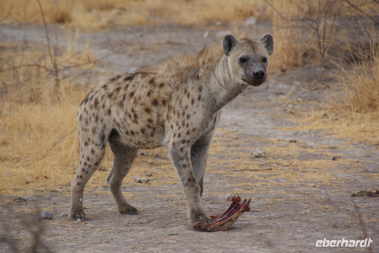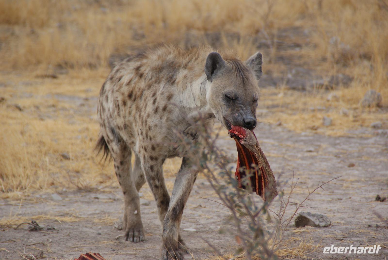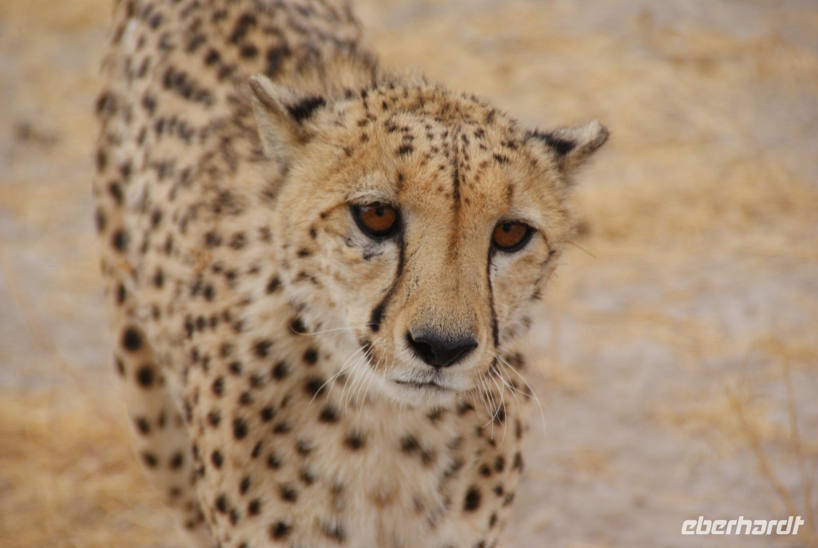 Nachdem wir die letzte Nacht von der gestrigen Erlebnissen mitsamt der Tierwelt geträumt haben, geht es heute nochmals per Safaritruck in den Park hinein. Da es sehr windet, bedeckt und kühler ist, sind wir froh um unsere geschlossene Variante und schauen uns gemütlich vom Truck aus die vielen Tiere an, die wir auch heute wieder zu Gesicht bekommen. Wir sehen eine Giraffenfamilie und erfahren, dass ein Giraffenherz 11 Kg wiegt, somit mehr als dass des Elefanten. Weiter geht's mit Löwen, Nashörnern, Elefanten, Weißrückengeier, die sich genüsslich über einen Kadaver her machen. Immer neue Geier kommen über die Einflugschneise angeflogen um ebenfalls ein Stück vom Festmahl zu erhaschen. Kudus begegnen uns und wir hören, dass Kudu in der San Sprache „der Reisende" bedeutet. Wir sehen erneut viele Elefanten und auch hier erfahren wir, dass ein Elefantenbulle bis zu 6000 Kg schwer werden kann und im Gegensatz zum Menschen nur 26 Zähne hat. Diese bekommt er im Laufe seines Lebens sechs Mal neu. Der stolze Sekretär Vogel ist wieder mit von der Partie und wir amüsieren uns über sein Aussehen und seine Art Beute in Schach zu halten. Mittags kehren wir nach einem letzten Stopp im Okaukuejo Camp in unsere Lodge zurück, essen gemütlich zu Mittag. Danach entschließt sich ein Großteil unserer Gruppe zu einem weiteren Ausflug. Wir besuchen die „El Dorado" Farm, wo wir mit Garantie Tiere sehen, die wir mitunter im Park noch nicht gesehen haben. Dazu zählen Geparden, Leoparden, die braune Hyäne und die Fleckenhyäne. Dazu gesellen sich noch Schakale, Löwen und weitere Tiere, die wir hautnah erleben durften. Ein tolles Erlebnis, diesen so nah zu sein und es entstehen tolle Aufnahmen. Unser lokaler Guide gibt uns viele interessante Informationen bei einer Einführung vorab und wir erfahren, wie es zu „El Dorado" eigentlich gekommen ist. Wir sind uns einig, dass wir diesen Ausflug nicht hätten missen wollen. Am frühen Abend kehren wir zurück und erleben nochmals ein tolles Abendessen in der so besonderen Toshari Lodge.