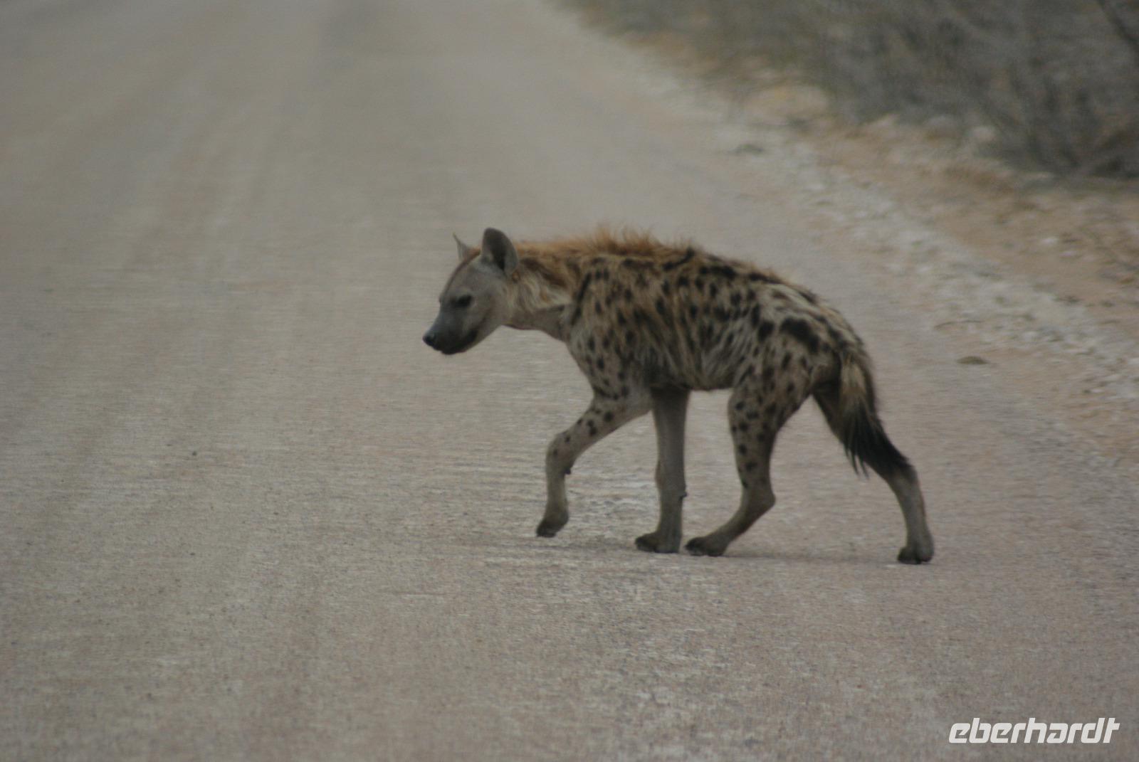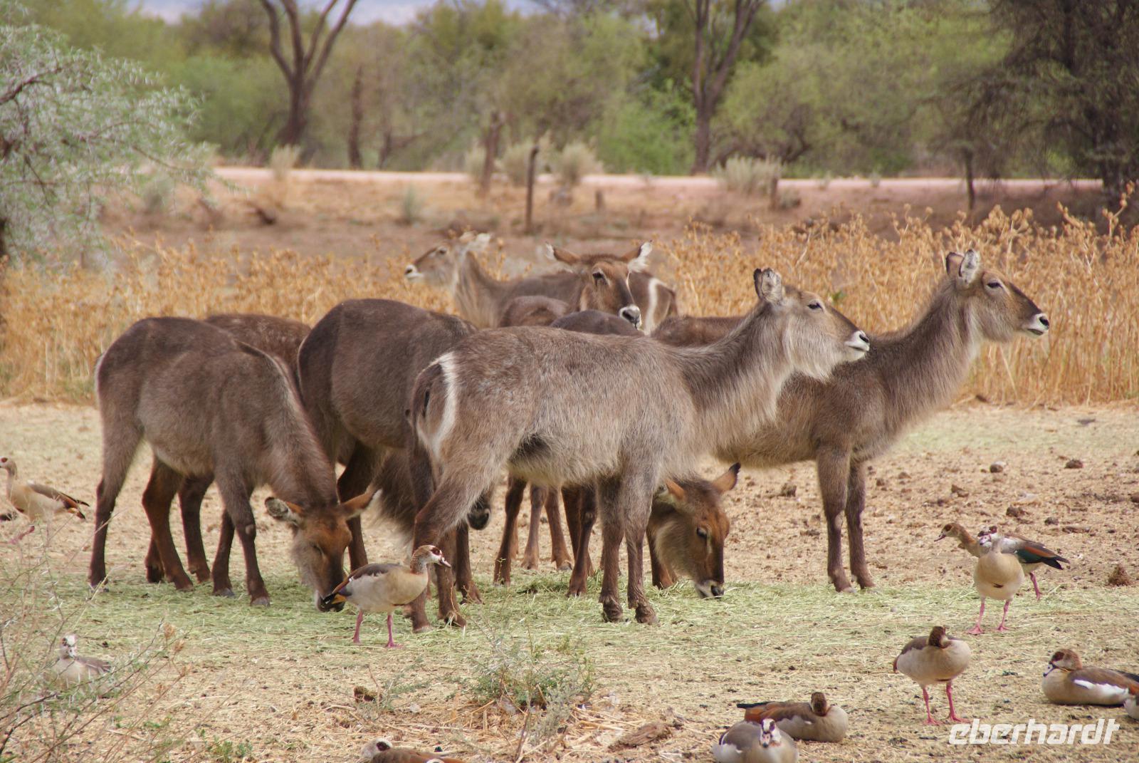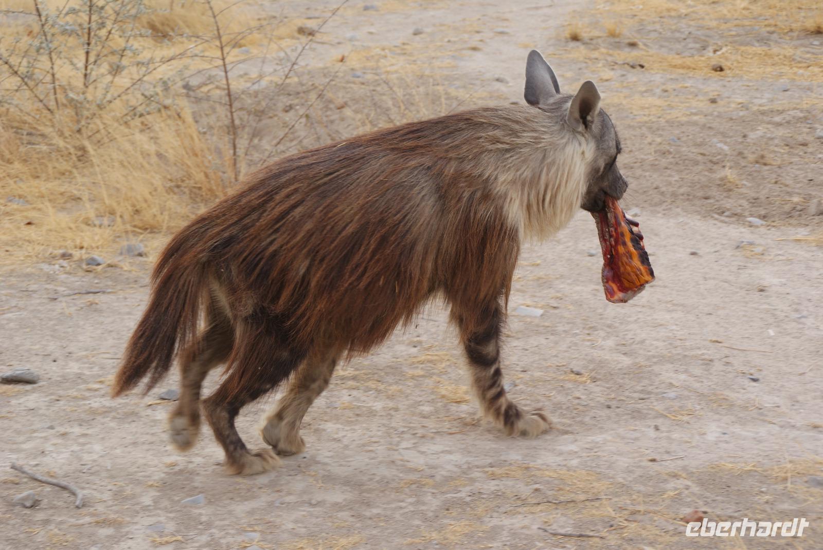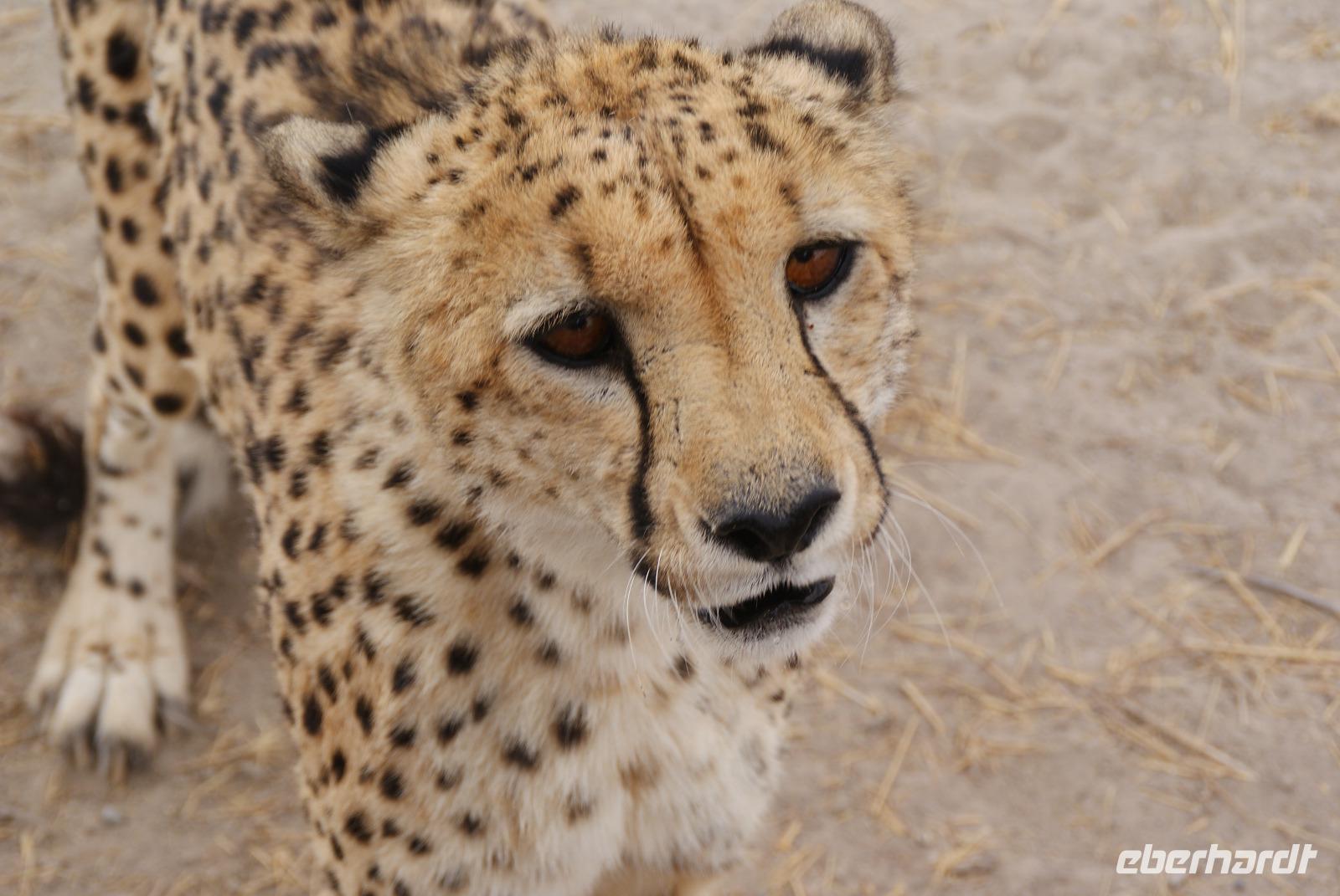 Nachdem wir die letzte Nacht von der gestrigen Erlebnissen mitsamt der Tierwelt geträumt haben, geht es heute nochmals per Safaritruck in den Park hinein. Da es sehr windet, bedeckt und kühler ist, sind wir froh um unsere geschlossene Variante und schauen uns gemütlich vom Truck aus die vielen Tiere an, die wir auch heute wieder zu Gesicht bekommen. Wir sehen eine Giraffenfamilie und erfahren, dass ein Giraffenherz 11 Kg wiegt, somit mehr als dass des Elefanten. Weiter geht's mit Löwen, Nashörnern, Elefanten, Weißrückengeier, die sich genüsslich über einen Kadaver her machen. Immer neue Geier kommen über die Einflugschneise angeflogen um ebenfalls ein Stück vom Festmahl zu erhaschen. Kudus begegnen uns und wir hören, dass Kudu in der San Sprache „der Reisende" bedeutet. Wir sehen erneut viele Elefanten und auch hier erfahren wir, dass ein Elefantenbulle bis zu 6000 Kg schwer werden kann und im Gegensatz zum Menschen nur 26 Zähne hat. Diese bekommt er im Laufe seines Lebens sechs Mal neu. Der stolze Sekretär Vogel ist wieder mit von der Partie und wir amüsieren uns über sein Aussehen und seine Art Beute in Schach zu halten. Mittags kehren wir nach einem letzten Stopp im Okaukuejo Camp in unsere Lodge zurück, essen gemütlich zu Mittag. Danach entschließt sich ein Großteil unserer Gruppe zu einem weiteren Ausflug. Wir besuchen die „El Dorado" Farm, wo wir mit Garantie Tiere sehen, die wir mitunter im Park noch nicht gesehen haben. Dazu zählen Geparden, Leoparden, die braune Hyäne und die Fleckenhyäne. Dazu gesellen sich noch Schakale, Löwen und weitere Tiere, die wir hautnah erleben durften. Ein tolles Erlebnis, diesen so nah zu sein und es entstehen tolle Aufnahmen. Unser lokaler Guide gibt uns viele interessante Informationen bei einer Einführung vorab und wir erfahren, wie es zu „El Dorado" eigentlich gekommen ist. Wir sind uns einig, dass wir diesen Ausflug nicht hätten missen wollen. Am frühen Abend kehren wir zurück und erleben nochmals ein tolles Abendessen in der so besonderen Toshari Lodge.