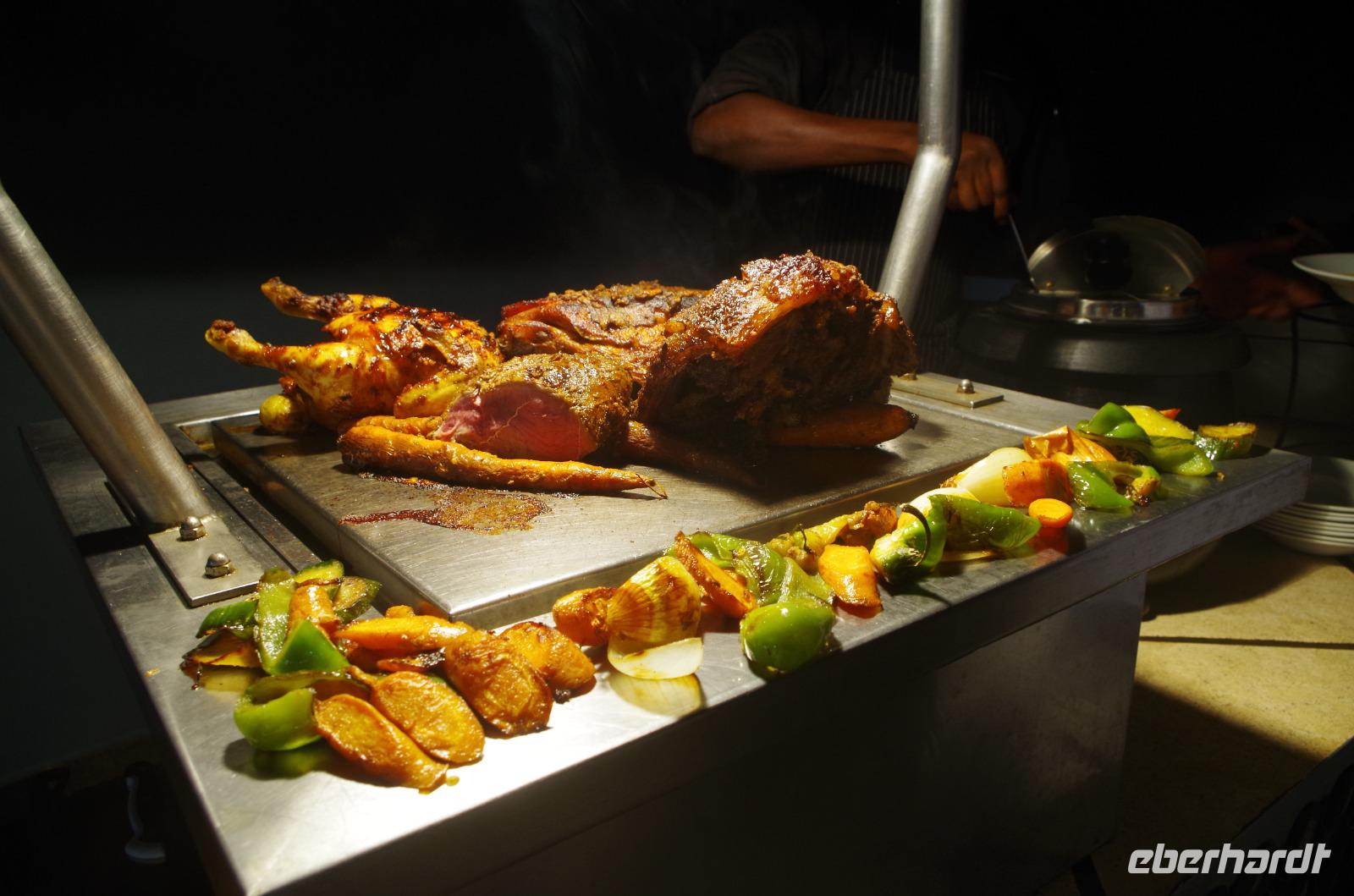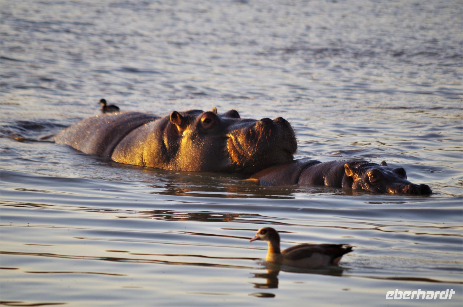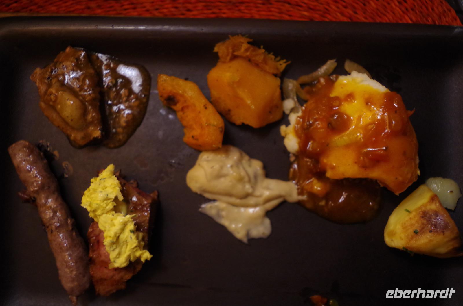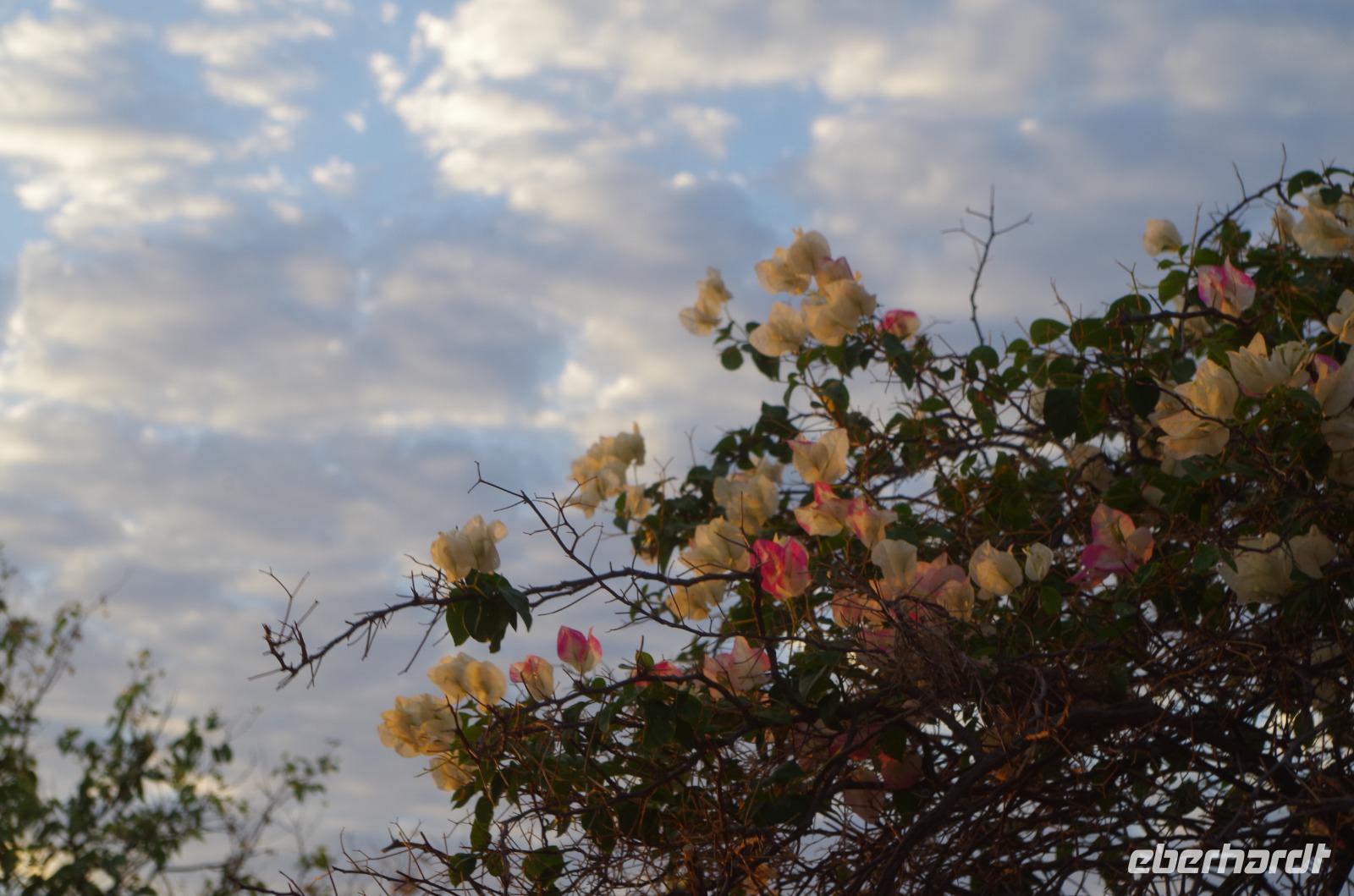 Die zahlreichen Mopane-Bäume auf dem Gelände geben der Lodge ihren Namen. Für diese Nacht wohnten wir in hübschen, komfortablen Lauben mit eigenem Garten, wo Gemüse und Kräuter für den Eigenverbrauch in der Küche angebaut werden. Zum Abendessen bedienten wir uns am großen Buffet, die Vor- und Nachspeise wurde serviert. - Tagesetappe im Truck: 472 Km
