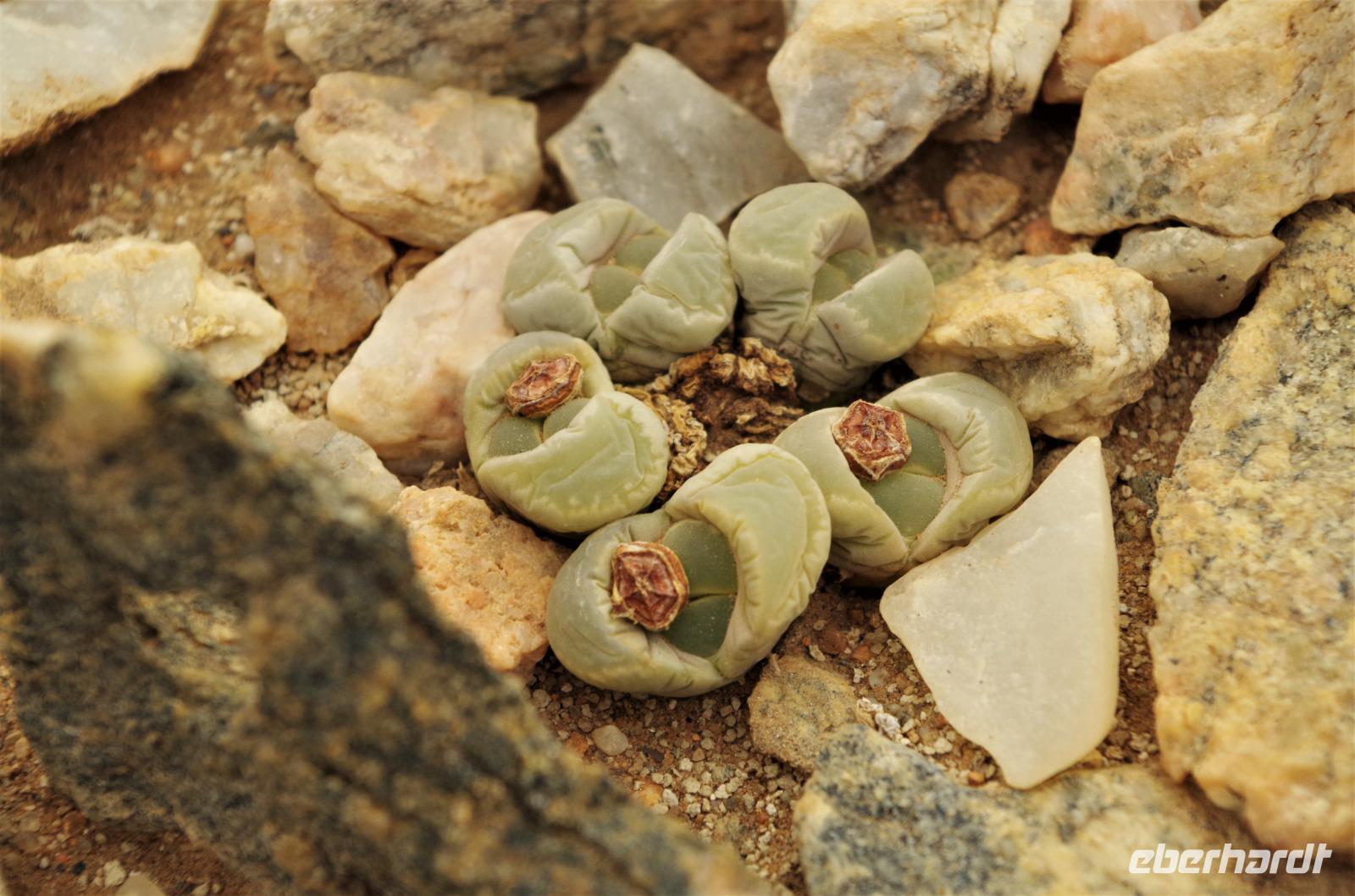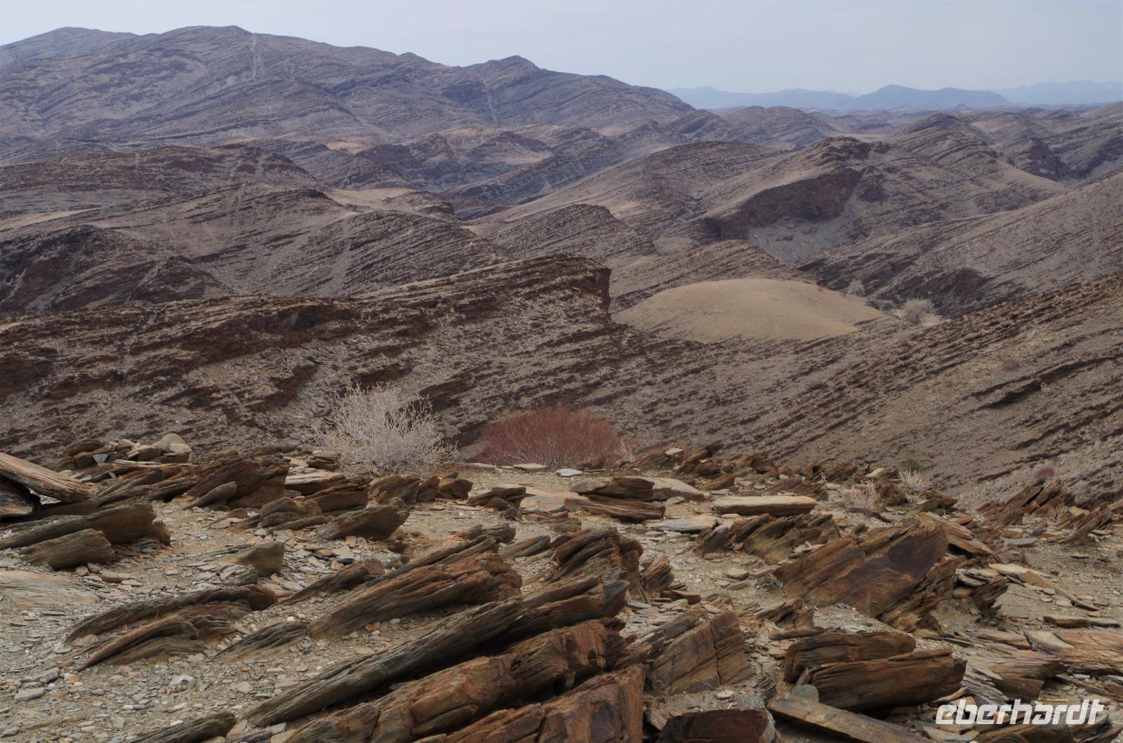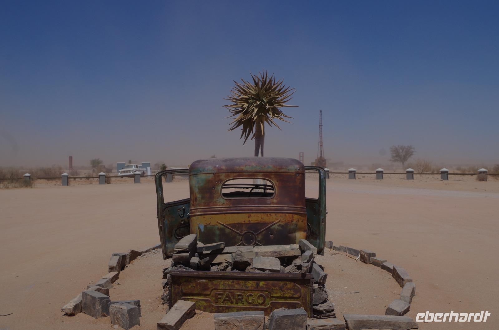 An der Strecke lag der fast verlassene Ort Seeheim, der früher Station der deutschen Schutztruppe war und durch den Bau der Eisenbahn ein wichtiger Verkehrsknotenpunkt war. Wir überquerten den trockenen Fisch-Fluss. Am Mittag erreichten wir Goageb und verbrachten unsere Pause bei Frikkie und Hilde auf der ihrer urigen Lodge Alte Kalköfen. Auf dem Farmgelände steht noch ein alter Brennofen, in dem früher der Kalk gebrannt wurde. Die Lodge befindet sich auf der ehemaligen Farm Simplon und ist mit viel Liebe zum Details ausgestattet. Natürlich zeigte uns Frikkie seine berühmten Lebenden Steine, die Lithops. Das Ehepaar besitzt die einzige offizielle Lizenz in Namibia, diese seltenen und geschützten Wüstenpflanzen zu sammeln. Danach ging es weiter zur Klein Aus Vista Lodge, unserer nächsten Unterkunft in Aus. Tagesetappe im Truck: 347 km