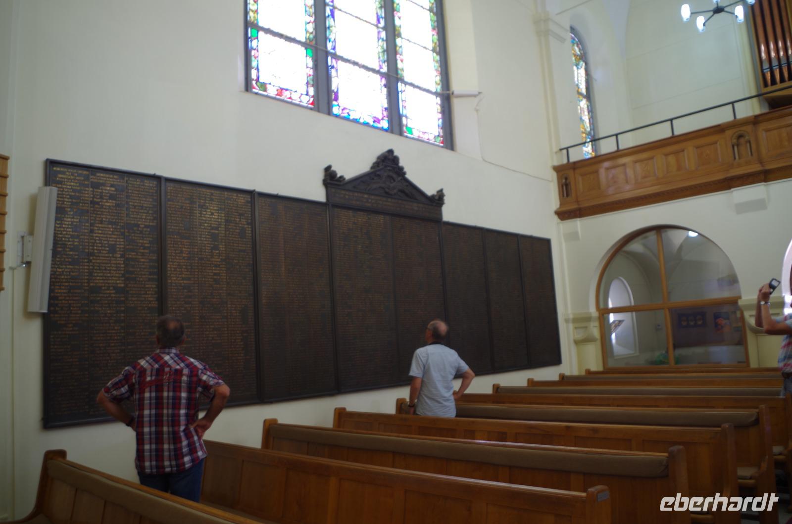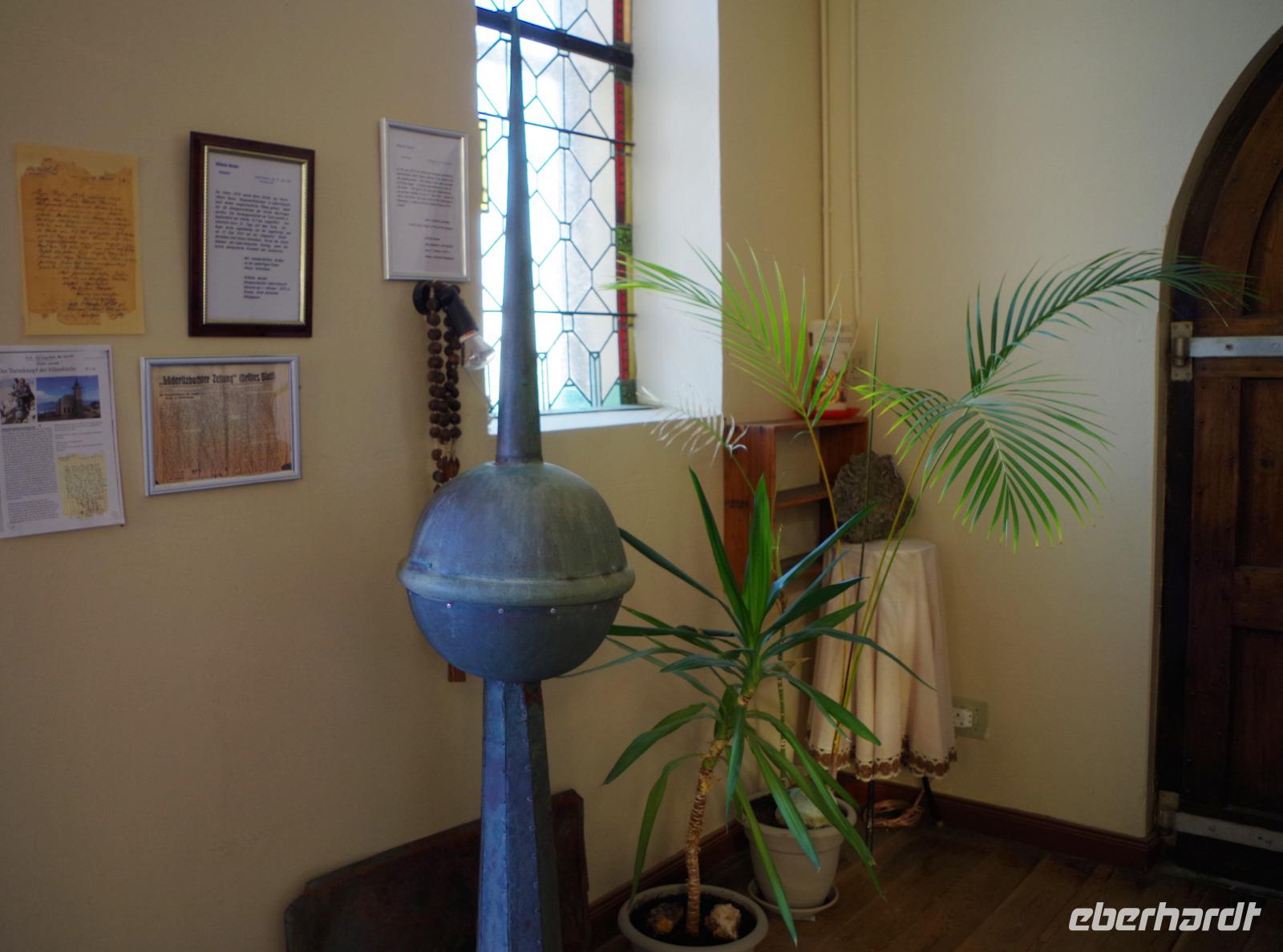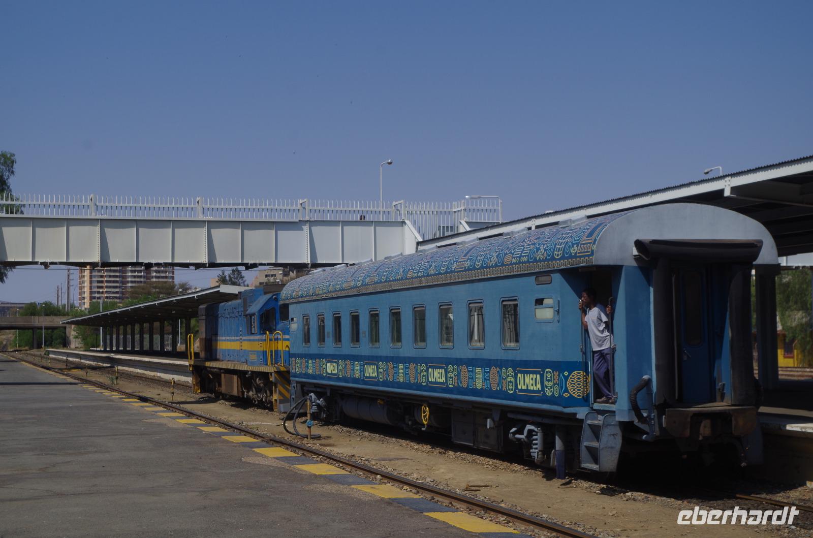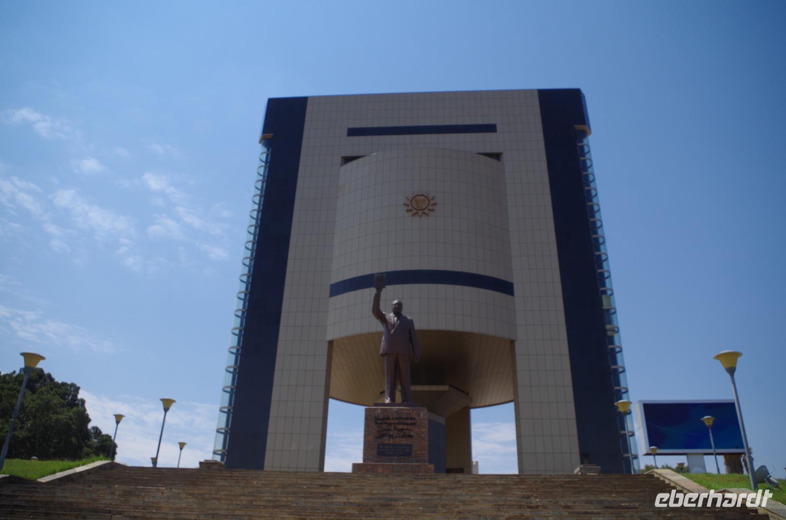 Der letzte Tag unserer Reise war angebrochen. Doch bevor wir von Namibia Abschied nahmen, wollten wir die Hauptstadt Windhoek auf einer Rundfahrt noch ein wenig näher kennenlernen. In den letzten Jahren ist Windhoek gewachsen und moderner geworden. Viele neue Gebäude entstanden und Straßen wurden umbenannt. Von der alten Zeit gibt es immer weniger zu sehen. Unser erstes Ziel ist der Alte Bahnhof. Das Gebäude, innen wie außen, ist sehr sehenswert und erinnert an die alte Zeit. Vor dem Bahnhof stehen alte Eisenbahnen und es fuhr sogar ein Passagierzug in den Bahnhof ein - eine Premiere für mich. Wir stoppen am Tintenpalast, Sitz des Unterhauses des Parlaments. Dieses Gebäude wurde vom Architekten Redecker entworfen und 1913 fertiggestellt. Der Name Tintenpalast ist eine kleine Anspielung auf die deutsche Bürokratie, den damals verbrauchten die vielen Schreiberlinge viel Tinte. Unterhalb befindet sich der schöne Parlamentsgarten, der leider geschlossen ist. Davor stehen Statuen von wichtigen Persönlichkeiten Namibias, in der Mitte Hosea Kutako, nach dem auch der Internationale Flughafen benannt ist. An der Christuskirche, einem Wahrzeichen der Stadt, steigen wir aus. Die Kirche ist offen, so dass wir sie auch von innen besichtigen können. Ein kleiner Spaziergang führt uns zur Erhebung gegenüber. Hier thront der futuristische Bau des neuen Unabhängigkeitsmuseums (gebaut von Nordkoreanern) mit der Statue von Sam Nujoma, dem 1. Präsidenten von Namibia davor. Im Volksmund heißt dieser Bau „Kaffeemaschine". Früher stand hier der Südwester Reiter, der vor einigen Jahren vor die Feste umgesetzt wurde. Von da mußte er auch verschwinden, denn dort steht jetzt das Genozid Denkmal. Ein sehr schönes Gebäude der alten Zeit steht daneben - die Alte Feste, in dessen Innenhof der Südwester abgelegt wurde. Leider ist die Alte Feste verschlossen und verfällt immer mehr. Der Südwester reitet nun nicht mehr, sondern wurde im Innenhof der Alten Feste abgelegt. Anschließend besuchen wir noch kurz das Craft Center, wo wir unser letztes namibisches Geld ausgeben. Dann fuhren wir zum Flughafen und verabschiedeten Gerhard, unseren umsichtigen und freundlichen Fahrer und unseren Reiseleiter Fritz. Tagesetappe im Truck: 101 km