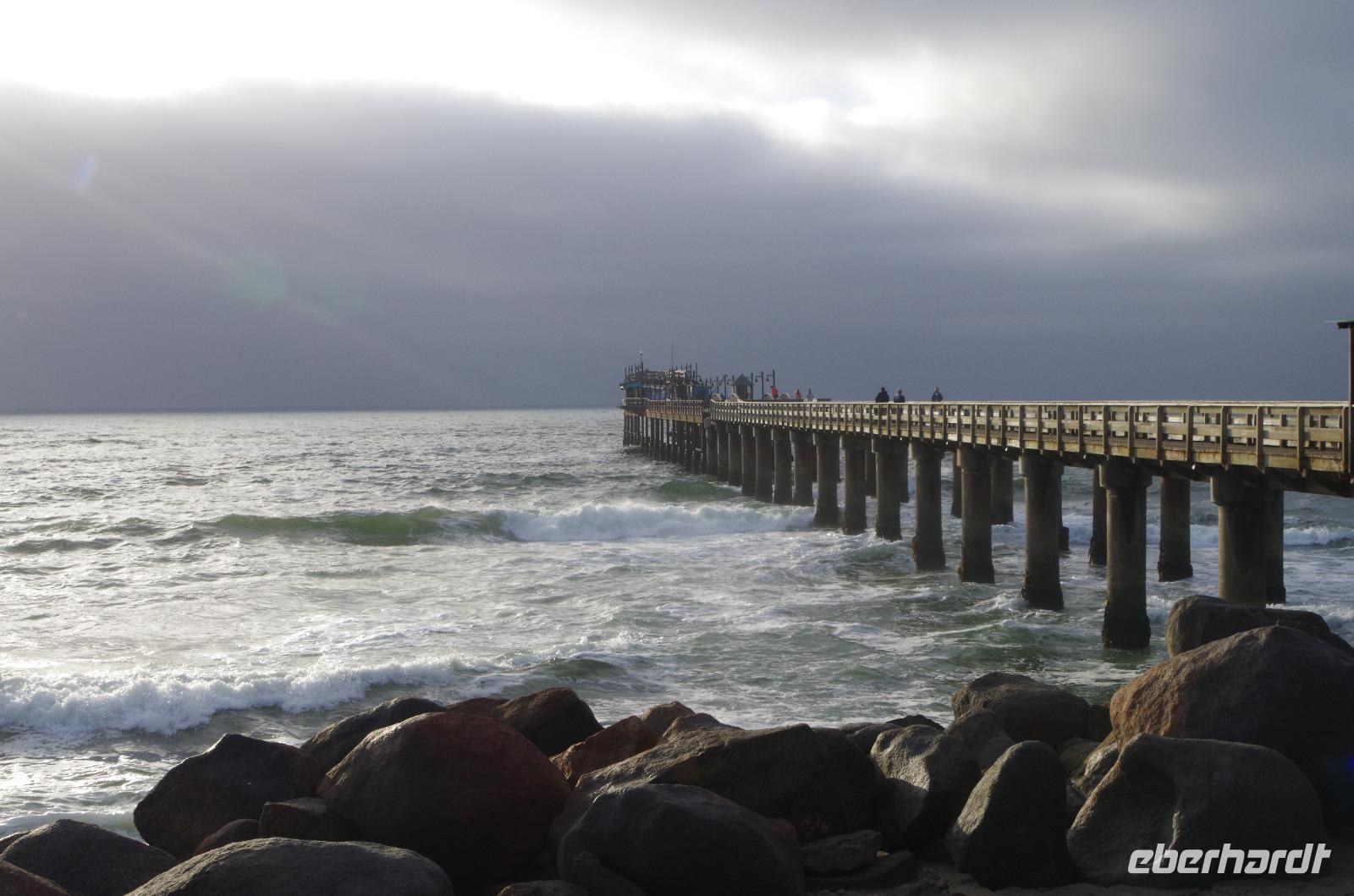 Am frühen Nachmittag waren wir in Swakopmund zurück. Am Nachmittag unternahmen Annett mit der Gruppe einen Bummel durch das Küstenstädtchen mit deutscher Vergangenheit: Prinzessin-Rupprecht-Haus, Alte Kaserne, Seebrücke, Woermann-Haus mit Damaraturm, Leuchtturm, Kaiserliches Bezirksgericht und das Hohenzollern-Haus. Der weitere Nachmittag konnte für eigene Entdeckungen genutzt werden. Am Abend hatten wir im neuen Altstadt Restaurant Plätze reserviert, wo wir lecker und reichlich zu Abend aßen. - Tagesetappe im Truck: 90 km