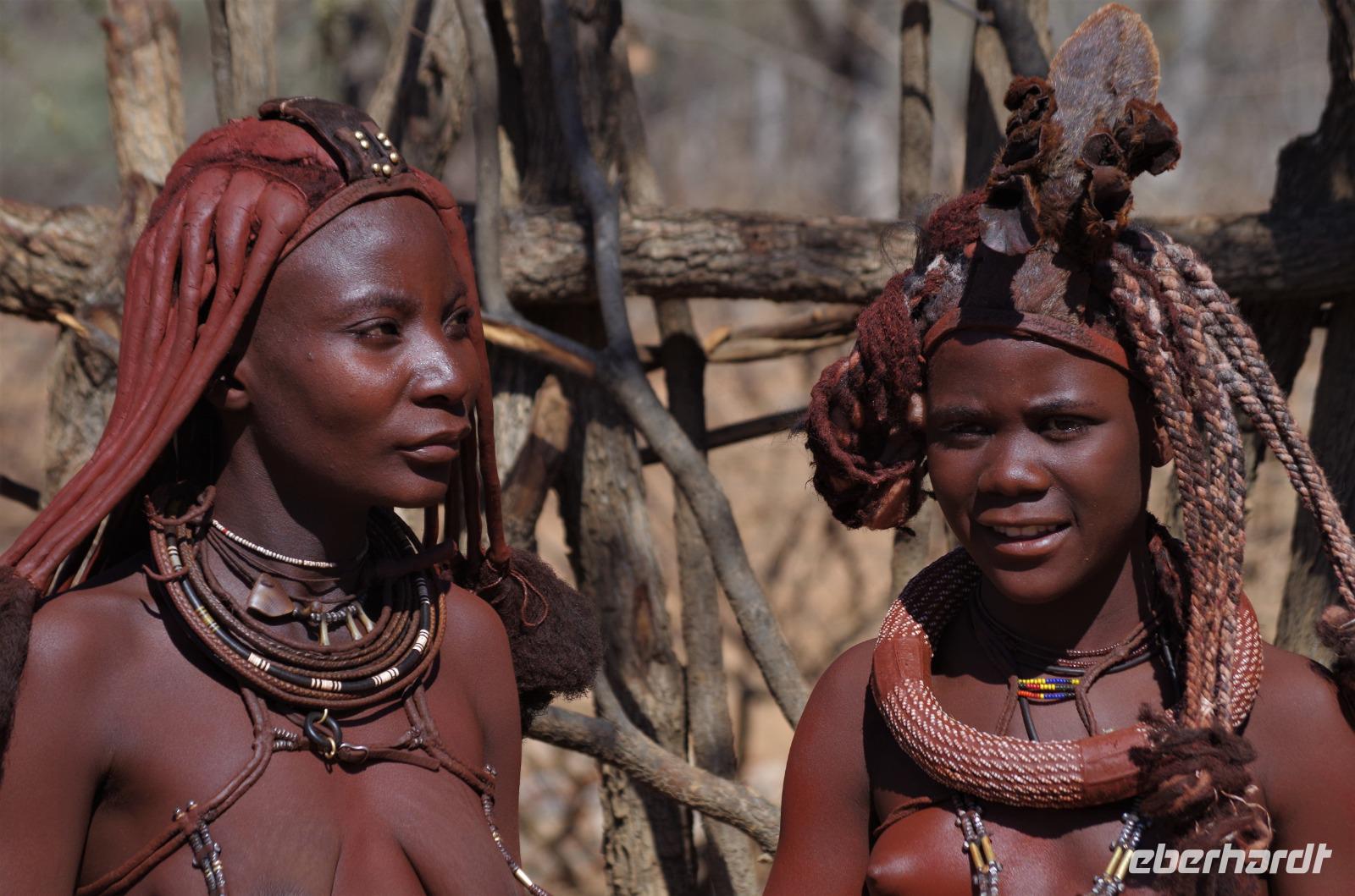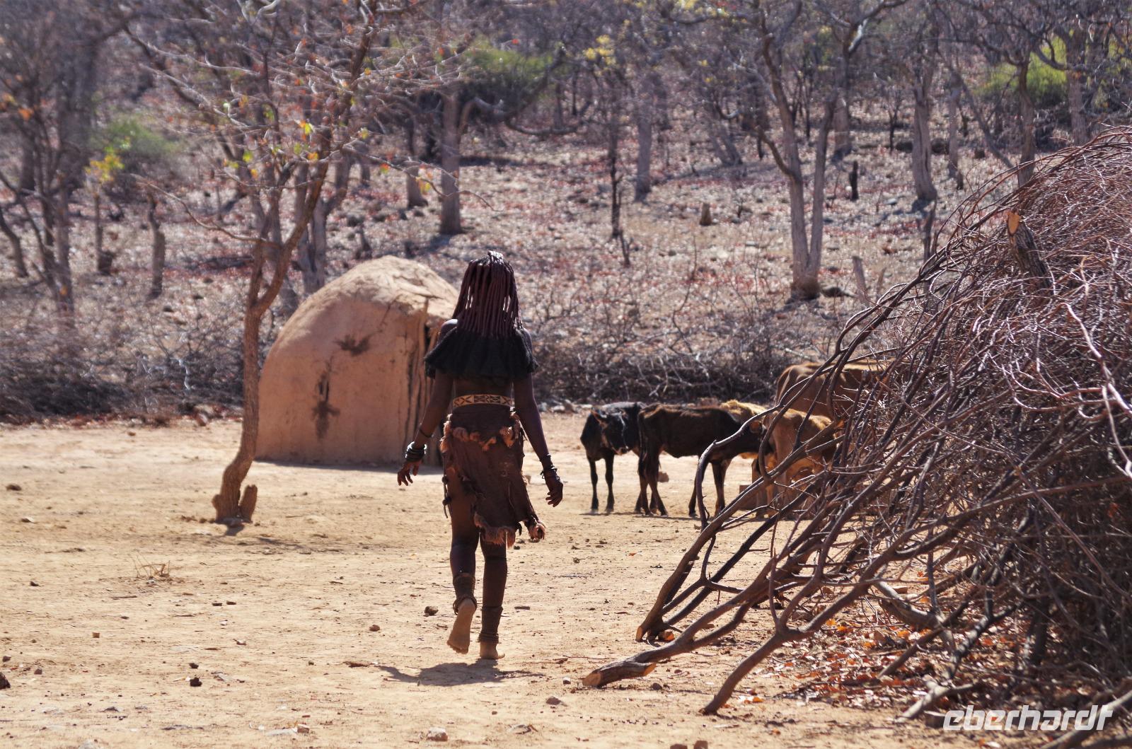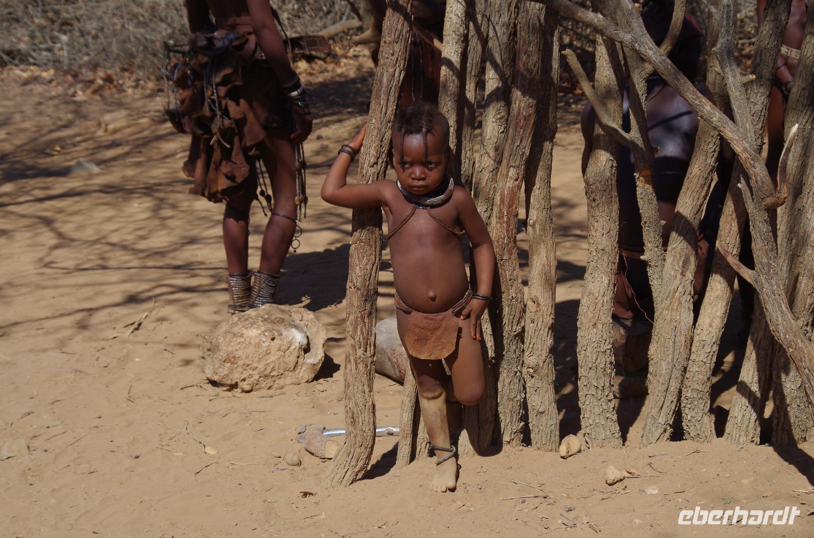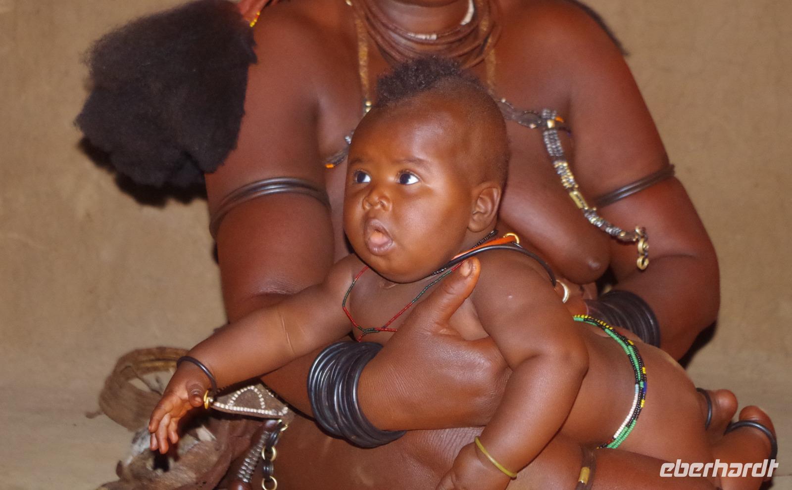 Alle haben gut geschlafen und freuen sich auf einen entspannten Ausflug ins Himabland. In dieser Region leben Himbas, Hereros sowie die aus Angola stammenden Zemba. Himbas und Hereros stammen aus der gleichen Volksgruppe. Bei der Wanderung der Bantuvölker trennten sich dann ihre Wege. Während die Himbas gen Nordwesten wanderten, sind die Hereros weiter nach Süden gegangen. Später sind wir am Dorf der Ovahimba angekommen. Es ist ein richtiges Dorf, aber auch ein sogenanntes lebendes Museum. Neugierig begrüßt man uns - wir sind willkommen! Chief des Dorfes ist Robert, der sich extra europäisch für uns schick gemacht hat. Er begrüßt uns im guten englisch. Sein Vater ist Herero und seine Mutter Himba, deshalb sind sie alle relativ groß gewachsen. Der Dorfälteste und viele Männer sind nicht anwesend, denn sie sind zu Trauerfeierlichkeiten in ein weit entferntes Dorf aufgebrochen oder hüten draußen die Rinder. Moro, Moro, periwi? Naua, okukepa! Das heißt soviel wie: Hallo, wie geht es Dir? Danke, gut. Robert erklärt uns wie die Himbas traditionell leben, so fast ohne die moderne Welt. Für uns fremd und unvorstellbar. Doch das Eis zwischen den Kulturen ist schnell gebrochen. Trotz Sprachdefiziten kommt man sich näher. Kein Wunder! Uns faszinieren sofort die künstlerischen Haartrachten der Frauen. Hübsche Gesichter lächeln uns entgegen. Ja, gutes Aussehen ist auch für die Himba-Frauen wichtig. So erkennt man beispielsweise an den Frisuren das Alter und den Familienstand und am Schmuck der Frauen, besonders an den Füßen, ob man bereits Kinder sie bereits zur Welt gebracht haben. Uns wird alles gezeigt und erklärt und wir dürfen auch fotografieren. Was mir sofort auffällt, sind die glücklichen Gesichter. Eine junge Mutter scherzt mit ihrem Baby - kleine Kinder spielen im Schatten der Lehmhütte und streiten sich natürlich auch mal ein wenig dabei..... Der heilige Kraal steht in der Mitte des Dorfes, kleine Kälber springen herum. Ein Rinderhirt bläst auf einem Kuduhorn eine Melodie. Fast scheint es, als ob er den Kälbchen ein Ständchen bringt. Uns wird erklärt, dass es wichtig ist, die Kälber an diese spezielle Melodie zu gewöhnen, um zurück zu finden, falls sie sich mal verlaufen. Man zeigt uns die Dorfküche und wie Maismehl mit einem Stein zermahlen wird. Das ist Aufgabe der Frauen, doch Robert kann das auch und schneller. Zwischen Kraal und der Chief-Hütte brennt das Heilige Feuer, diese imaginäre Linie darf nicht übertreten werden. Wir werden eingeladen, die Lehmhütte zu betreten und finden alle zusammen Platz. Die Frauen zeigen uns, wie sie sich pflegen, Wasser dürfen sie nicht benutzen. Typisch auch deren die rote Färbung der Haut, die durch das Einreiben mit einem eisenhaltigen Steinmehl und Butterfett (heute Vaseline) entsteht. Die Hauptfrau hat Klein-Himba-Elvis auf dem Schoss, der uns mit leuchtenden Augen anschaut. Annett darf das stählerne Röckchen anziehen, was einem Keuchheitsgürtel aus dem Mittelalter ähnelt. Zum Schluß Singen und Tanzen die Himbas für uns, eine ganz private Veranstaltung, nur für uns. Das scheint ihnen besonders großen Spaß zu machen und uns natürlich auch. Jedes Lied, jeder Tanz hat eine Bedeutung und ist einem besonderen Anlass gewidmet. Manchmal können Männer und Frauen zusammen tanzen und singen, manchmal ist es nur den Frauen vorbehalten. Nach fast 3 h verabschieden wir uns herzlich bei den freundlichen Himbas. Nach jedem Besuch bei den Himbas hoffe ich, dass dieses liebenswerte Urvolk noch lange so, in seinen Traditionen leben kann und ihnen durch die moderne Welt ihre Lebensgrundlage nicht entzogen wird. Danach fahren wir zu unserer schönen Lodge zurück und genießen den weiteren Nachmittag. Zum Abendessen wird heute gegrillt - hier nennt man es Braai. Das Wildfleisch ist saftig und die Bratwürste schmecken himmlich, auch der Sonnenuntergang ist wieder wunderschön! - Tagesetappe: 96 km