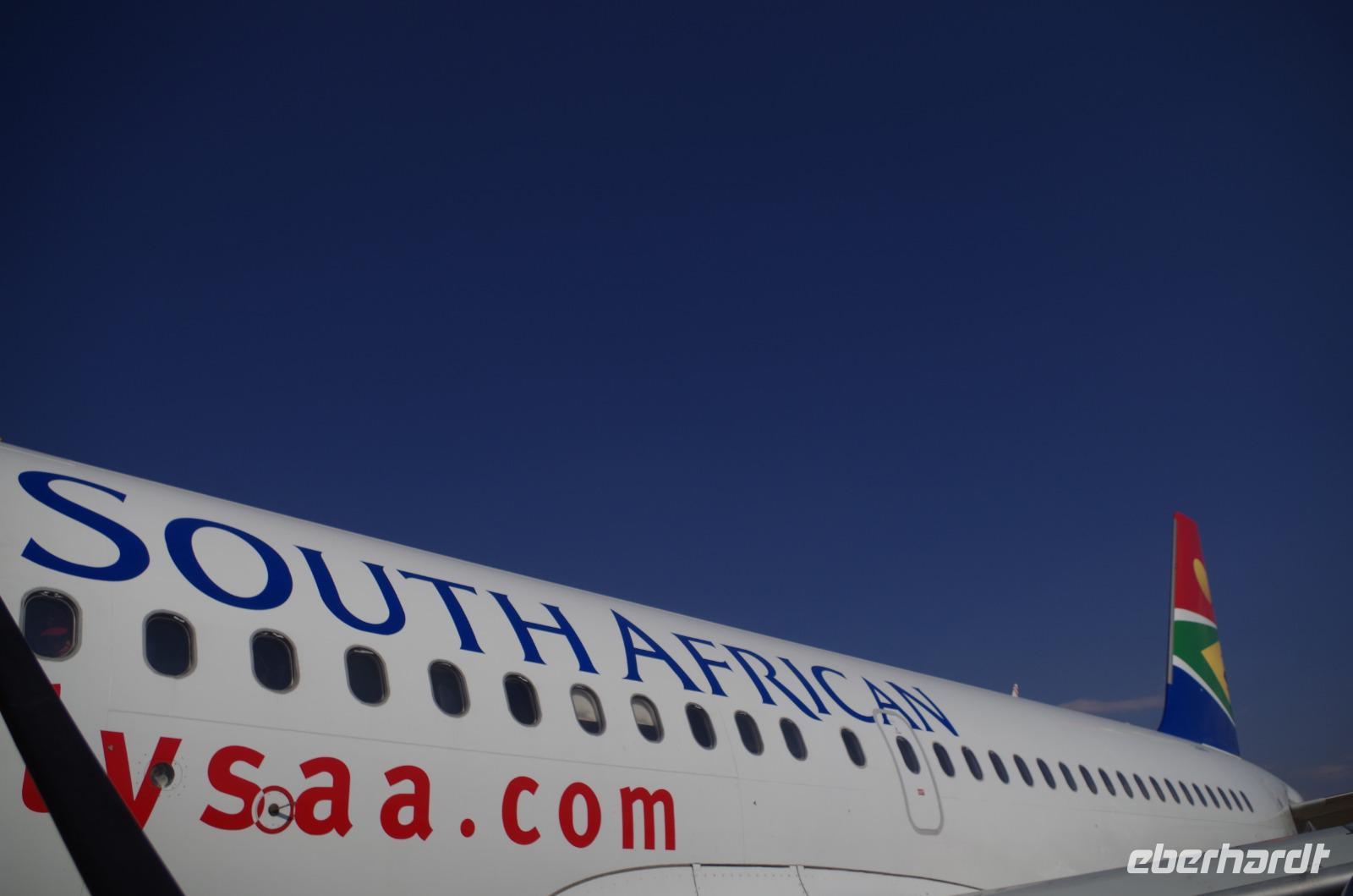 1 h verspätet konnten wir endlich nach Johannesburg starten. Dort angekommen, stürmten wir durch die Pass- und Sicherheitskontrolle zu unserem Flieger nach Deutschland. Geschafft und etwas außer Atem fielen wir in unsere Sitze - Boarding completed und ready for takeoff!
