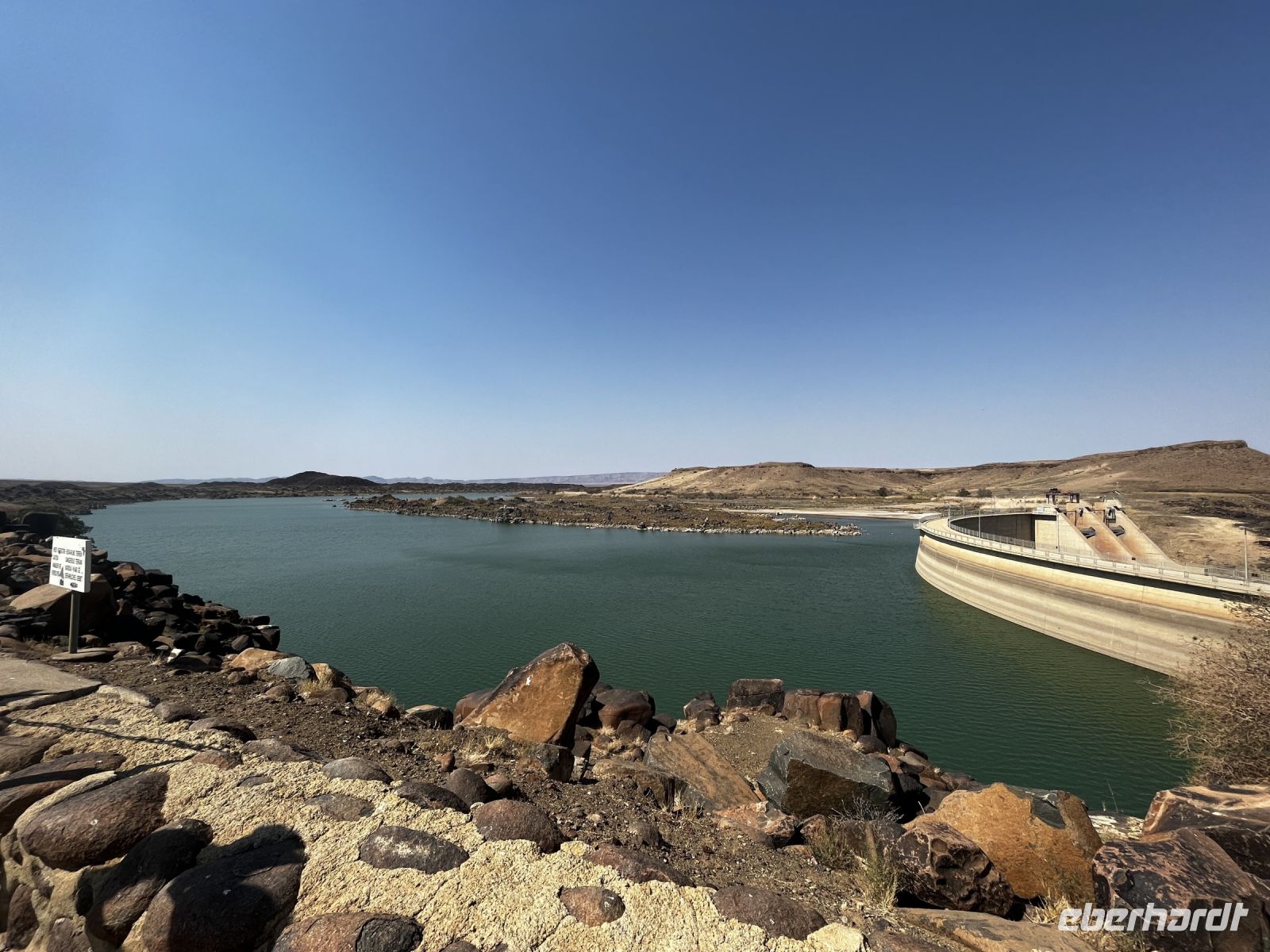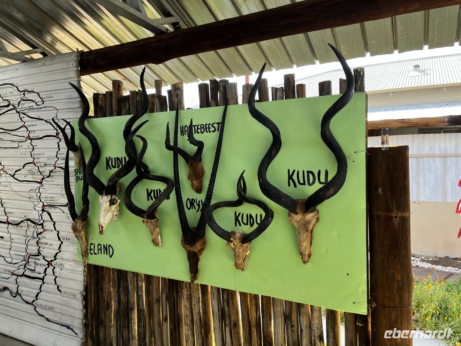 Heute hieß es wieder zeitig aufstehen, da wir eine lange Strecke vor uns hatten. Nach dem Frühstück holte uns Joe ab und es ging Richtung Süden. Etwas mehr als 700 km sollten wir heute absolvieren. Der erste Stopp erfolgte für Snacks und Toilette in Reoboth bevor es anschließen nach Mariental ging. Die Landschaft veränderte sich stetig von bergigen Panoramen bis hin zur kargen Wüstenebene. Nach Mariental folgen wir schnurgeraden Straßen bis hin nach Keetmanshop. Hier in der Nähe standen unsere ersten Highlights an. Der Köcherbaumwald und der Riesenspielplatz. Dazu mussten wir aber zunächst die Teerstraße verlassen und das erste Mal ging es auf die Schotterpiste. Im Köcherbaumwald trafen wir auch die ersten tierischen Bewohner aus der Nähe an. Viele der putzigen Dassis oder auch Klippschliefer genannt und auch eine Agame. Der Riesenspielplatz beeindruckte alle durch seine Ausmaße und die besonderen Formen. Joe spielte uns sogar ein kleines Ständchen auf einen der Felsen aus Dolorit Gestein. Danach ging es weiter Richtung Süden, denn wir wollten noch vor Einbruch der Dunkelheit unsere erste Lodge erreichen. Vorbei am Naute Damm, welchen wir später noch besuchen sollten, ging es zur Canyon Village Lodge. Kurz vor dem Eintreffen, empfingen uns sogar ein paar Oryx Antilopen, dass Nationaltier Namibias. Beim Abendessen ließen wir den Abend gemütlich ausklingen.