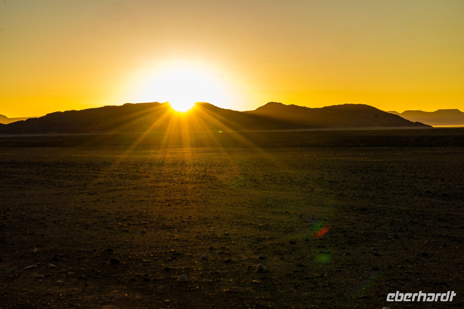 Der Morgen begann für uns wie üblich mit dem Frühstück. Dann hieß es Abschied nehmen von der Lodge. Doch bevor wir die Region um Aus verließen, starteten wir einen letzten Versuch bei den Wildpferden am Garub Wasserloch. Und dieser Versuch war es mehr als wert, denn über 70 Tiere (fast die gesamte Population) war am Wasserloch und Parkplatz verteilt. Wir konnten die Tiere also Hautnah bei ihren morgendlichen Aktivitäten beobachten. Was für ein Spektakel! Einige Tiere ließen sich sogar streicheln. Da fiel es schwer sich zu lösen, aber wir mussten weiter, denn wir hatten noch ein gutes Stück bis Sessriem bzw. Richtung Sossusvlei vor uns. Der Weg verlief hauptsächlich über Schotterpisten und wir wurden gut durchgeschüttelt. Dafür war die Landschaft umso abwechslungsreicher zwischen Gebirge und Wüstendünen.