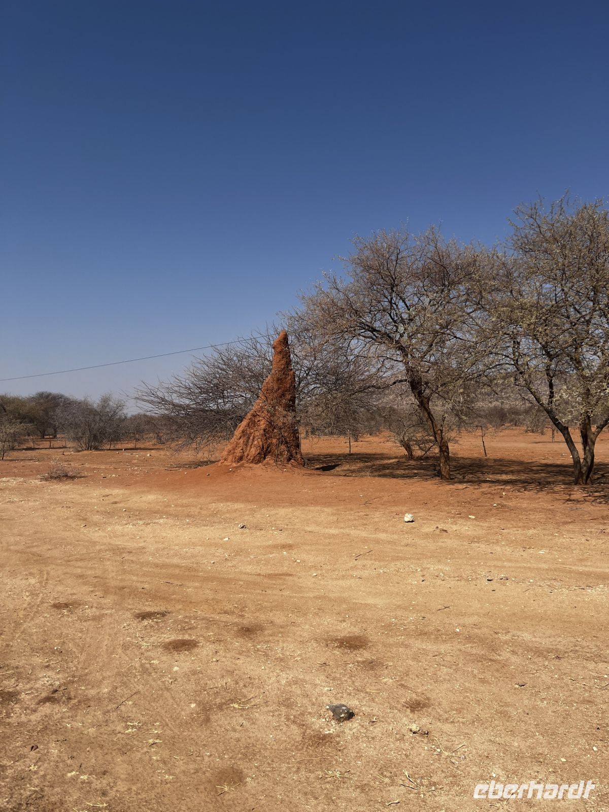 Mit einem wunderbaren Sonnenaufgang und Blick auf dem Vingerklipp begann für uns der Tag. Durch die Lage der Lodge auf der Kuppe, hatte man einen traumhaften Blick auf die umliegende Landschaft, welche wie aus einem Westernfilm wirkte. Leider mussten wir weiter fahren, denn wir wollten noch etwas weiter nördlich kommen. Nach dem Frühstück, Koffer laden und losfahren, machten wir noch einen kurzen Fotostopp an einem der zahlreichen Termitenhügel hier in der Region. Diese können riesige Ausmaße annehmen und kommen je nach Art des Bodens in den unterschiedlichen Farben vor. Heute hieß es: Strecke machen und das war durch die geteerte Straße auch gut möglich. Entlang des Etosha Nationalparks überquerten wir die „rote Linie“. Ein Resultat um die Maul- und Klauenseuche einzudämmen. Danach begann wie Joe so schön sagte, dass Afrika für Fortgeschrittene. Und dies war auch tatsächlich der Fall, denn hier war alles etwas anders. Besonders in Opuwo lernten wir eine andere Seite Namibias kennen. Am Nachmittag erreichten wir die Lodge und konnten die Annehmlichkeiten wie den Infinitypool noch ausgiebig vor dem Abendessen nutzen zum entspannen.