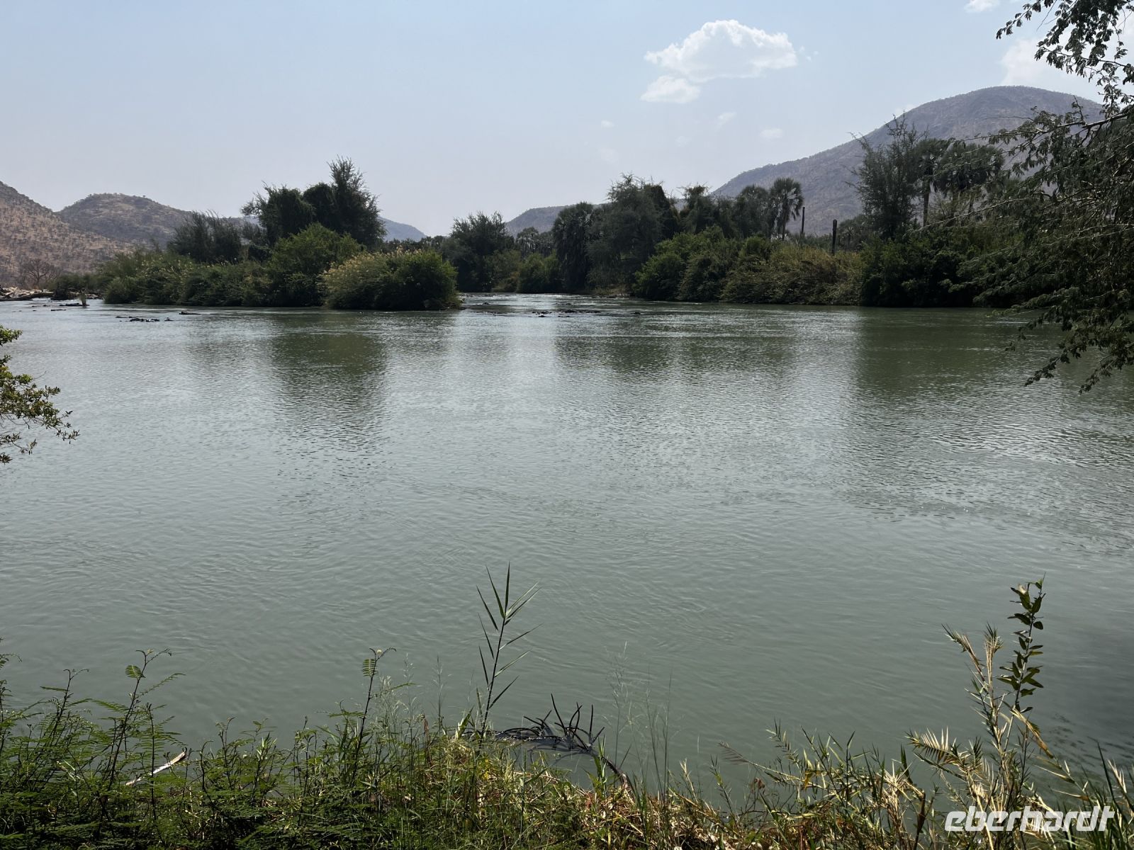 Der Tag heute sollte uns eine andere Seite Afrikas bzw. Namibias zeigen. Da wir einiges an Fahrtstrecke vor uns hatten, starteten wir zeitig. Die Route führte uns über eine wellige Schotterstraße, wodurch wir gut durchgerüttelt wurden und Joe sein ganzes fahrerisches Können zeigen musste. Auch zeigte sich uns nach und nach, je weiter wir von Opuwo entfernt waren das ursprüngliche Leben der Himbas hier um Kaokoland. Viele Herden von Ziegen und Rindern mit ihren Hirten kreuzten die Straße. Der wahre Reichtum der Himbas. Mehr und mehr bekamen wir auch die typischen Himbafrauen mit ihren ausfälligen Aussehen traten am Wegesrand auf. Als wir in Epupa ankamen, erhaschten wir einen ersten Blick auf die Epupa Wasserfälle. Im Dorf sammelten wir unseren Guide, einen Himba Chief Namens Raider auf und fuhren zu dem Dorf welches wir besuchen wollten. Die Frauen des Dorfes begrüßten uns herzlich und wir erhielten erste Einblicke. Raider erklärte uns ausführlich die vielen Gebäude, Bräuche und vor allem das Leben hier im Dorf. Auch durften wir einmal in die Hütte des Häuplings schauen, wo uns die wenigen Besitztümer gezeigt wurden. Viele weiteren Frauen strömten herbei und es wurde ein kleiner Markt aufgebaut wurde, wo jeder handwerkliche Erzeugnisse erworben werden konnten. Natürlich wie hier üblich mit handeln. Die Zeit verging schnell und schon war es Zeit aufzubrechen. Wir überreichten noch die mitgebrachten Nahrungsmittel als Geschenke, wofür uns die Frauen einen traditionellen Tanz vorführten. Eine wirklich beeindruckende Erfahrung für uns alle im Himba Dorf. Zurück fuhren wir zum Epupa Dorf, wo wir Raider absetzten. Dieser war interessanterweise noch nie mit einem Bus gefahren und erlebte die Fahrt wie ein freudiges aber doch überraschtes Kind. Natürlich durfte nicht fehlen die tosenden Wasserfälle aus nächster Nähe zu bestaunen und fotografieren. Ein wahres Paradies inmitten der doch kargen Landschaft und ganz anders als alles was wir bisher erlebt hatten auf dieser Reise. Nach dem Mittagspicknick direkt an Fluss, fuhren wir die holprige Straße zurück nach Opuwo, wo wir uns schon auf das Abendessen und einen gemütlichen Ausklang freuten.