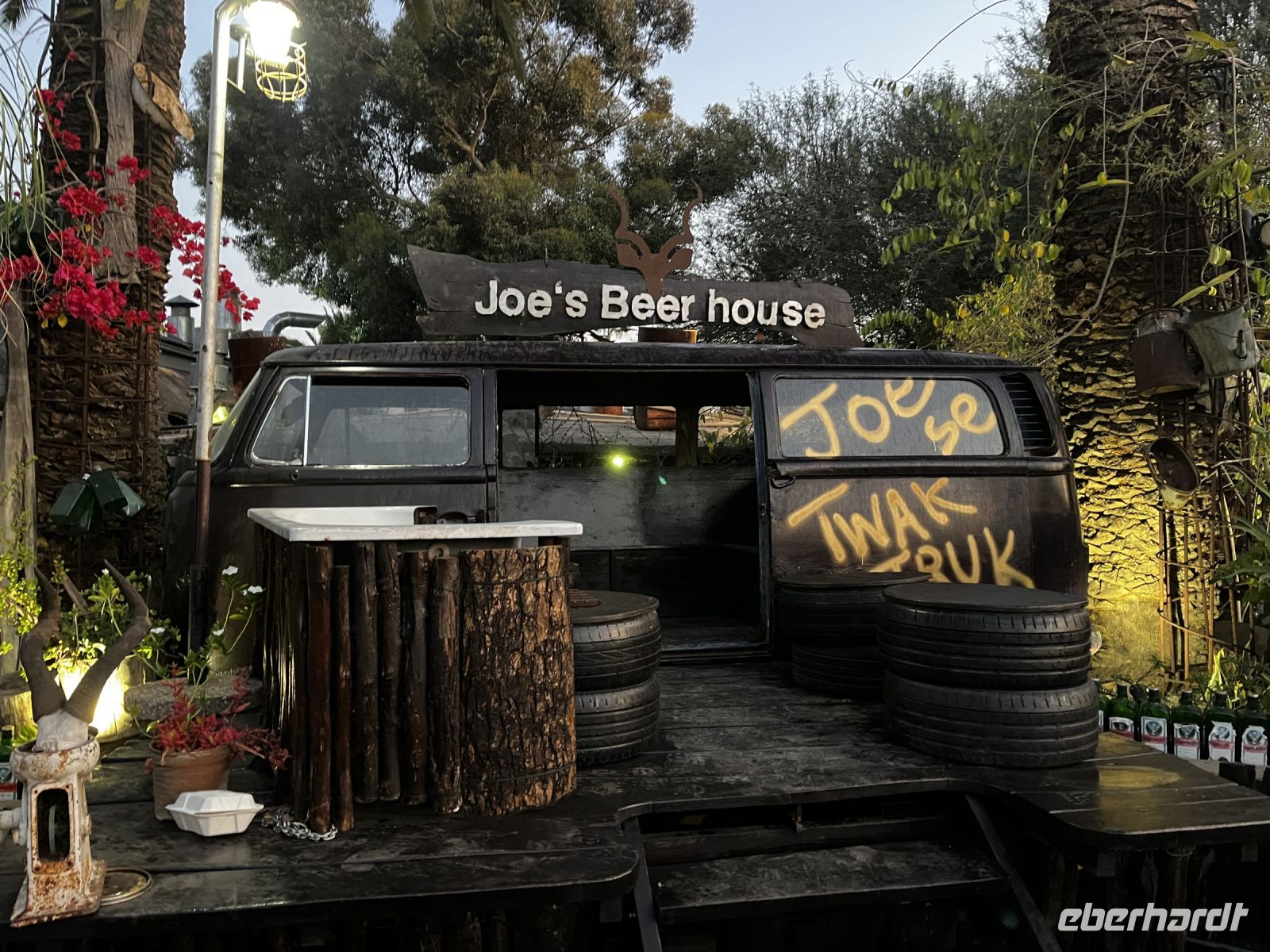 Leider mussten wir nun auch von der Mount Etjo Abschied nehmen. Am späten Vormittag ging es zurück nach Windhoek. Einen Stopp legten wir noch in Okahandje ein, um den bekannten Holzmarkt zu besuchen. Auf der Weiterfahrt nach Windhoek konnten wir noch das Erlebnis Wiegebrücke miterleben, welches verpflichtend für größere Fahrzeuge ist. Laut Joe hatten wir die letzten Tage gut gegessen, denn das Gewicht war höher als beim Start. In Windhoek besuchten wir noch den Craft Markt für letzte Mitbringsel, bevor wir zum Thule Hotel fuhren. Der restliche Nachmittag war ganz der Erholung und für den Pool gewidmet. Das letzte Abendessen in Namibia bot nochmal ein besonderes Lokal - Joes Bierhaus (nicht unser Joe war der Gründer bzw. Besitzer). Die Einrichtung war schon besonders, aber dennoch beeindruckend. Das Essen ebenfalls sehr gut und alle hatten die Möglichkeit noch ein letztes Mal das lokale Wild zu essen. Zum Abschluss des Abends gab es noch eine Runde Jägermeister, gesponsert durch unser liebes Honeymooner Paar. Vielen Dank nochmal dafür.