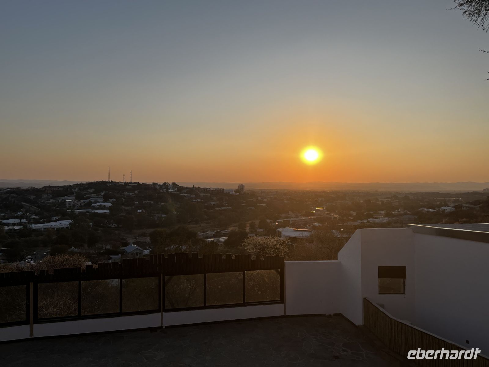 Nach einer kurzen Nacht, ging es für uns früh Morgens zum Flughafen. Da wir am Vortag teilweise das Gepäck aufgegeben hatten und wenig los war, kamen wir schnell durch alle Kontrollen und zum Gate. Leider verzögerte sich unser Abflug noch einmal etwas, wegen längeren Vorbereitungen. Nachdem die Maschine gestartet war, verlief der Flug fast ruhig und wir landeten am frühen Abend in Windhoek. Einreise und Gepäck holen, ging zügig. Unseren Guide Joe für die die nächsten Wochen trafen wir am Ausgang des Flughafens. Schnell noch Geld getauscht und einige kleine Besorgungen, dann konnten wir uns auf den Weg nach Windhoek machen, wo wir die erste Nacht verbrachten. Anders als ursprünglich geplant, aber die Strecke bis zur ersten Lodge, wäre nicht schaffbar gewesen. So vielen alle nach einem kleinen Abendessen, müde ins Bett.