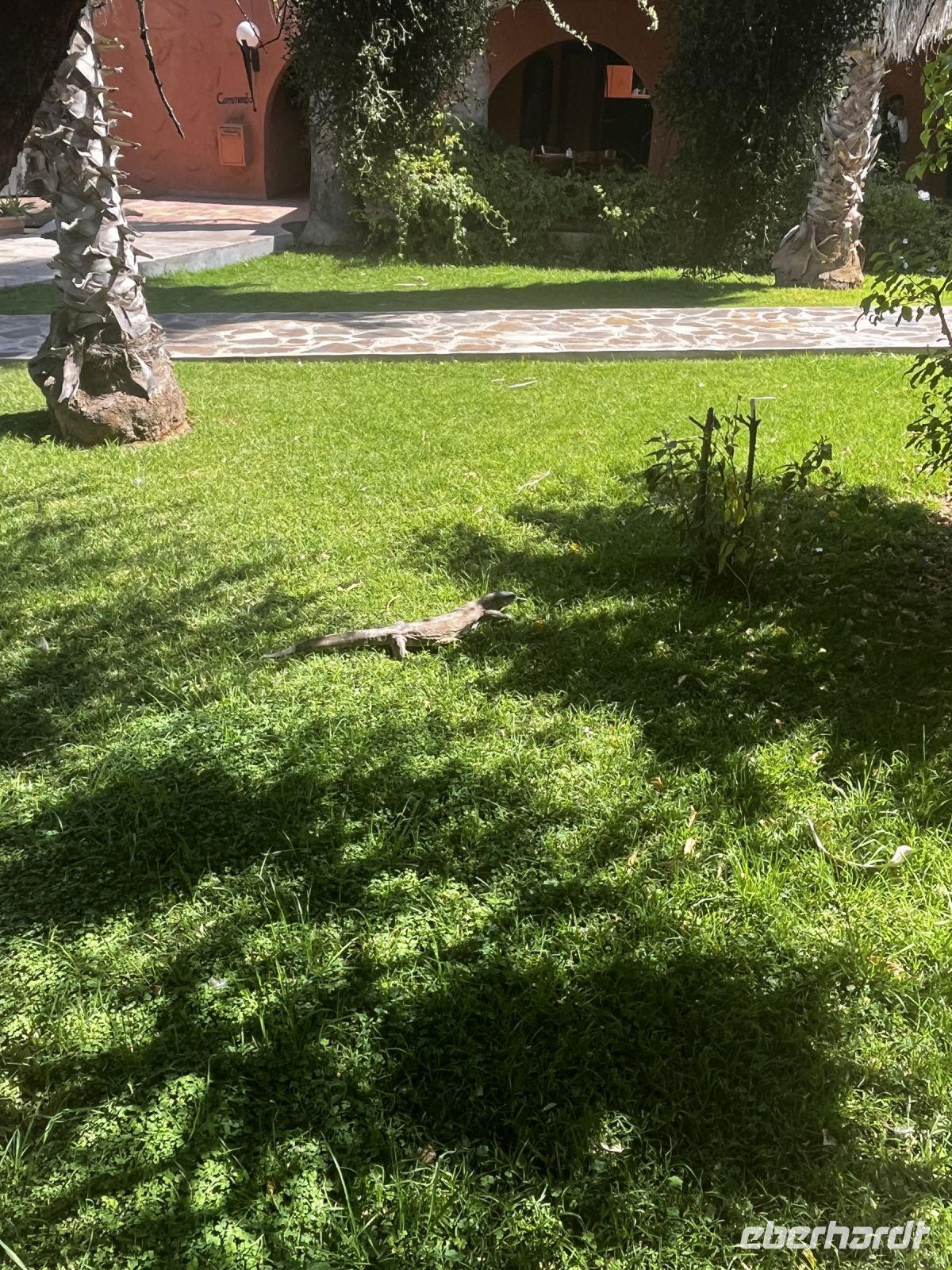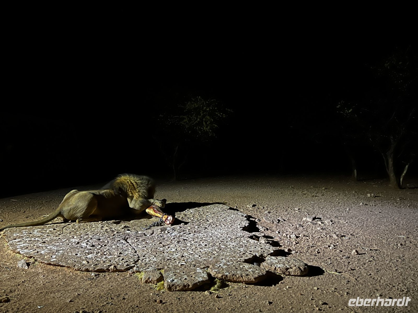Ein wenig konnten wir heute ausschlafen und das vorzügliche Frühstück in Ruhe genießen. Bevor wir Richtung Mount Etjo starteten, konnten wir auf dem Lodgegelände noch ein paar Zebramangusten und Dik-Diks, die Kleinsten Antilopen Afrikas beobachten. Heute stand eine ruhige Fahrt an, denn die Straßen waren fast durchgehend geteert. Wenige Kilometer nach der Lodge kreuzte ein Warzenschwein-Familie die Straße und wir konnten diese gut fotografieren. Erster Stopp des Tages, war Tsumeb. Die einst florierende Minenstadt, steht heute als die Gartenstadt Namibias noch gut da. Wer wollte konnte das hießige kleine Museum mit Exponaten aus der bewegten Geschichte Namibias und der Stadt besuchen oder gemütlich ein Getränk zu sich nehmen. Weiter ging die Fahrt Richtung Mount Etjo. Die Landschaft veränderte sich stetig und wir kamen wieder an großen Farmen vorbei. Kurz einen Stopp im Otavi zum tanken und für Snacks, dann waren wir auch schon in Otjiwarongo. Hier schlug Joe, den Besuch einer Krokodilfarm zum Mittag vor. Neben kuriosen Gerichten wie Krokodil-Wraps, konnte man eine kleine Führung über die Farm machen. Neben einigen Informationen zu den Tieren und die Haltung, konnte man am Ende noch ein kleines Krokodil halten. Gut gesättigt fuhren wir weiter, denn es war nicht mehr weit bis zur Lodge am Mount Etjo. Eine Stunde und eine kurze gute Schotterstraße später, standen wir vor der Lodge. Diese ist neben der Anlage für die Touristen auch ein Reservat für Wildtiere. Und diese bekamen wir auch direkt zu sehen. Die Flamingos im Garten interessierten zunächst nicht, denn man hörte schon von weitem ein lautes schnauben. Flusspferde hielten sich im angestauten Fluss auf. Auch wenn diese hier nicht heimisch waren, so freuten wir uns sehr über deren Anblick. Erholt und frisch gemacht, genossen wir das Abendessen, aber schauten diesmal auch ein wenig auf die Zeit, denn es stand noch etwas auf dem Programm. Eine Löwenfütterung wurde uns noch geboten. Kurz mit den Geländewagen gefahren und dann wurden wir in ein Bunkerartiges Gebäude geführt. Denn hier müssen die Menschen vor den Löwen weggesperrt werden. Alle hielten den Atem an und fotografierten möglichst leise, als die mächtigen Tiere sich über das Fleisch her machten und manchmal an der Vergitterung vorbei liefen. Die Hierarchie unter den Tieren konnte man gut beobachten. Etwa eine Stunde konnten wir die Löwen beim fressen beobachten, bevor wir zur Lodge zurück fuhren und nach einem kleinen Absacker müde ins Bett fielen.