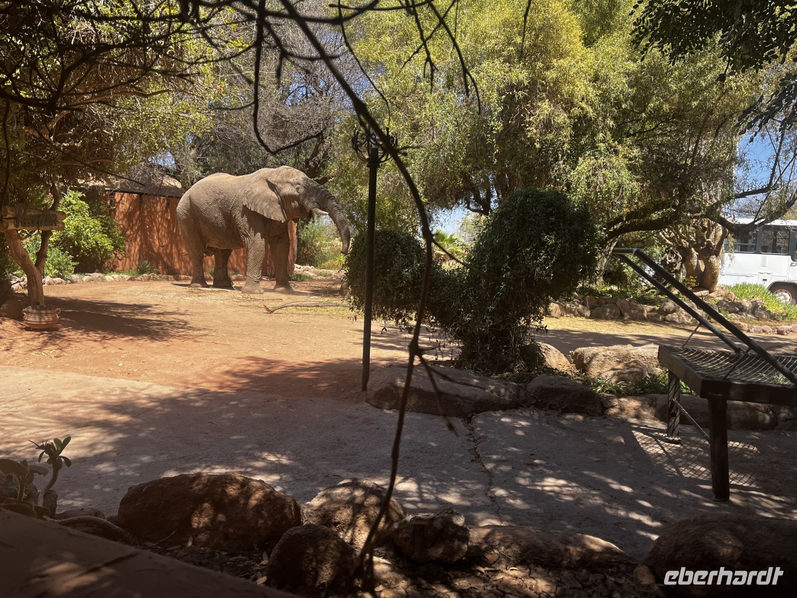 Nach schon sehr vielen tollen Erlebnissen, war heute einmal ein ruhiger Tag angesagt. Doch auch auf den Lodgegelände gab es viele Möglichkeiten und einiges zu sehen. Die meiste Zeit wurde damit verbracht, die vielen Tiere zu beobachten. Das hatte schon eine sehr meditative Wirkung. Doch auch etwas Aktion war angesagt, als ein Elefant unseren Bus auf dem Parkplatz besuchte und die Bäume im Vorauf genüsslich verspeiste. So konnten wir einen Elefantenbullen aber aus wenigen Metern Entfernung beobachten.