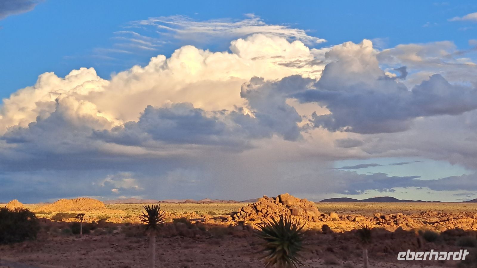 Graue Wolken begleiten uns und wir sehen den Regen in der Ferne aus den Wolken fallen. Ein seltenes und besonderes Erlebnis hier im Süden Namibias. In Rosh Pinah, einer kleinen Bergbaustadt, legen wir einen kurzen Stopp ein, bevor wir weiter Richtung Norden fahren. Gegen Mittag erreichen wir unser heutiges Ziel: Klein-Aus Vista, eine gemütliche Lodge mit herrlichem Blick auf die umliegendenden Granithügel. Und auch hier zieht am Nachmittag der Regen auf – eine seltene, fast magische Erscheinung in dieser trockenen Region, die oft nicht mehr als 90 mm Regen im ganzen Jahr bekommt. Der Duft von feuchter Erde liegt in der Luft, und wir genießen die entspannte Stimmung. Morgen geht es nach Lüderitz, ans Meer!