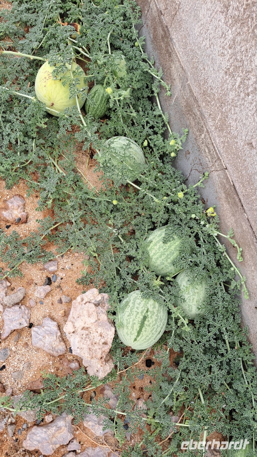 Zum Mittagessen kehren wir an der Waterfront ein, genießen frischen Fisch und langsam kommt etwas die Sonne raus. Auf dem Rückweg zur Lodge halten wir noch einmal bei den Wüstenpferden. Jaco lädt uns auf ein Getränk ein – eine nette Überraschung! Dabei probieren wir die wilde Tsamma-Melone – unglaublich bitter!