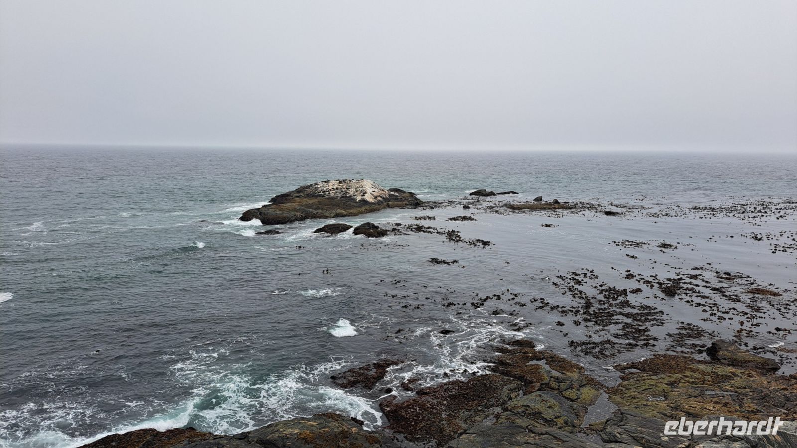 Danach geht es weiter zur Großen Bucht von Lüderitz. Trotz des kühlen, windigen Wetters entdecken wir Delfine, die verspielt durch die Wellen springen, und auf Halifax Island tummeln sich Pinguine. Die raue Küstenlandschaft wirkt heute besonders dramatisch. Beim Muscheln sammeln genießen wir die frische Meeresbrise, bevor wir zum Dias Point weiterfahren. Dort erwarten uns gegenüber auf den Felsen eine Gruppe Seelöwen, die unbeeindruckt von der kühlen Witterung in der Brandung ruhen.