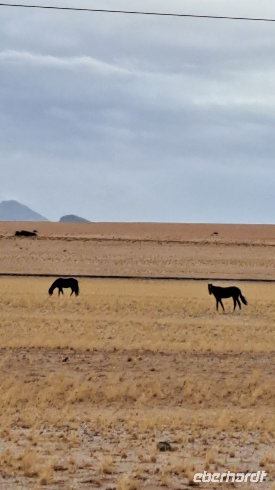 Schon auf dem Weg zur Geisterstadt entdecken wir die ersten wilden Wüstenpferde am Straßenrand!