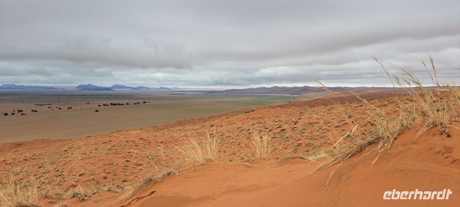 Die Nacht über hat es wieder geregnet – ein fast unwirkliches Erlebnis in dieser sonst so trockenen Region. Auch am Morgen prasselt noch Regen auf die Dächer der Lodge, und die Luft ist angenehm frisch. Als wir Richtung Kolmannskuppe aufbrechen, klart es langsam auf, doch der Himmel bleibt den ganzen Tag über grau – ein wirklich ungewöhnlicher Anblick für Namibia.