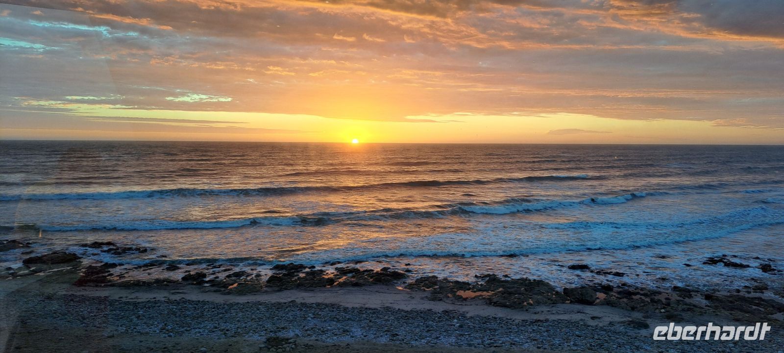 Nach dieser faszinierenden Zeitreise geht es weiter Richtung Walvis Bay, wo uns ein völlig neues Bild erwartet: Der erste Blick auf den Atlantik! Ein seltsamer Kontrast – nach Tagen in der Wüste breitet sich vor uns das weite Meer aus. Von hier aus ist es nur noch eine kurze Fahrt nach Swakopmund, wo wir am Nachmittag eintreffen. Die kühle Luft, die deutsche Kolonialarchitektur und die Wellen, die gegen die Küste schlagen, machen sofort klar: Wir sind in einer anderen Welt angekommen.
