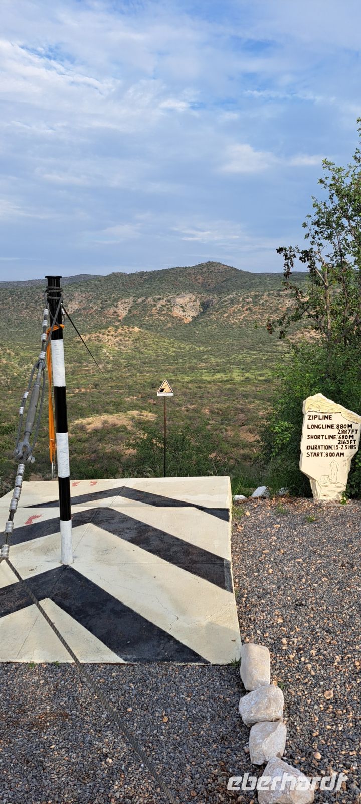 Einige aus der Gruppe inklusive unseres Guides Jaco nutzen noch die Gelegenheit für ein kleines Adrenalin-Abenteuer: eine Zipline-Fahrt mit atemberaubender Aussicht über die Ugab-Terrassen. Dann heißt es wieder: Auf in die Wildnis!