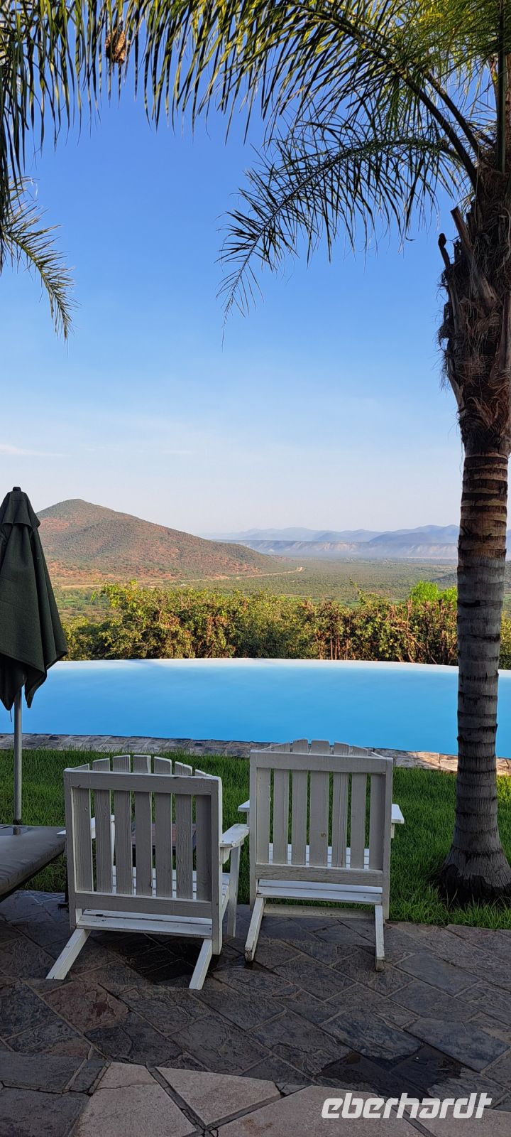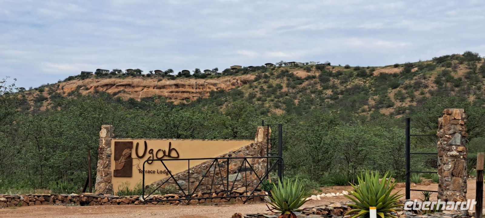 Schließlich erreichen wir am Abend die Ugab Terrace Lodge, spektakulär gelegen auf einer Felsformation mit atemberaubender Aussicht.