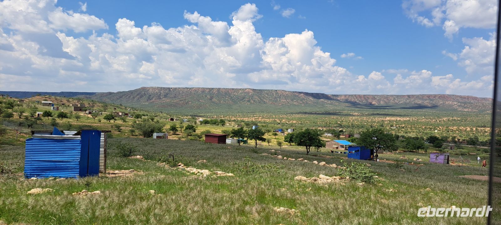 Eigentlich war für heute ein Ausflug zu den Epupa Falls geplant, doch der viele Regen hat die Straßen so stark beschädigt, dass eine Fahrt dorthin unmöglich ist. Somit haben wir mehr Zeit für ein anderes, besonderes Erlebnis: Ein Besuch in einem Himba-Dorf nahe Opuwo, begleitet von einem lokalen Himba-Guide.