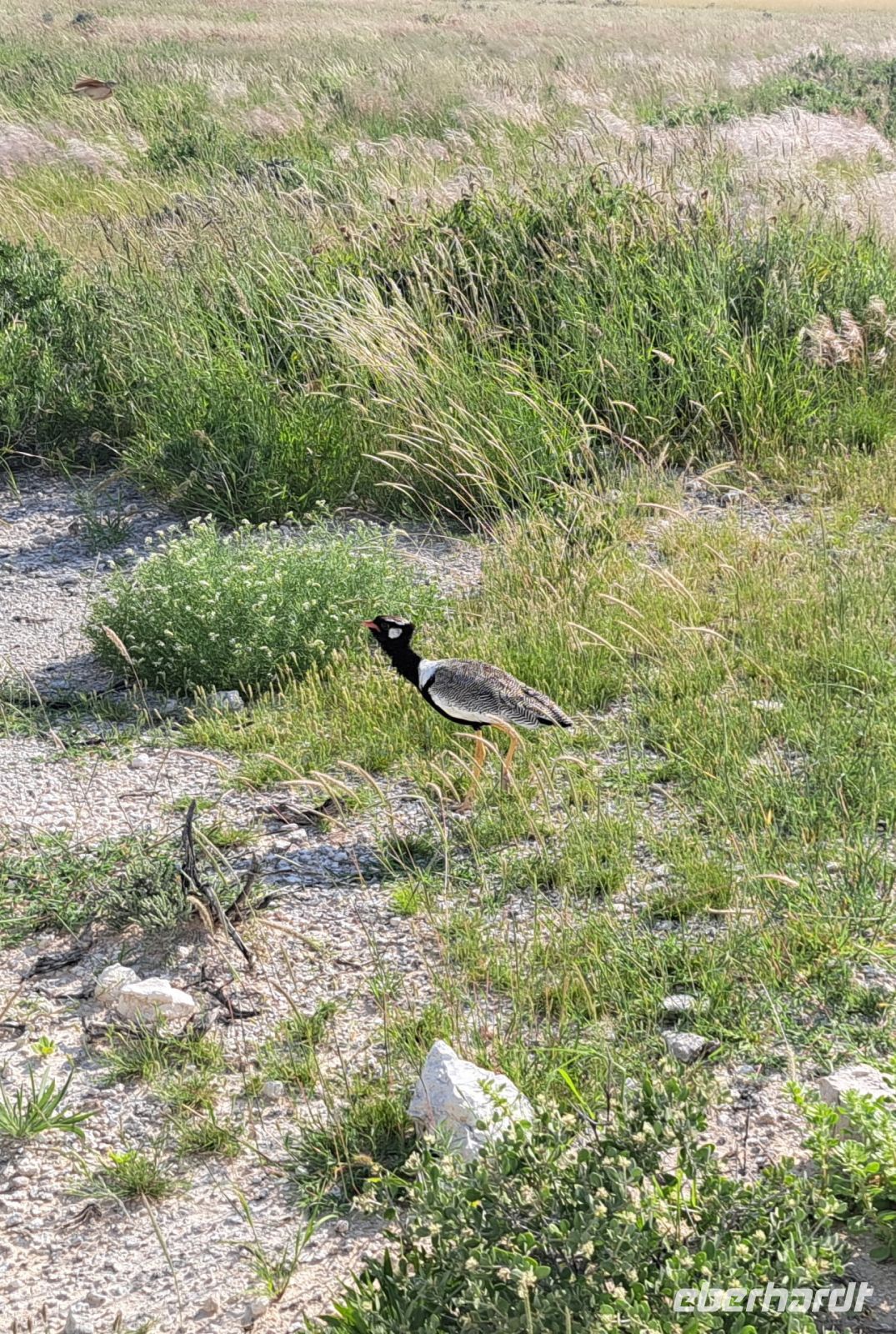 Wir entdecken eine majestätische Riesentrappe, während uns immer wieder die Grackeltrappe mit ihrem typischen Ruf begleitet.