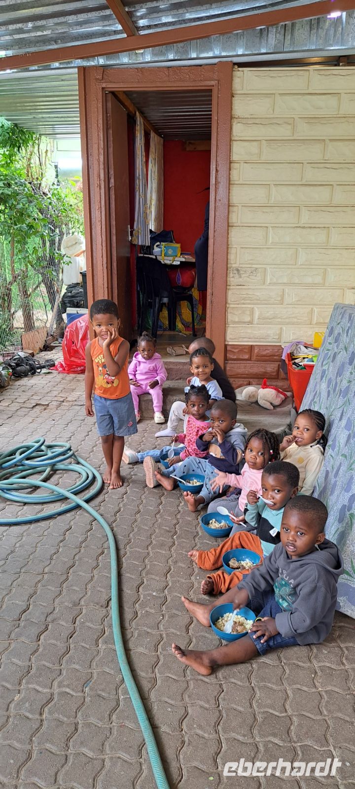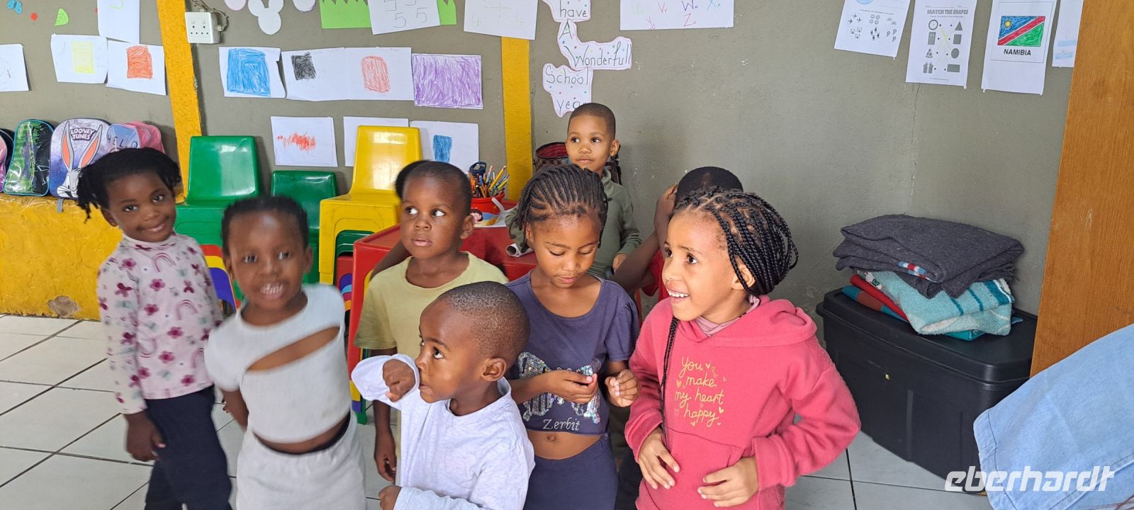 Ein besonders eindrucksvoller Stopp führt uns nach Katutura, das ehemalige Township, das heute ein lebendiger Stadtteil ist. Dort besuchen wir einen Kindergarten, wo uns fröhliche Kinder mit großen Augen und herzlichem Lachen begrüßen. Wir übergeben eine Spende an die Mitarbeiterin des Kindergartens für ihren unermüdlichen Einsatz. Hier werden nicht nur die Kindergartenkinder betreut und versorgt, sondern auch 2x in der Woche bis zu 80 Schulkindern ein warmes Mittagessen serviert.