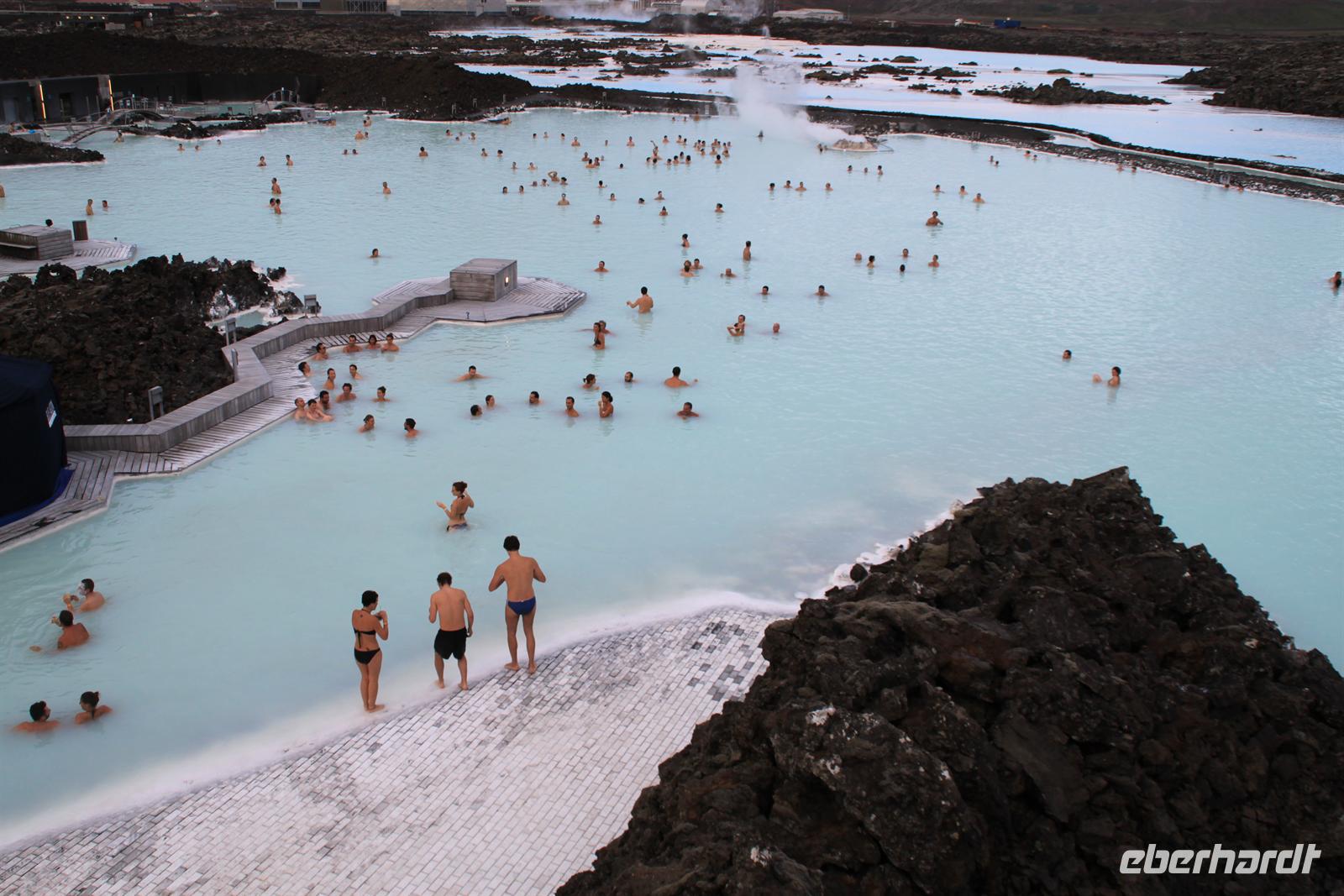 Anschließend führte der Weg zum Flughafen uns zur Blauen Lagune, in der wir die letzten Stunden verbringen wollten, bevor wir Island den Rücken kehren mussten. Mit Schlammmasken eingedeckt, und im heißen Wasser schwebend genossen wir die Umgebung und nach einem Abendessen im Bistro der Lagune, traten wir pünktlich um 22 Uhr den Weg zum Flughafen an.