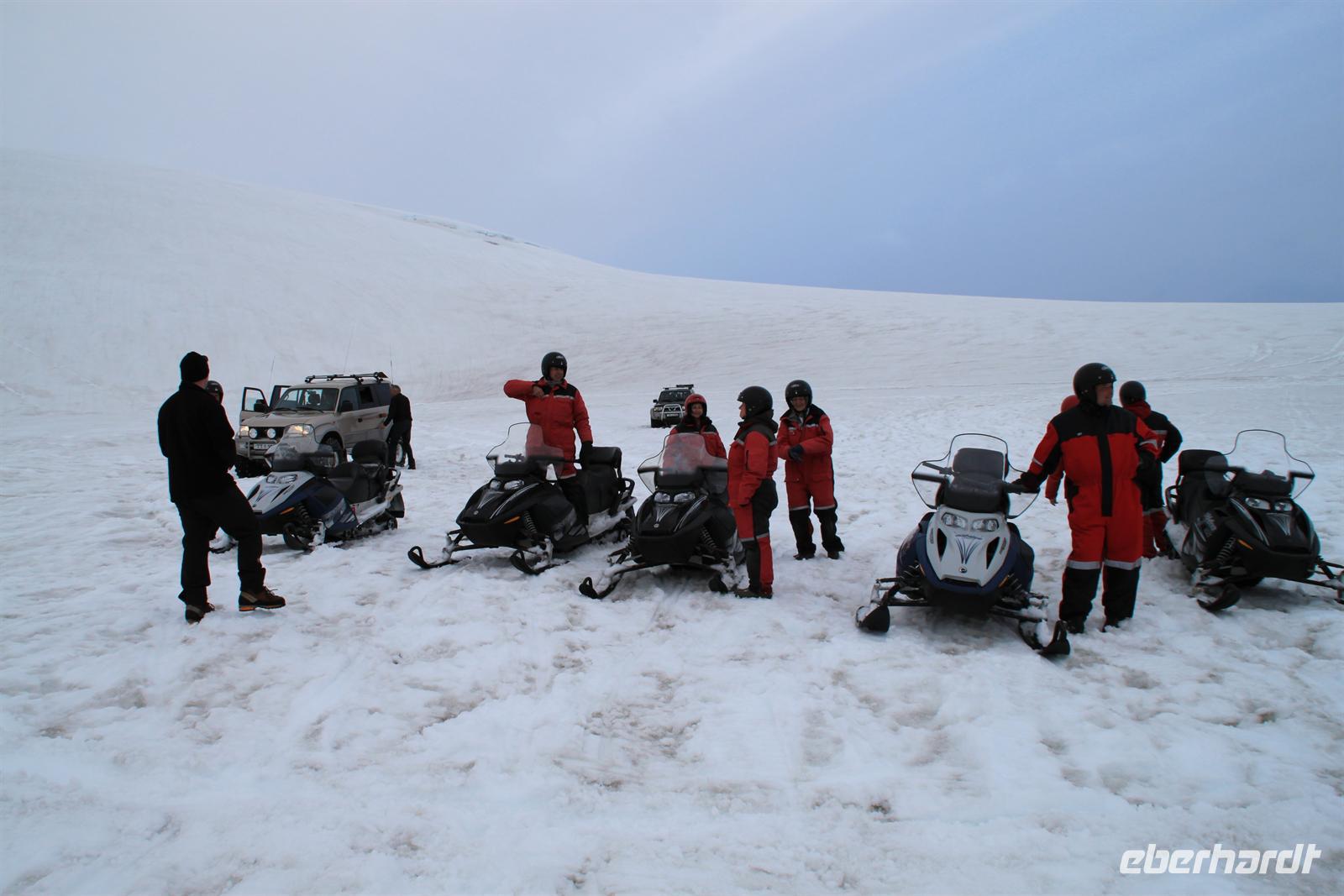 In Höfn, unserem Tagesziel, hatte jeder noch einen Moment für sich, bevor wir uns zum Spaziergang zum Restaurant trafen. Die meisten waren schon mit Wintermontur ausgestattet, denn wir hatten noch ein weiteres Highlight an diesem Abend auf dem Plan. Nach dem Essen wurden wir von zwei Jeeps abgeholt und auf ging es zum Vatnajökull - dem größten Gletscher Europas. Nachdem sich die Jeeps den schweren Weg zur Bergstation geschlängelt hatten, stieg ungefähr die Hälfte von uns auf Schneemobile um, um den Gletscher aus nächster Nähe zu erleben. Der Rest setzte den Weg mit den Jeeps fort. Auf dem Gletscher trafen sich dann alle zu einer Schneeballschlacht und um die Weite des drittgrößten Gletschers der Welt zu bestaunen. Einer der Guides erzählte uns noch einiges Wissenswertes über den Gletscher, ehe wir zurück zur Berghütte fuhren, wo ein echtes Gletscherbier auf uns wartete.