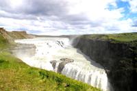 Als sich gegen 10 Uhr auch unser Bus sowie Guide Ulrik eingefunden hatten, konnte unser Ausflug zum Goldenen Kreis Islands beginnen. Wir hielten noch kurz an einer Bank, um Geld abzuheben bzw. zu tauschen (Kurs 1:154), bevor wir durch die faszinierende und zugleich mystische Landschaft Islands zum Wasserfall Gullfoss fuhren. Ulrik führte uns auf der Fahrt ein erstes Mal in die Mythen und Legenden Islands ein.