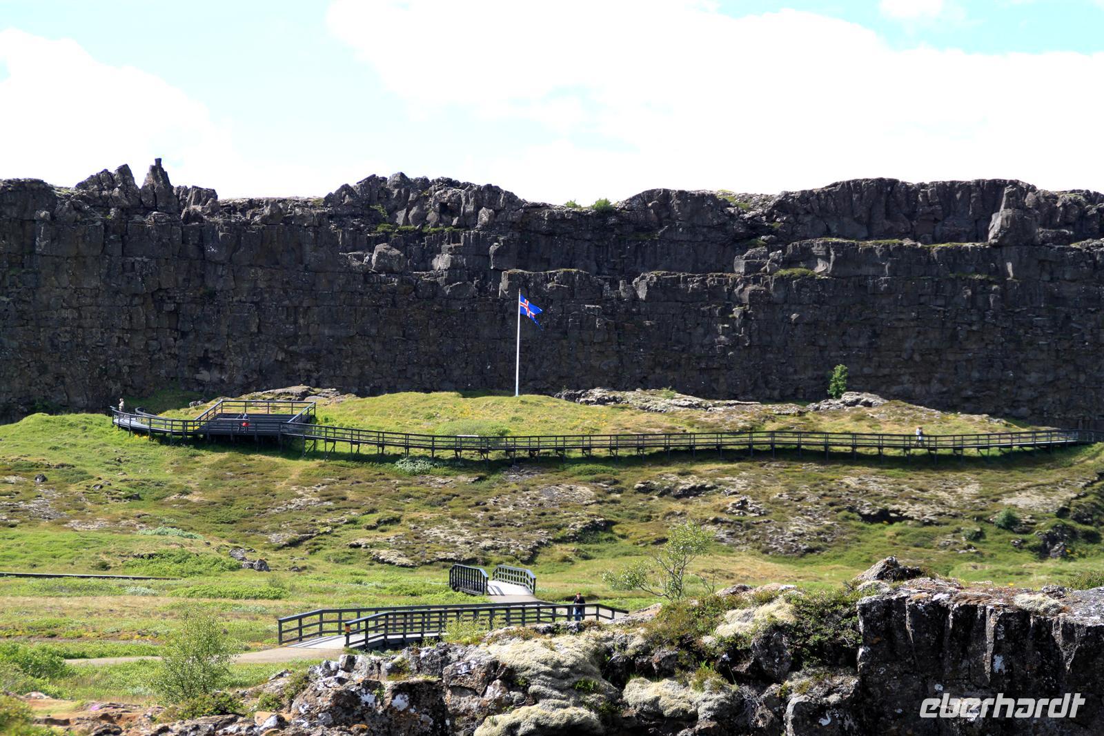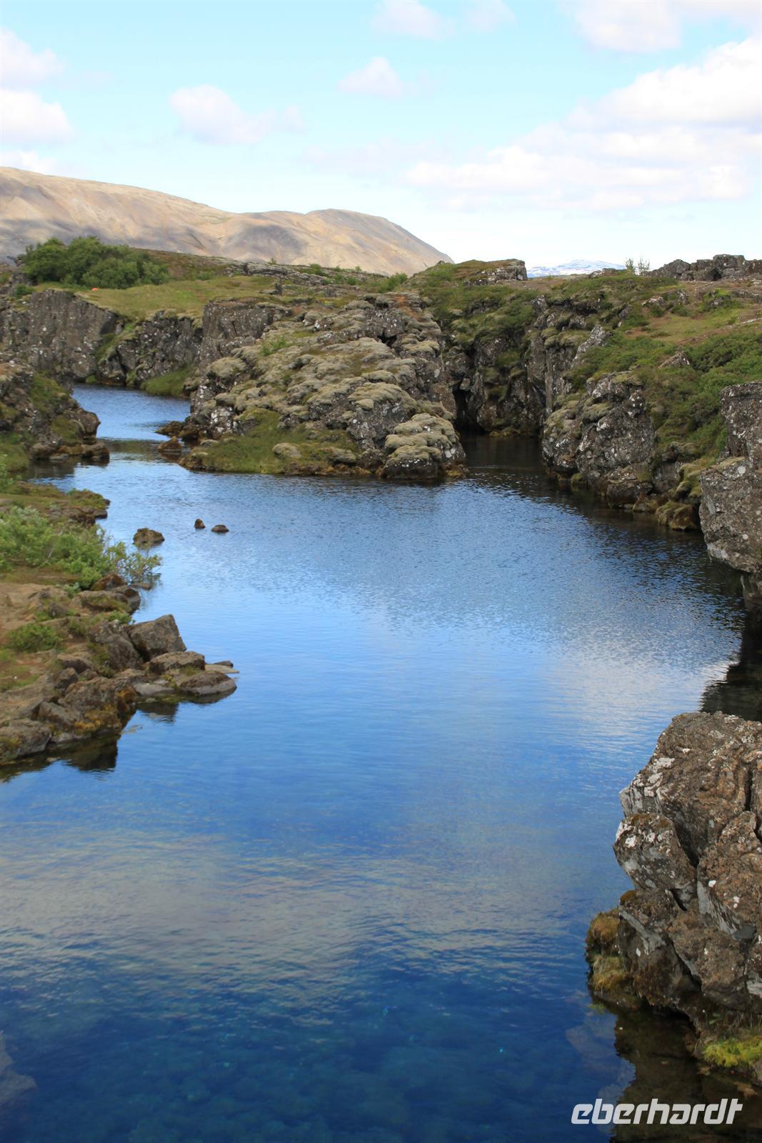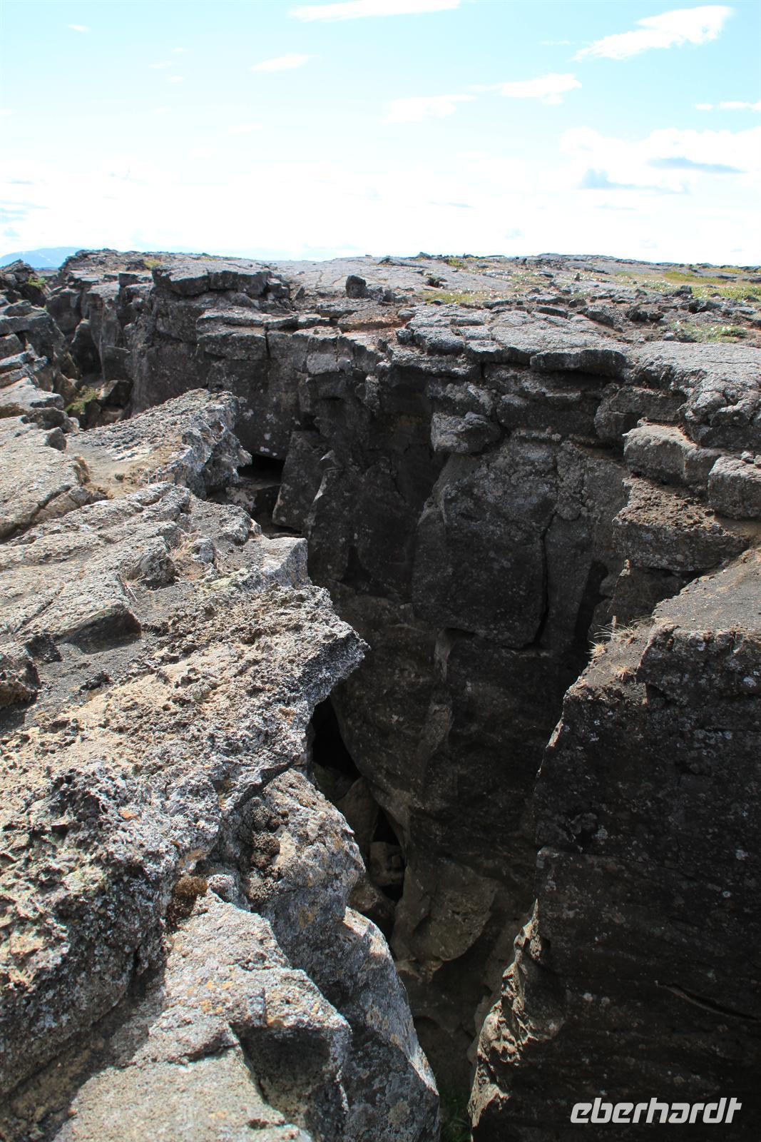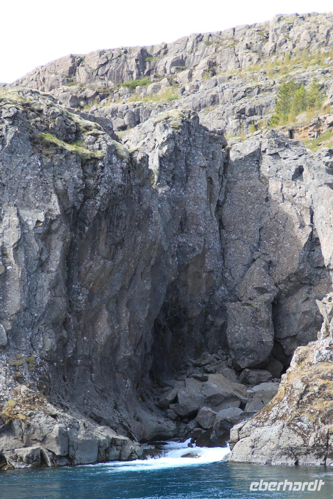 Auf dem Rückweg nach Reykjavik hielten wir an und in der Grabenbruchzone von Eurasischer und Amerikanischer Platte und bewunderten die deutlichen und beeindruckenden Gesteinsformationen, die die geotektonischen Bewegungen hinterlassen haben. Das Ende der einen und der Anfang der neuen Platte sind in dieser Gegend eindeutig zu erkennen.