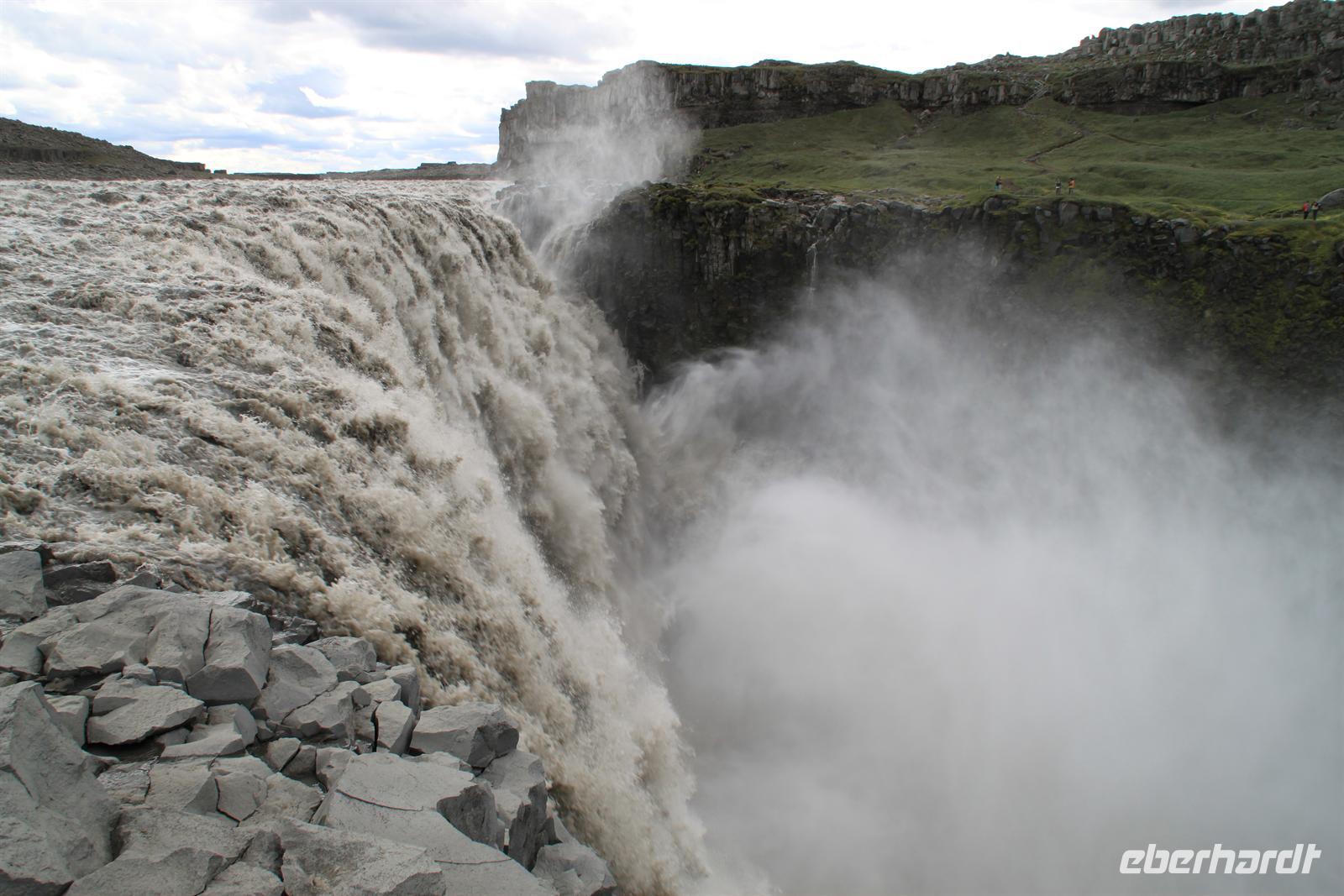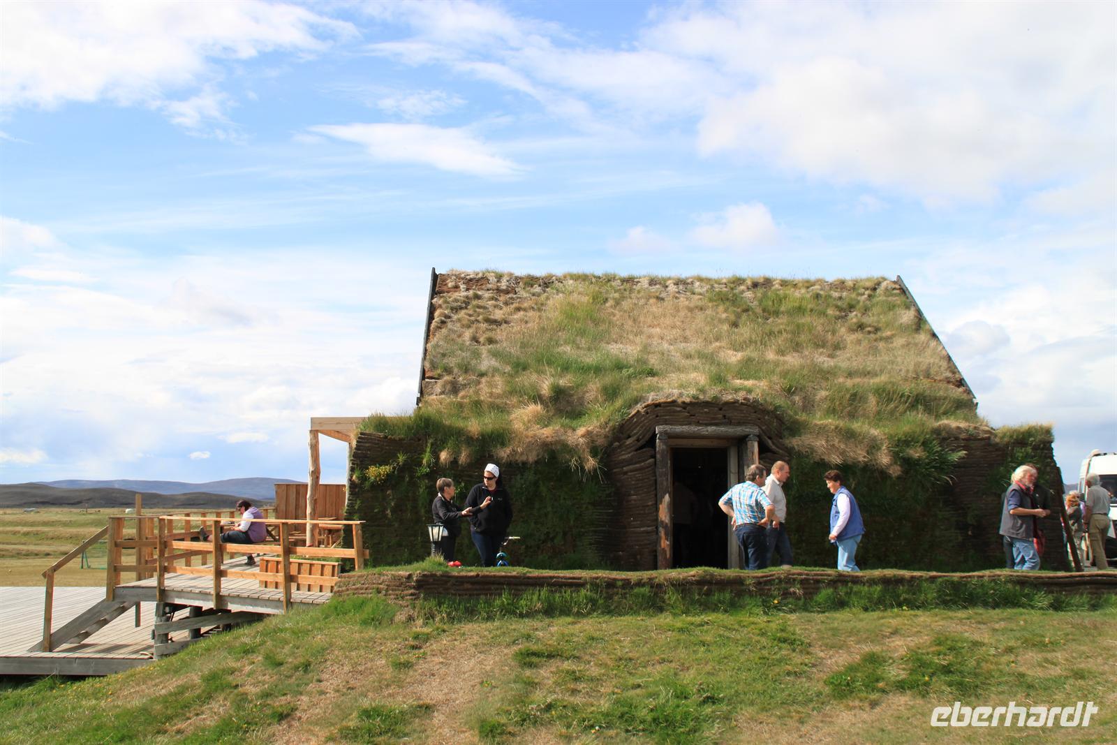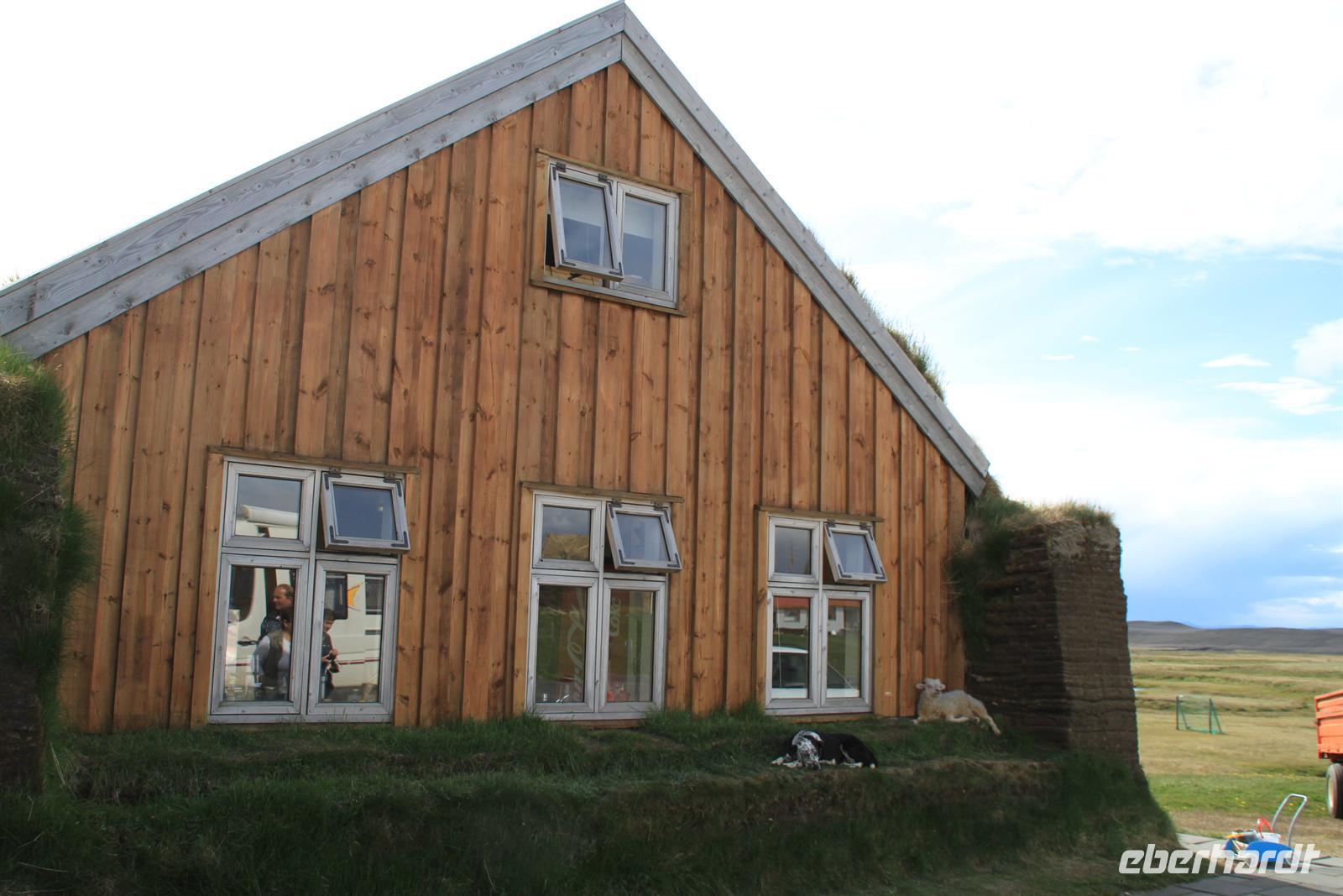 Da wir am heutigen Tag eine größere Strecke vor uns hatten, beschlossen wir noch am vorherigen Abend, bereits um 8.15 Uhr abzufahren, um die Ereignisse des Tages in Ruhe genießen zu können. Noch in Akureyri hielten wir kurz an einem Supermarkt, in dem sich jeder nach Belieben für das mittägliche Picknick eindecken konnte. Anschließend nahmen wir Kurs auf Húsavík - einem kleinen Fischerstädtchen auf der Halbinsel Tjörnes. In Húsavík angekommen, besichtigten wir als erstes das Walmuseum, bevor jeder noch eine individuelle Runde drehen konnte und wir uns nach einer reichlichen Stunde wieder im Hafen am Bus einfanden. Von Húsavík aus fuhren wir nun entlang der Küste der Halbinsel Tjörnes, hielten dabei kurz an den Steilklippen, um die Papageientaucher zu bewundern und machten dann eine kleine Wanderung, um den Canyon bei Asbyrgi zu entdecken und gleichzeitig unser Picknick einzulegen. Frisch gestärkt und nach einem kleinen Halt am Informationszentrum ging unsere Reise weiter zum Dettifoss Wasserfall, der sich gewaltig den Canyon hinab stürzt. Bereits vor dem Dettifoss begann das wüstenartige Gebiet, welches sichtlich von der Eiszeit geprägt wurde. Diese Landschaft begleitete uns bis an die Ostfjorde nach Egilsstadir. Doch um den Weg bis zu unserem Übernachtungsort nicht zu lang werden zu lassen, hielten wir noch an einem einzigartigen Gebirgskaffee, welches in eine Ortschaft von Torfhäusern gebettet ist.