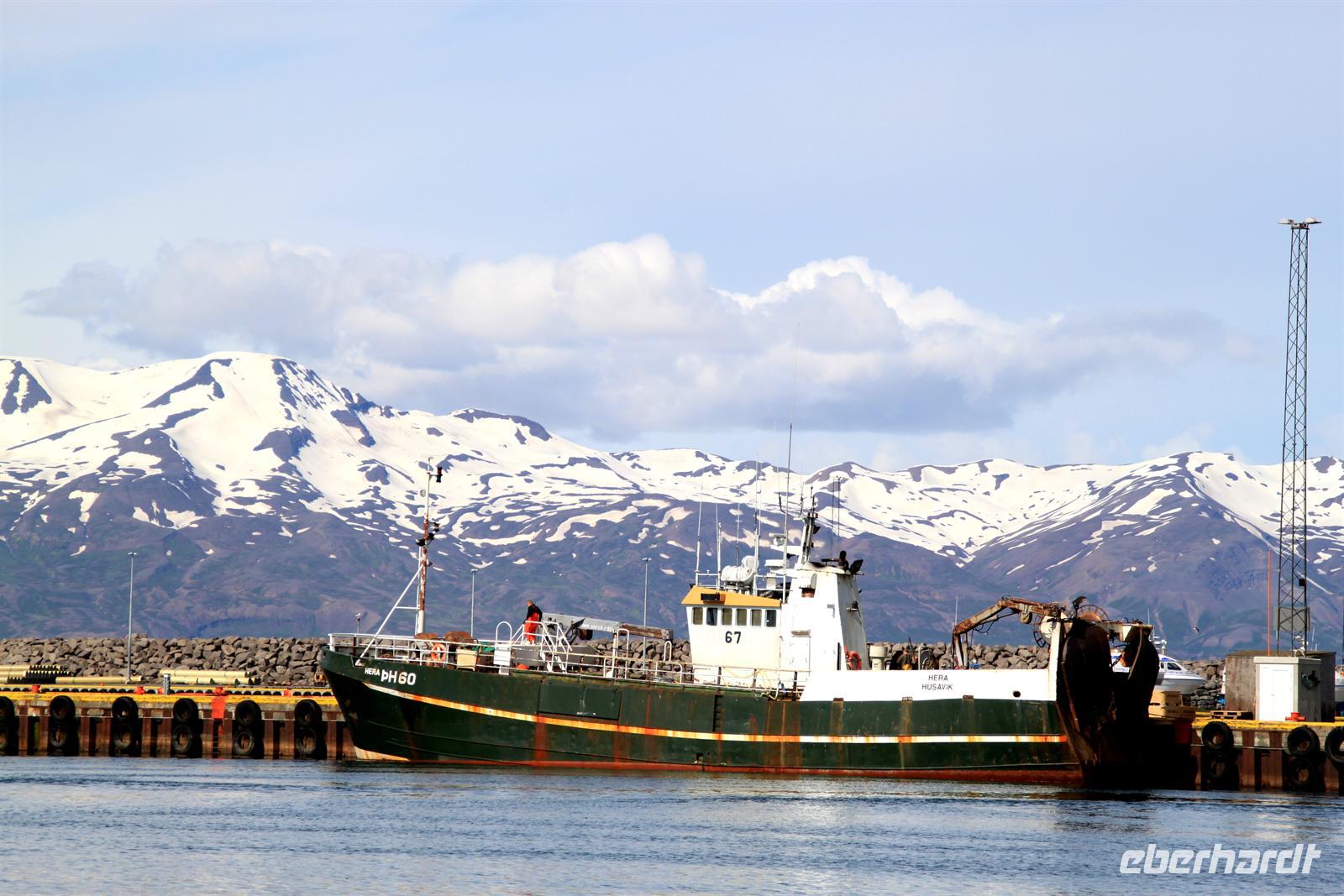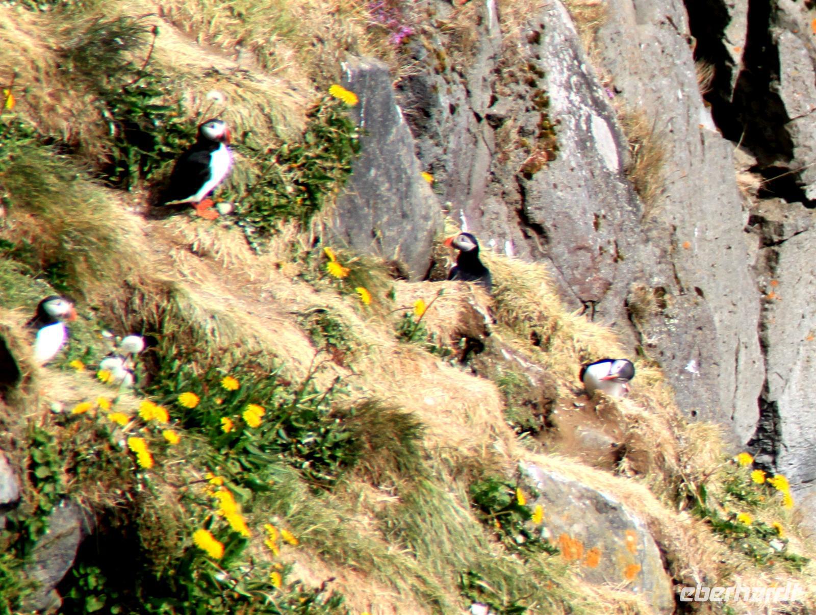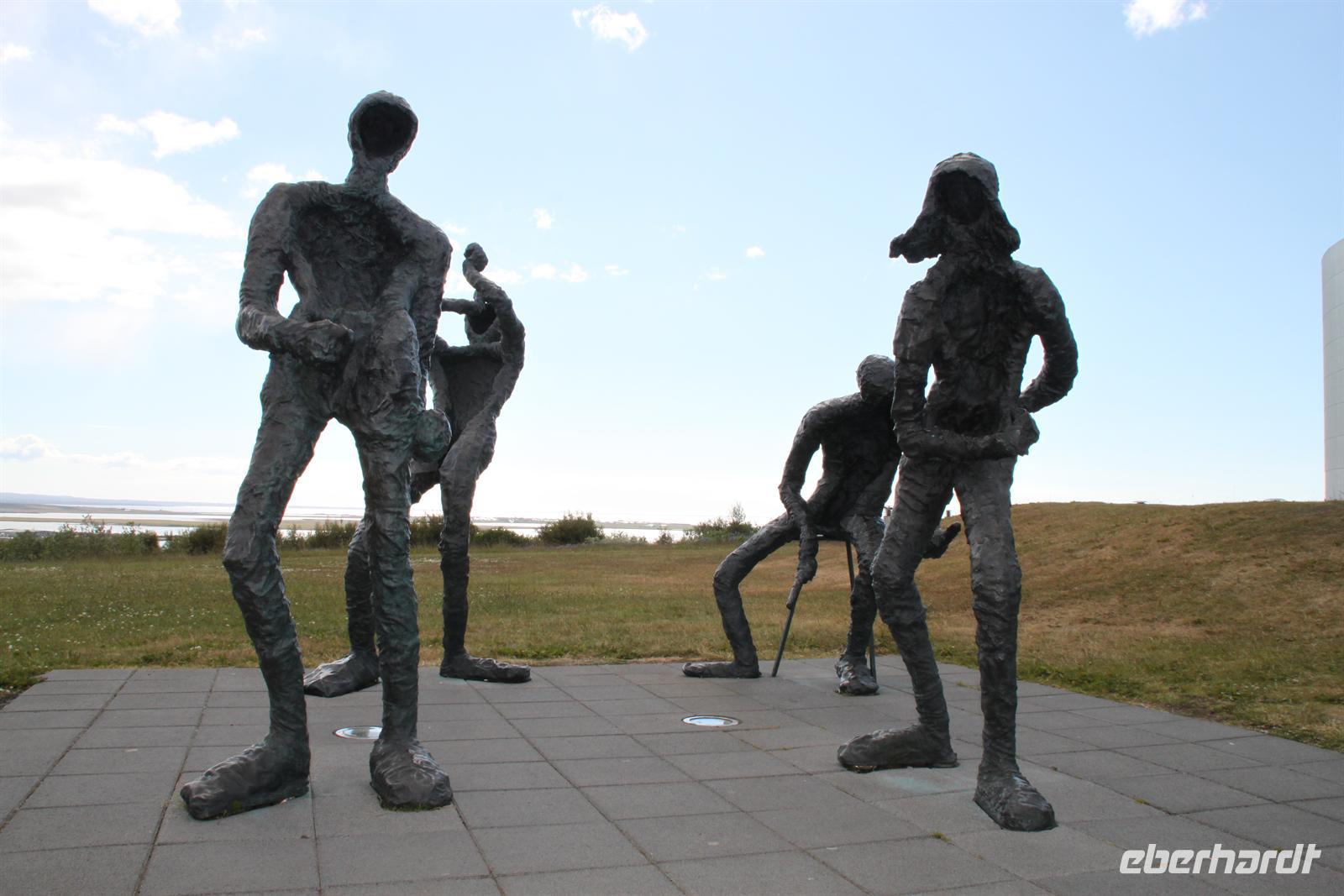 Da wir am heutigen Tag eine größere Strecke vor uns hatten, beschlossen wir noch am vorherigen Abend, bereits um 8.15 Uhr abzufahren, um die Ereignisse des Tages in Ruhe genießen zu können. Noch in Akureyri hielten wir kurz an einem Supermarkt, in dem sich jeder nach Belieben für das mittägliche Picknick eindecken konnte. Anschließend nahmen wir Kurs auf Húsavík - einem kleinen Fischerstädtchen auf der Halbinsel Tjörnes. In Húsavík angekommen, besichtigten wir als erstes das Walmuseum, bevor jeder noch eine individuelle Runde drehen konnte und wir uns nach einer reichlichen Stunde wieder im Hafen am Bus einfanden. Von Húsavík aus fuhren wir nun entlang der Küste der Halbinsel Tjörnes, hielten dabei kurz an den Steilklippen, um die Papageientaucher zu bewundern und machten dann eine kleine Wanderung, um den Canyon bei Asbyrgi zu entdecken und gleichzeitig unser Picknick einzulegen. Frisch gestärkt und nach einem kleinen Halt am Informationszentrum ging unsere Reise weiter zum Dettifoss Wasserfall, der sich gewaltig den Canyon hinab stürzt. Bereits vor dem Dettifoss begann das wüstenartige Gebiet, welches sichtlich von der Eiszeit geprägt wurde. Diese Landschaft begleitete uns bis an die Ostfjorde nach Egilsstadir. Doch um den Weg bis zu unserem Übernachtungsort nicht zu lang werden zu lassen, hielten wir noch an einem einzigartigen Gebirgskaffee, welches in eine Ortschaft von Torfhäusern gebettet ist.